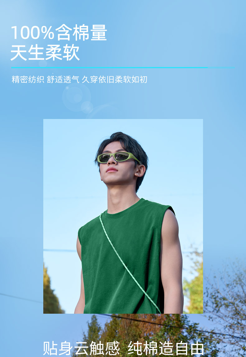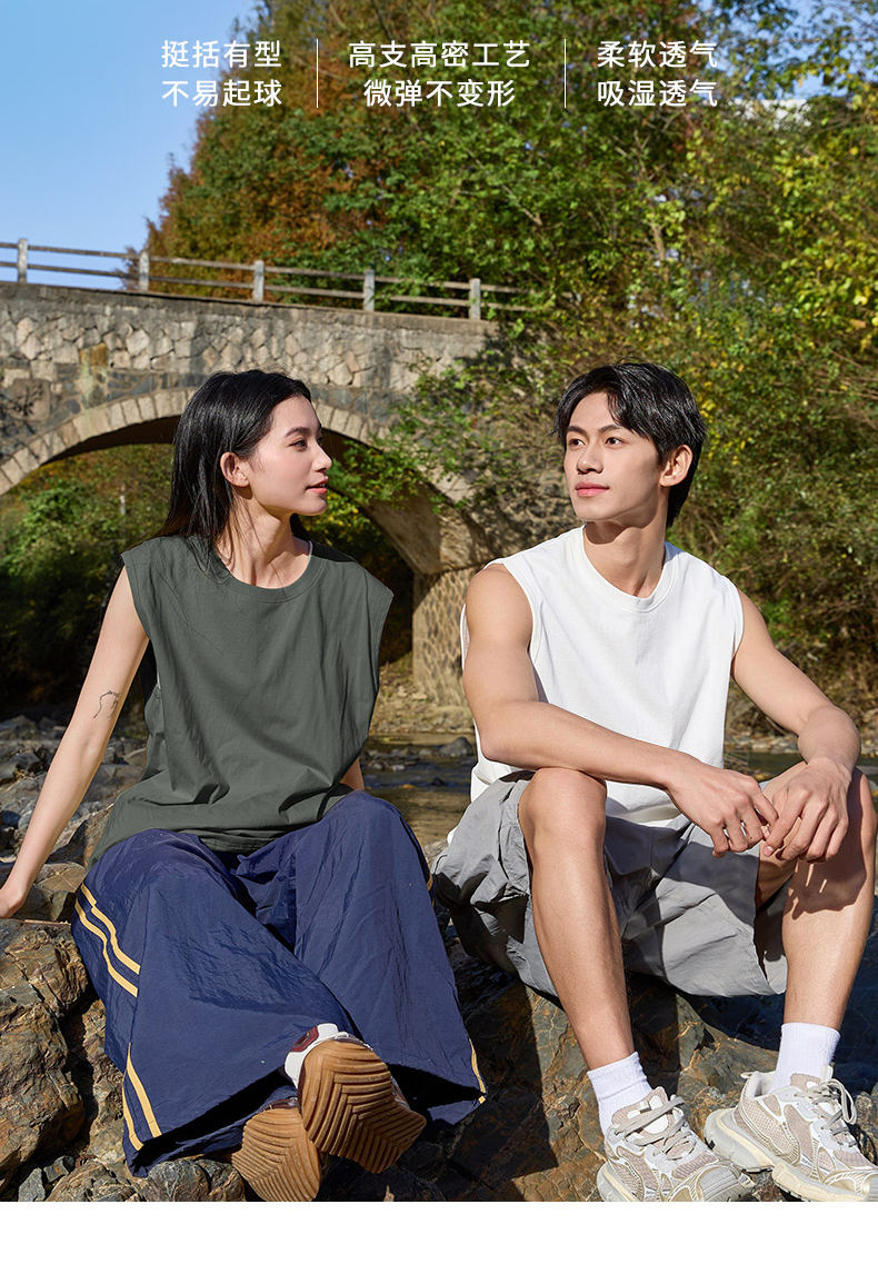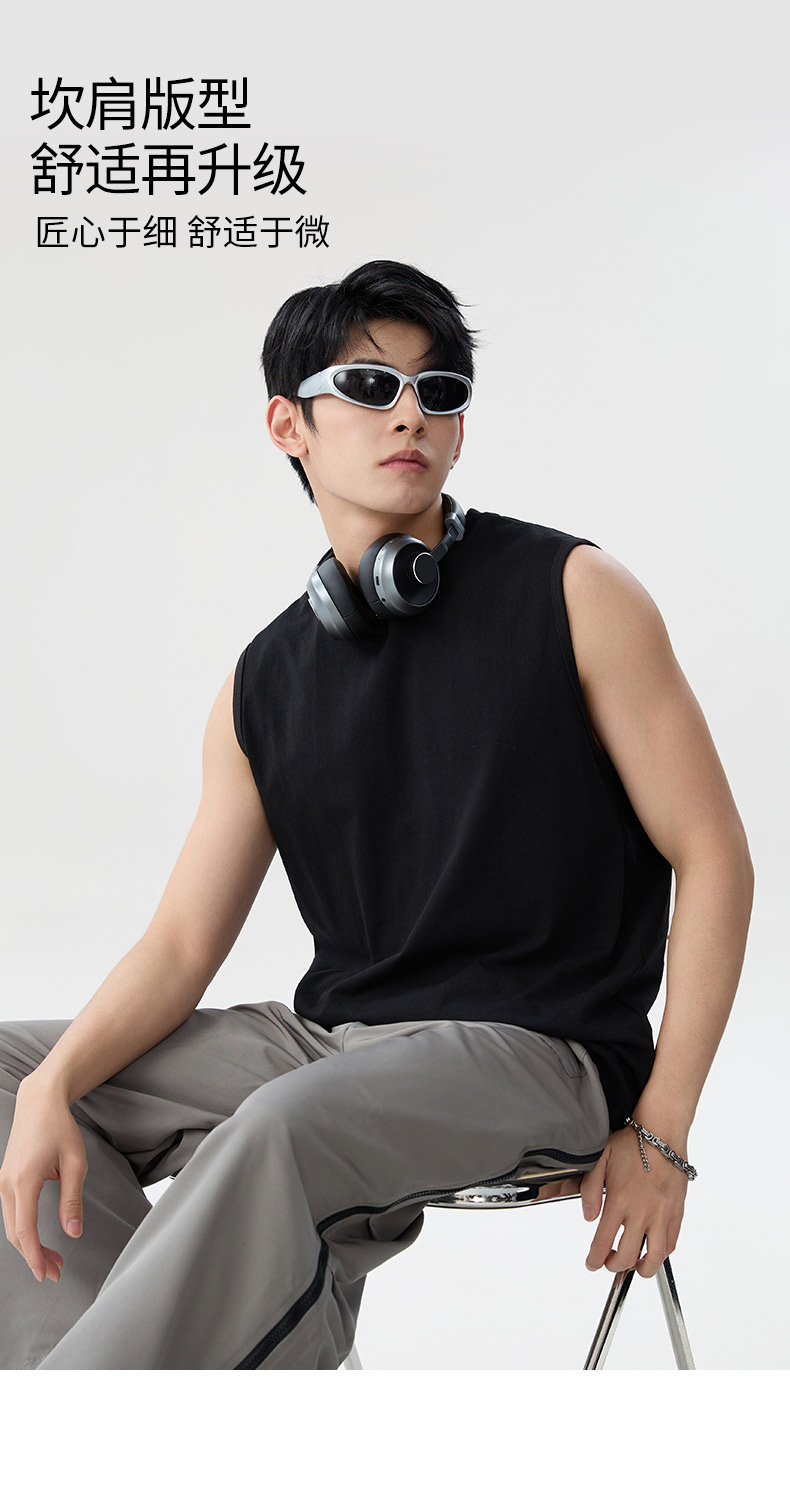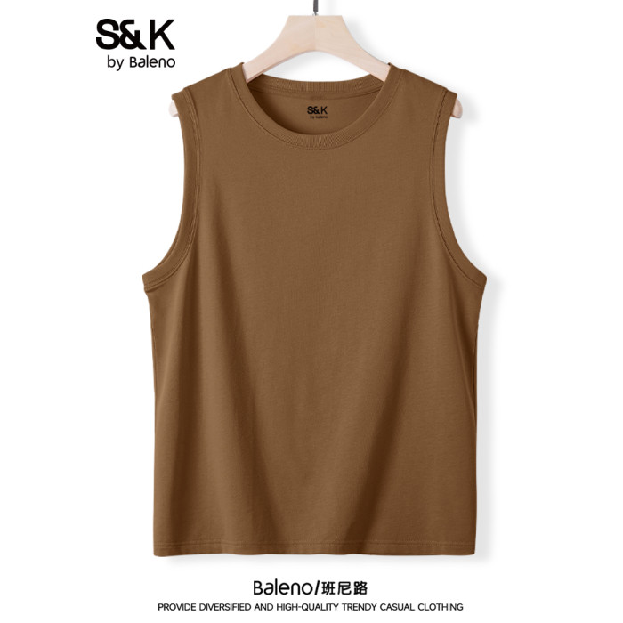 班尼路S&K系列背心男士夏季純棉咖色無袖t恤美式復古潮牌運動坎肩
