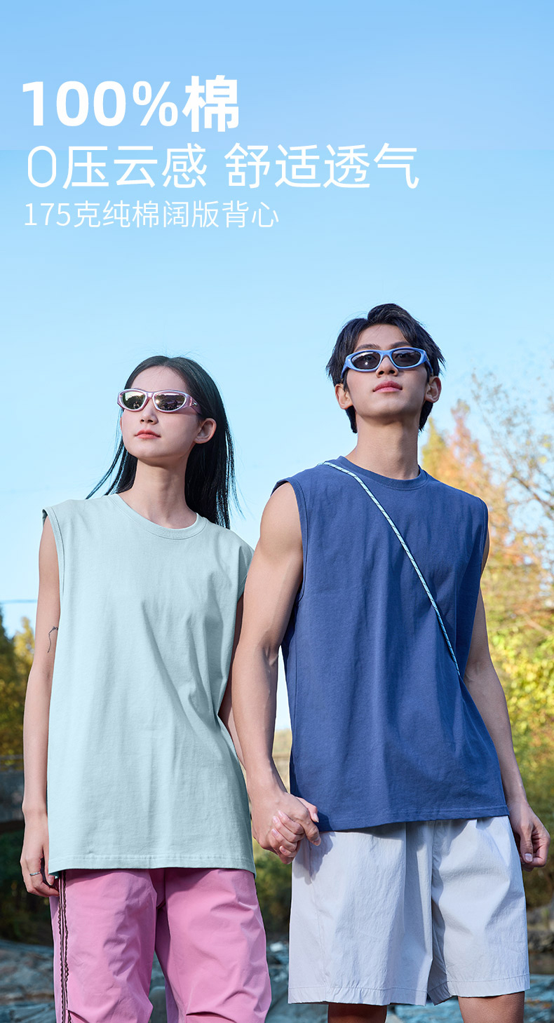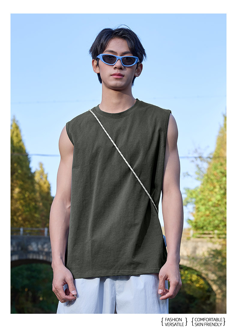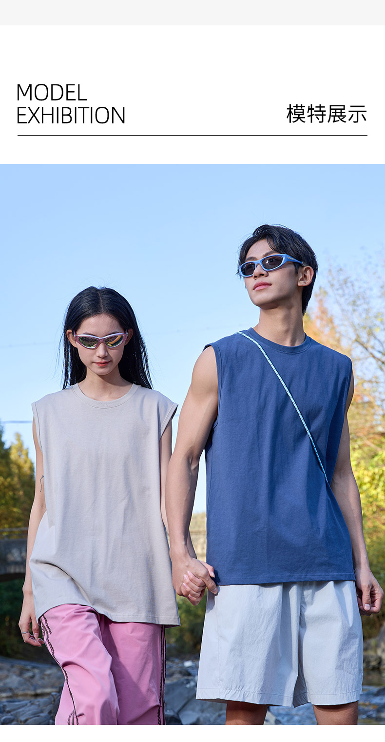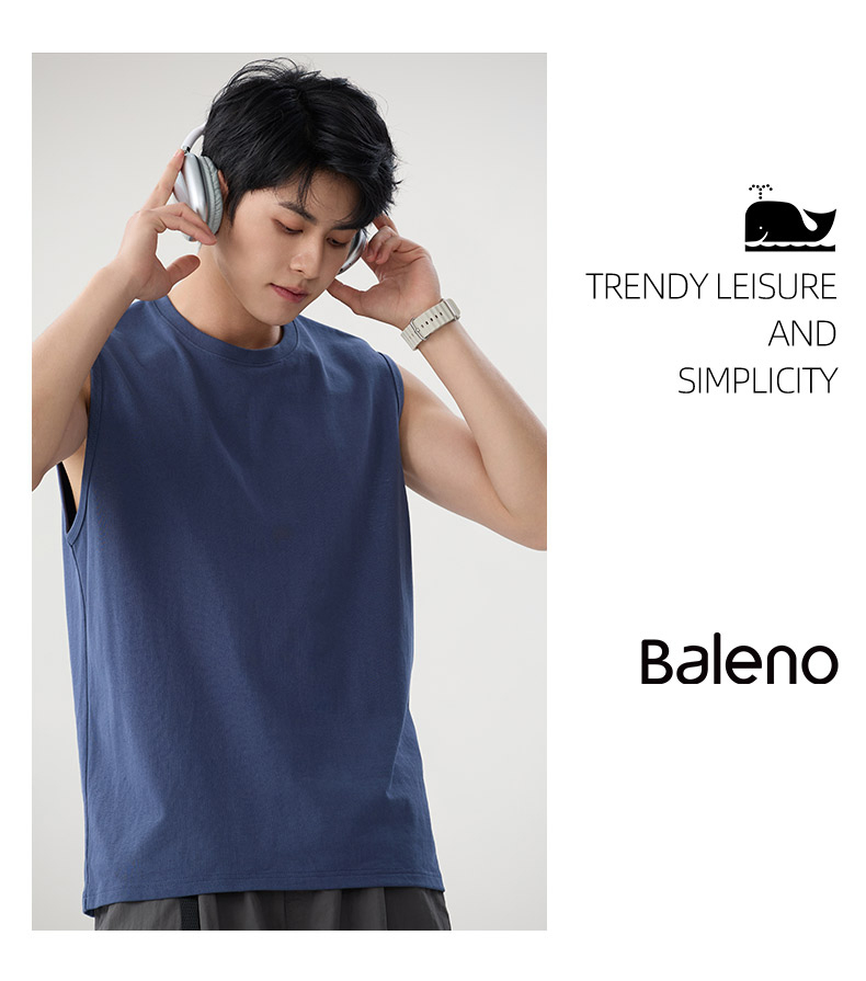 班尼路S&K系列背心男士夏季純棉咖色無袖t恤美式復古潮牌運動坎肩