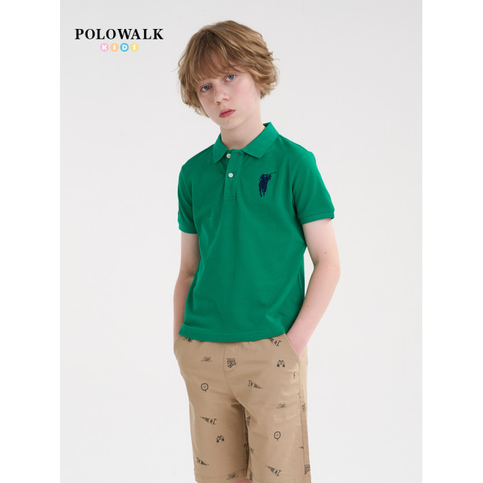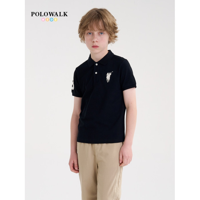 POLOWALK童裝新品夏季短袖翻領polo衫T恤男童上衣親膚透氣休閒