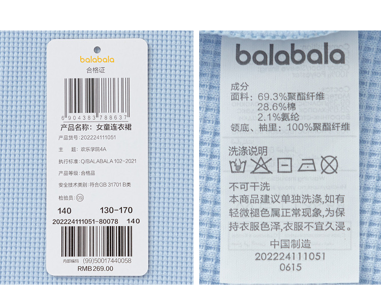聚酯纖維69.3% 棉28.6% 聚氨酯彈性纖維(氨綸)2.1%