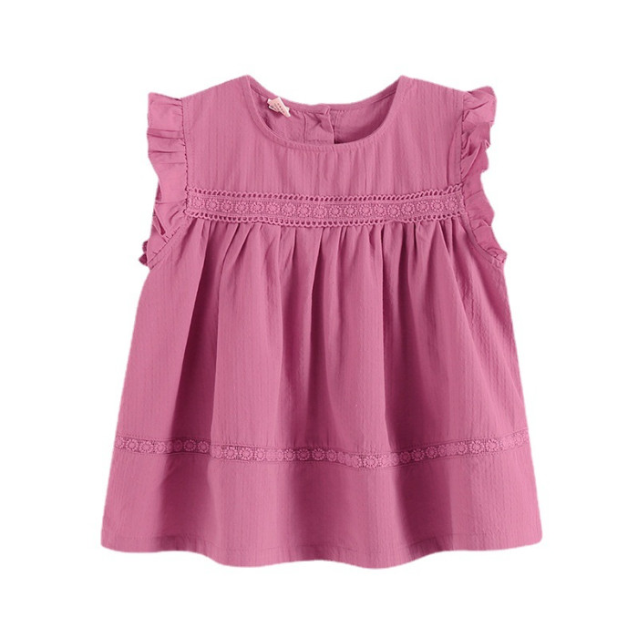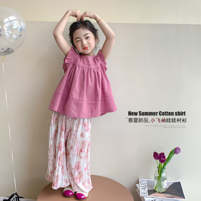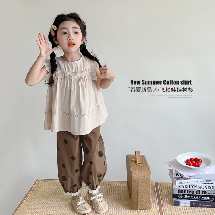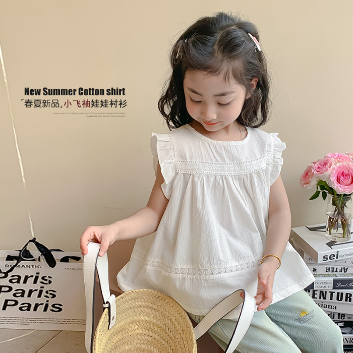 2025新款女童夏裝襯衫兒童小飛袖上衣娃娃衫夏季洋氣女孩無袖童裝