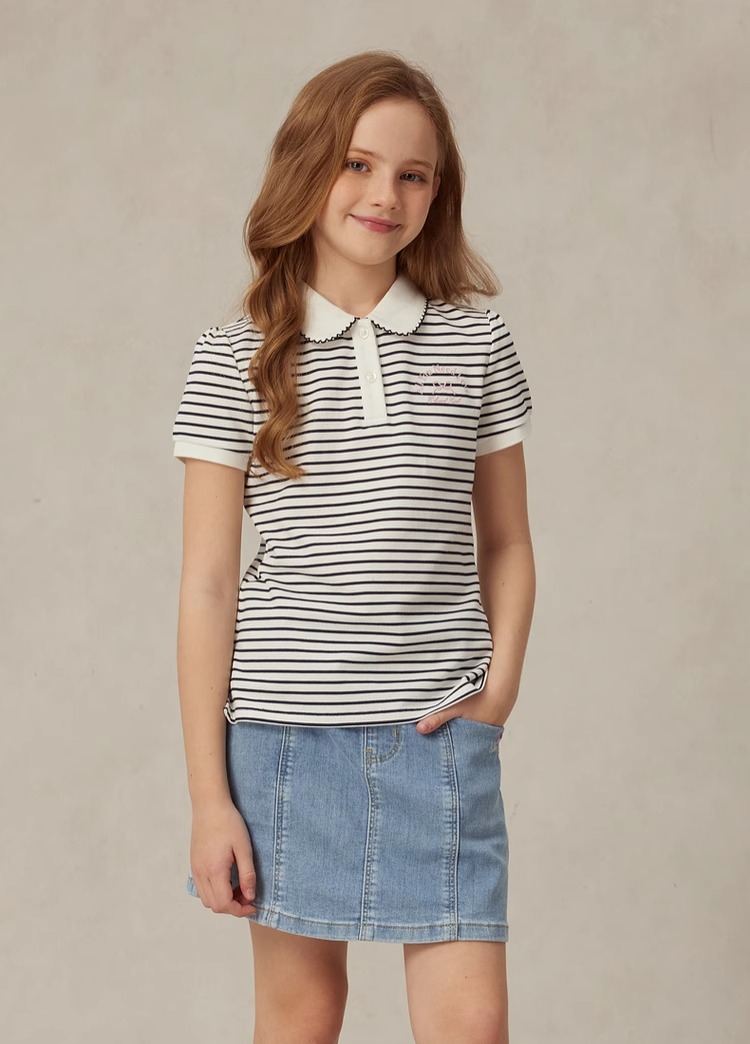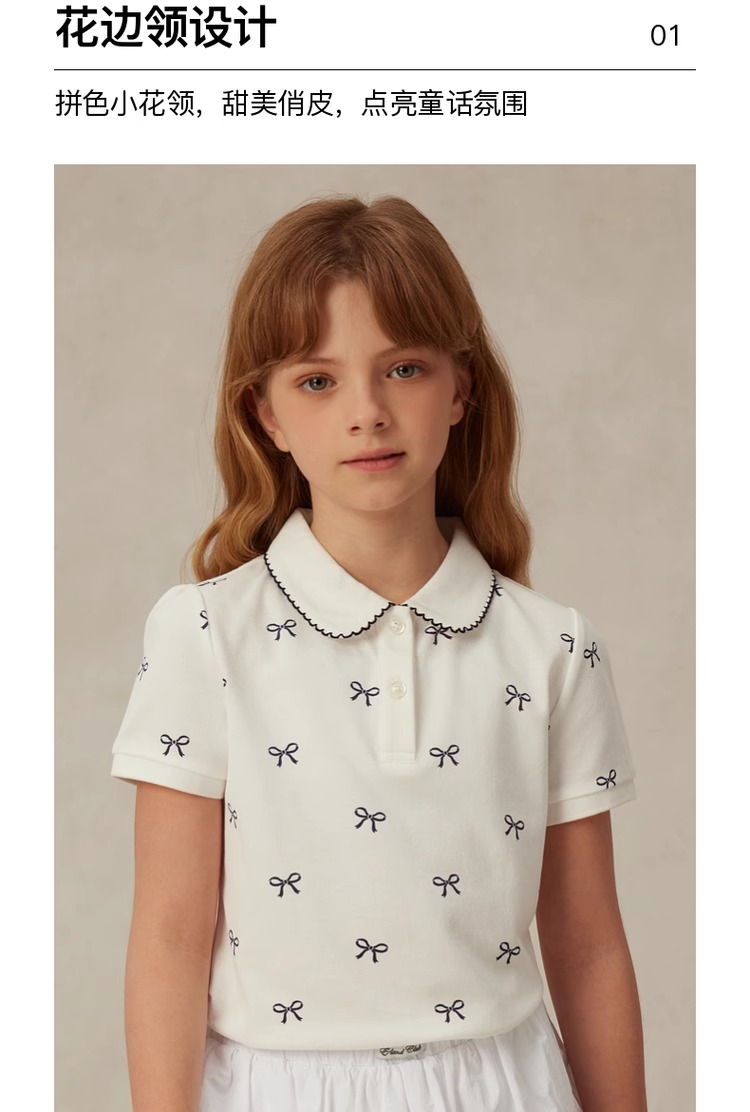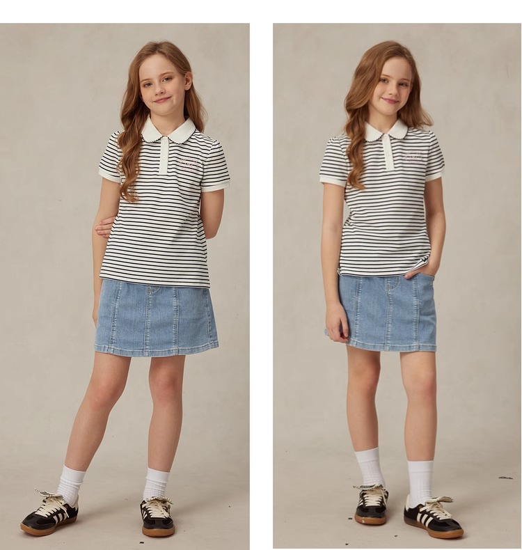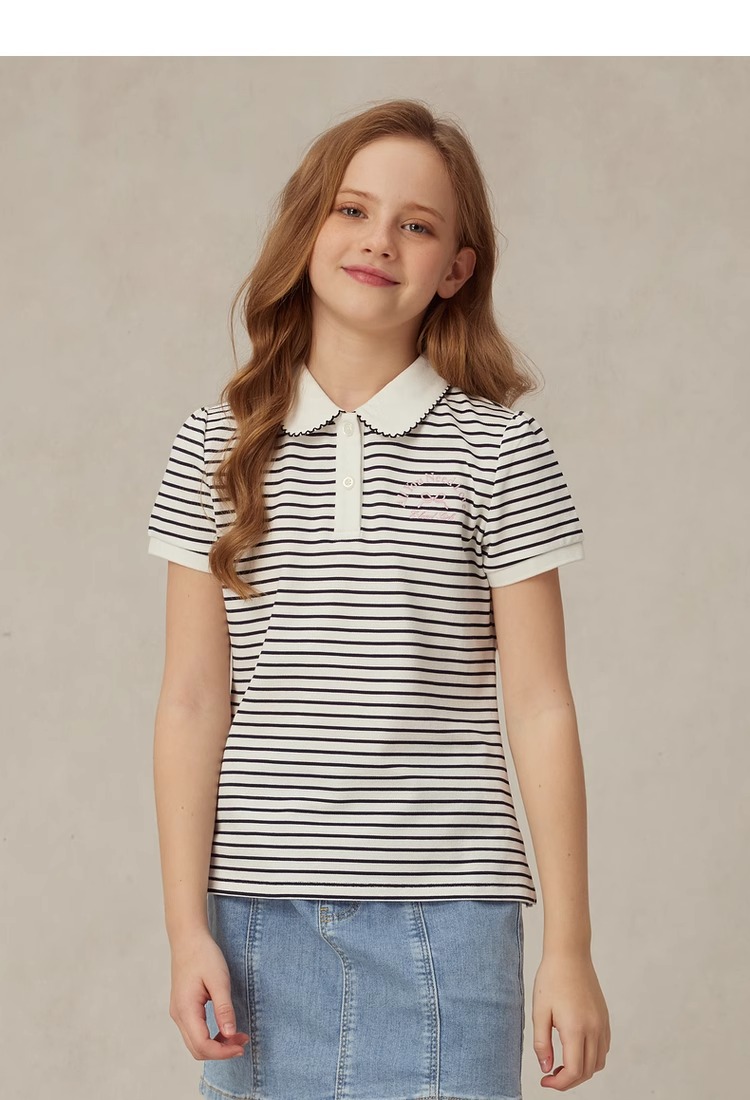 【5A抗菌】eland kids衣戀童裝女童POLO衫25年夏季新品學院風上衣