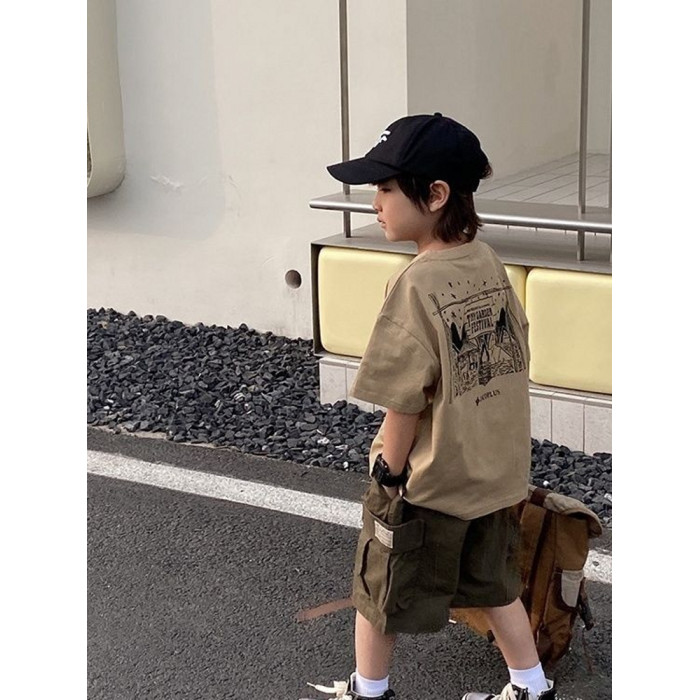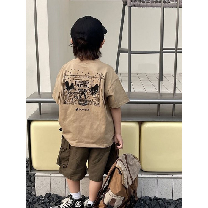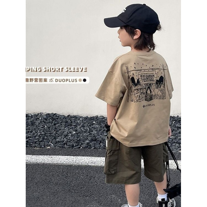 安哼安哼童裝男童純棉短袖T恤2023夏季新款日系韓版露營印花帥氣