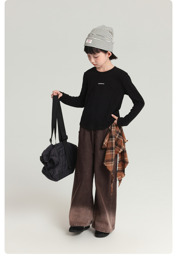 布丁哈魯童裝秋裝女童簡約上衣2025春秋新款兒童純色修身長袖T恤