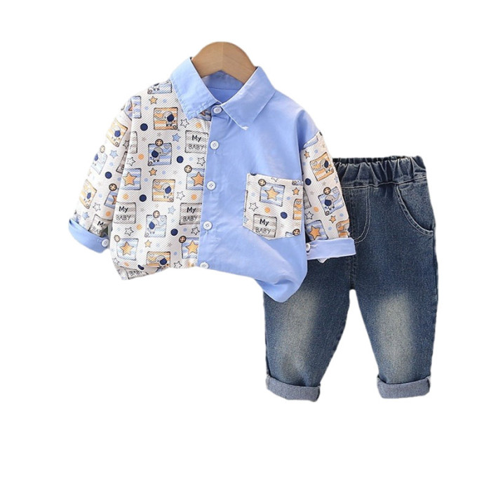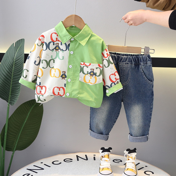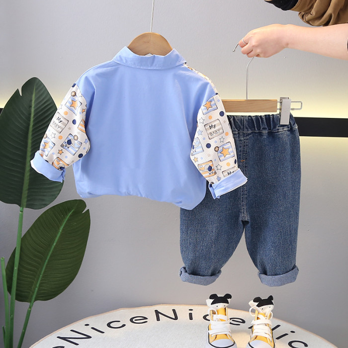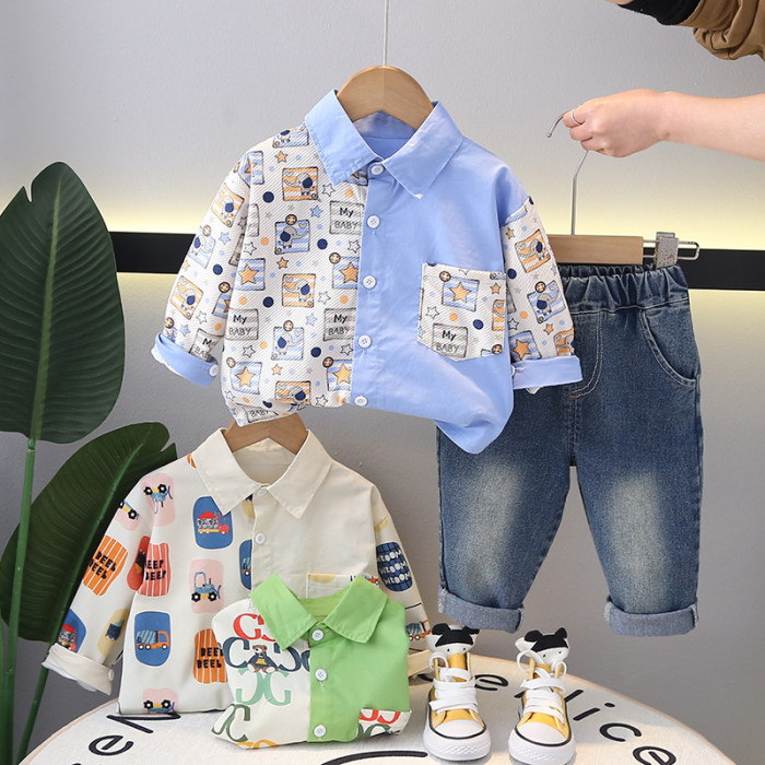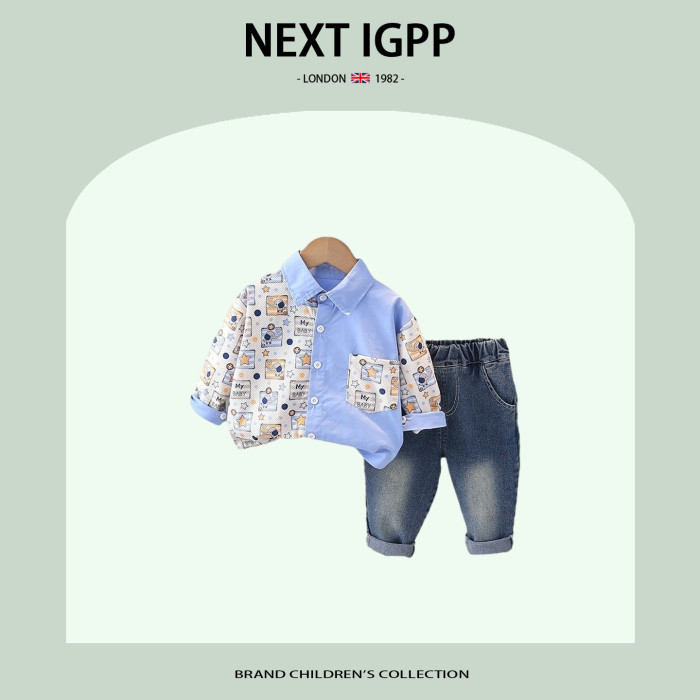 英國NEXT IGPP男童春秋季休閒拼色長袖襯衫動物襯衣男童休閒套裝