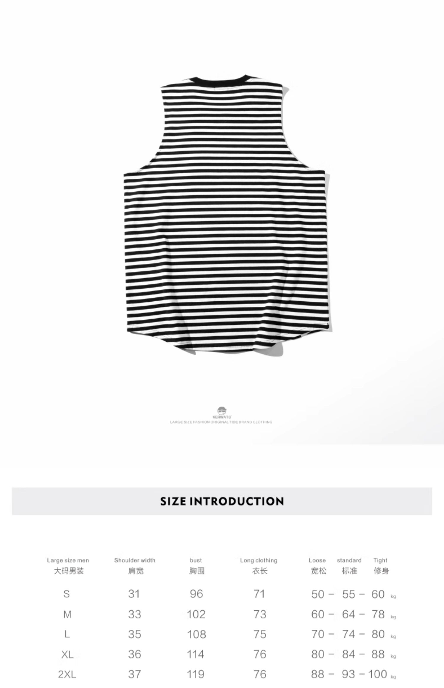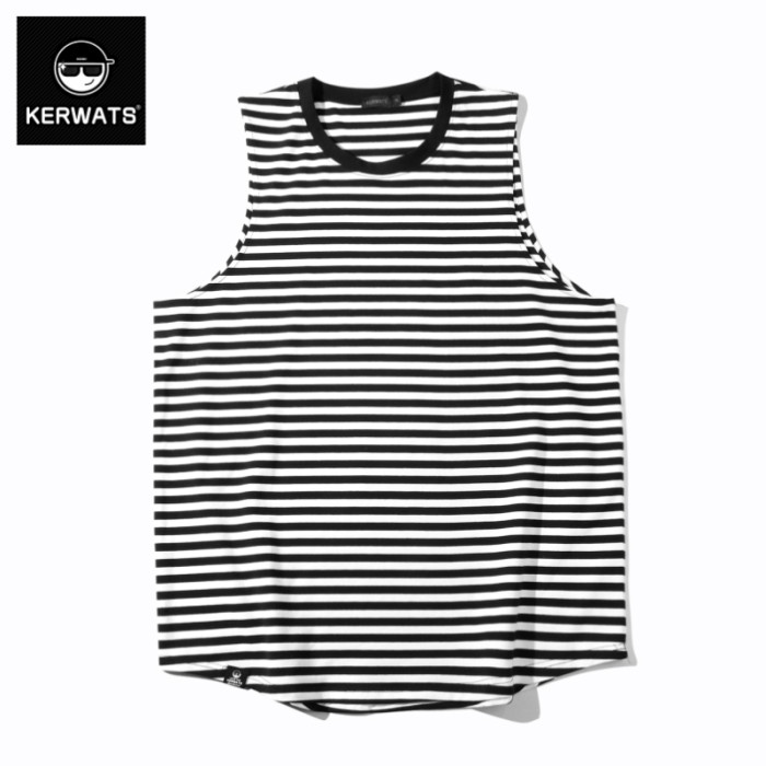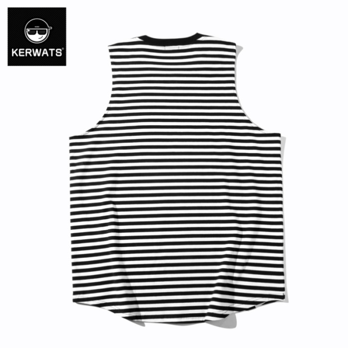 KERWATS大碼男裝加肥加大條紋針織背心青年新疆棉寬松休閒無袖t恤