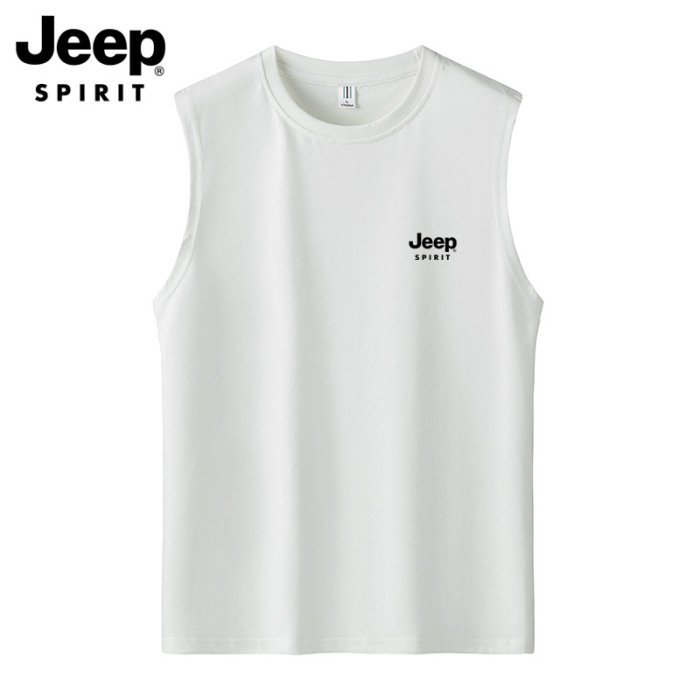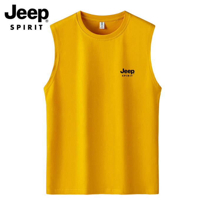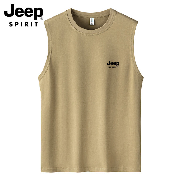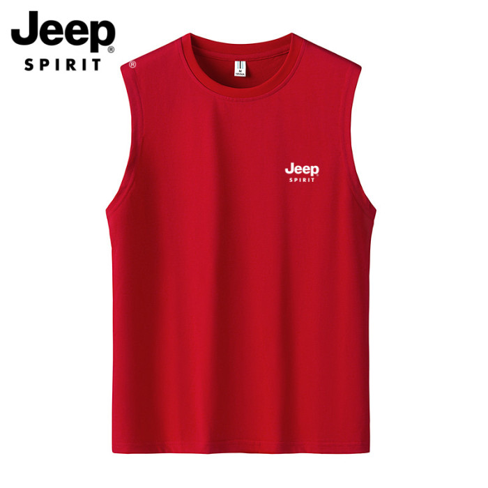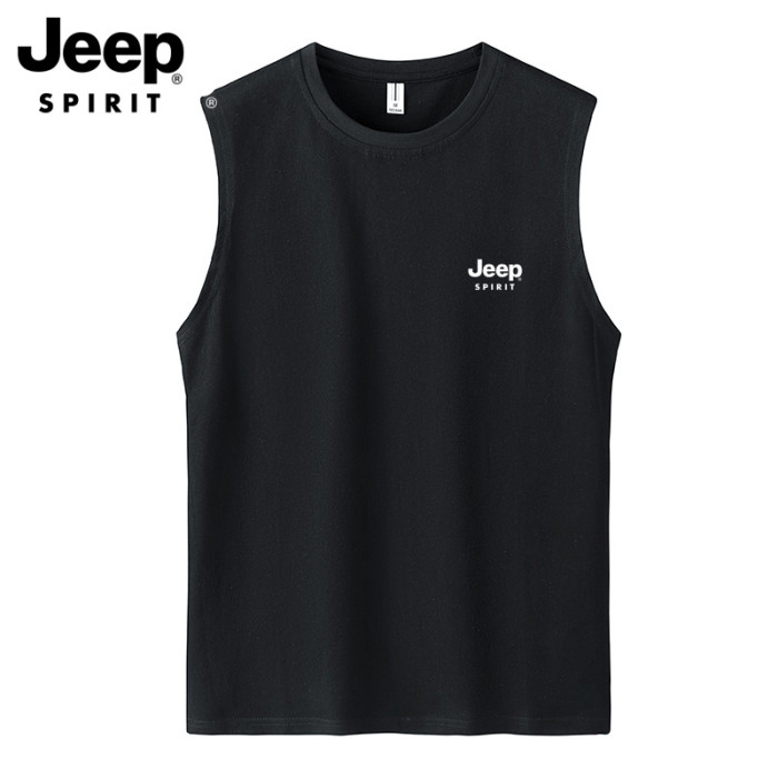 JEEP吉普純棉背心男夏季休閒汗衫潮流圓領運動健身無袖坎肩T恤