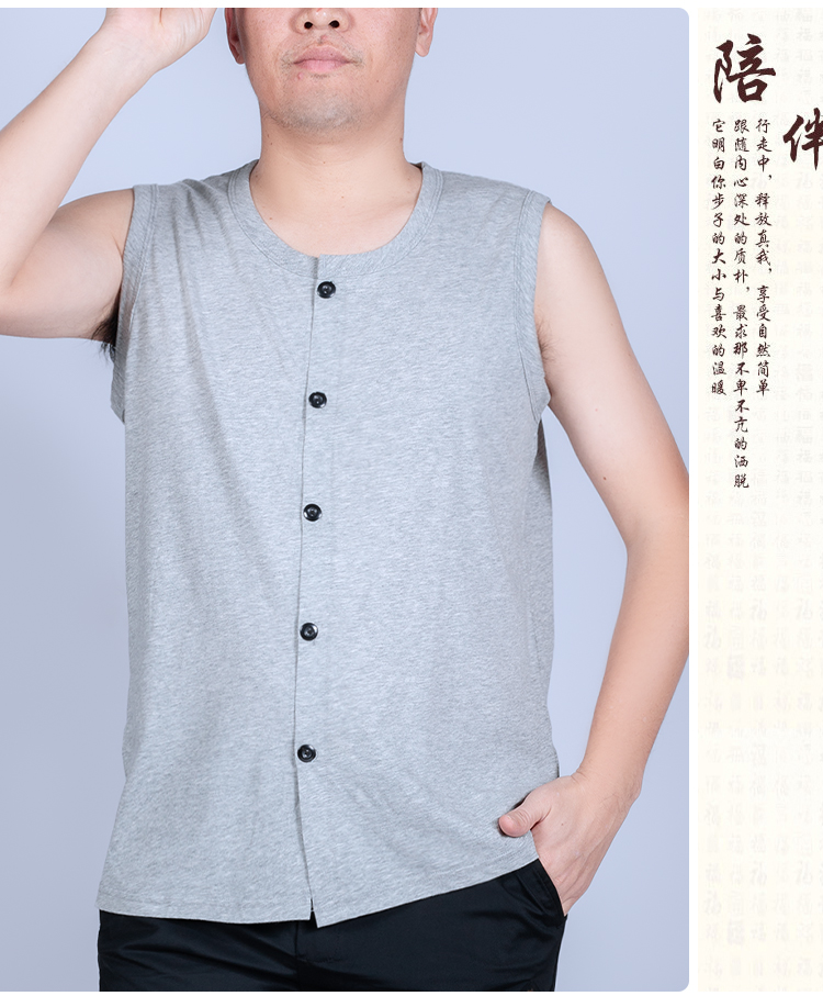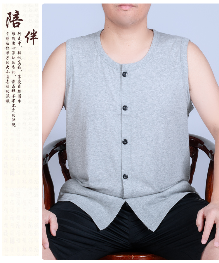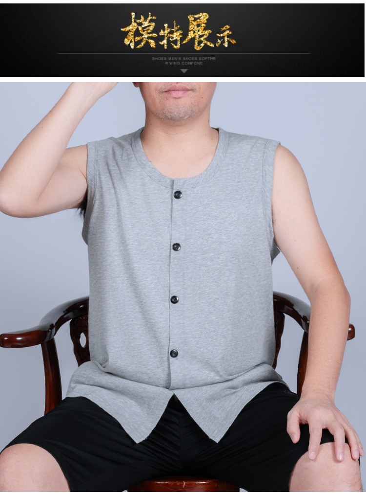 夏季中老年人男背心純棉開衫老人睡衣爸爸無袖T恤坎肩對襟老頭衫