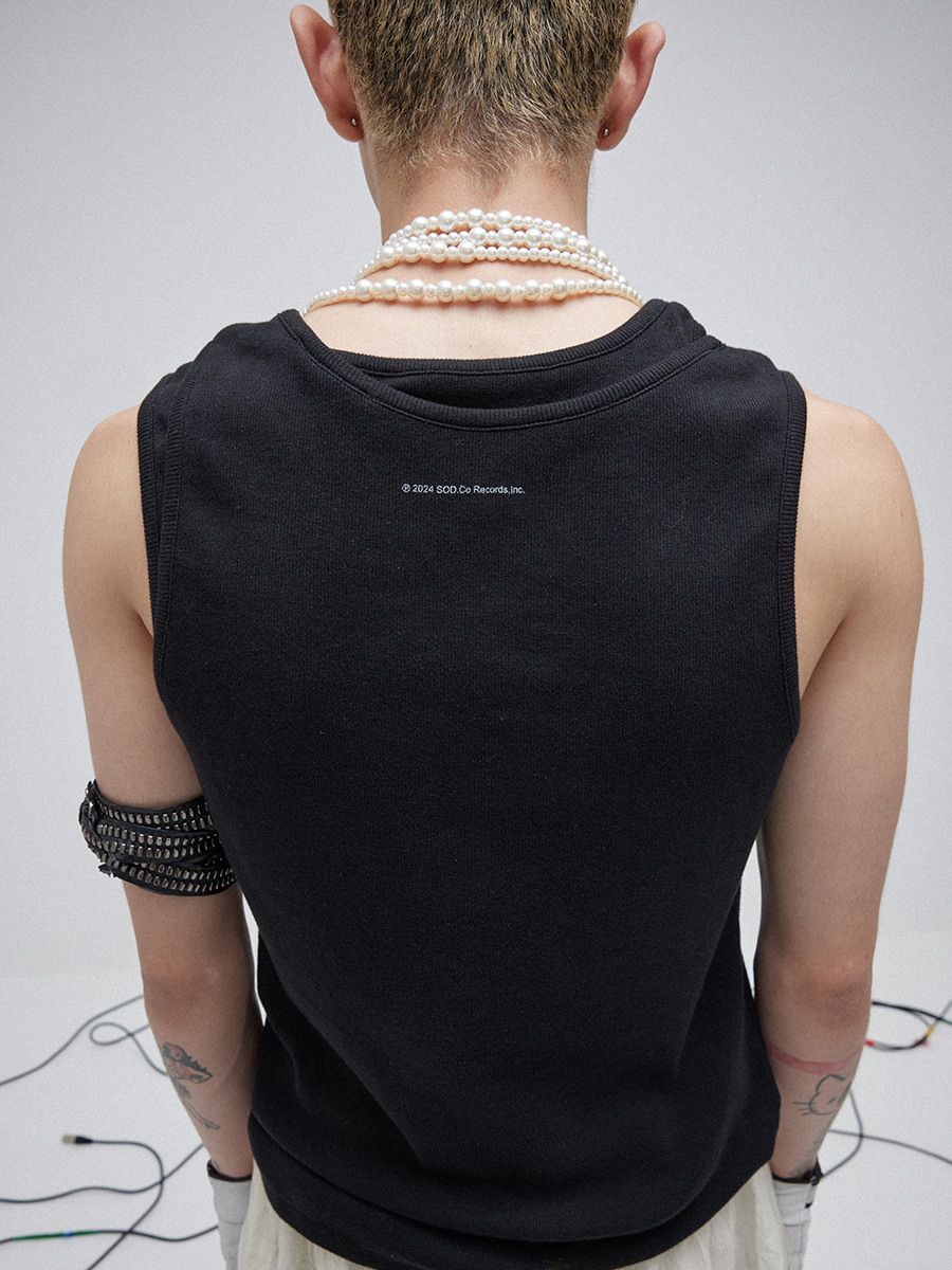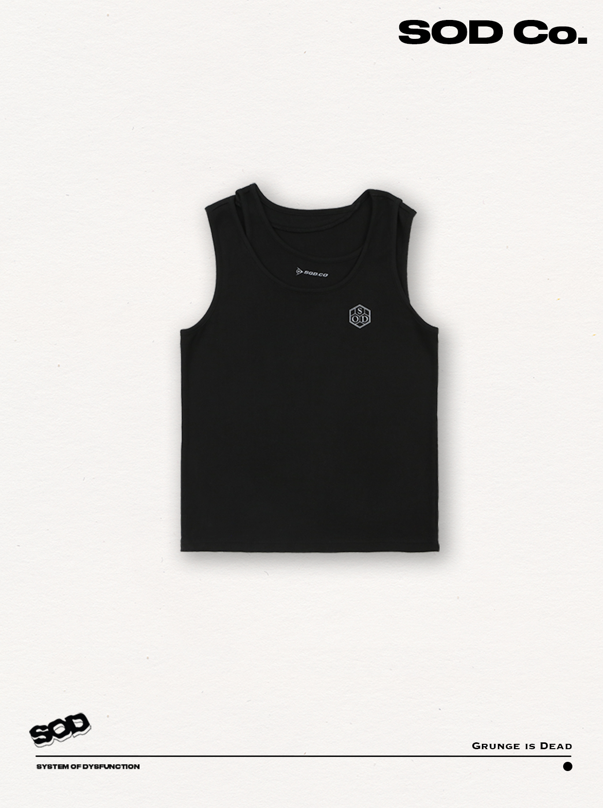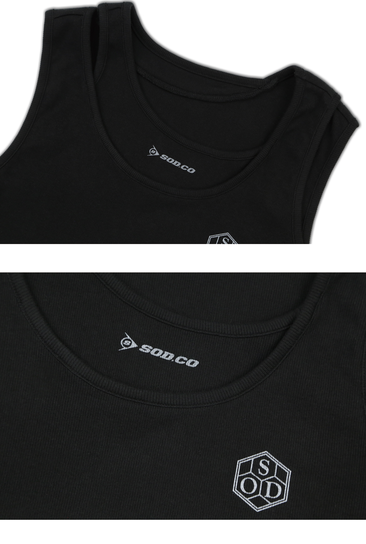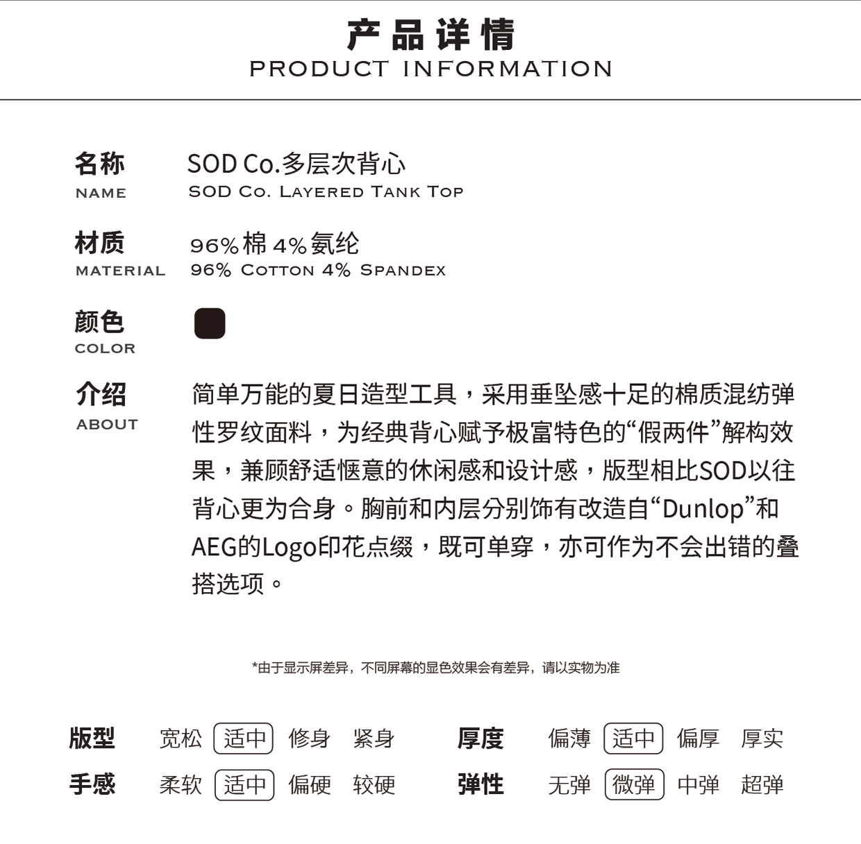 SOD Co. 假兩件背心 黑色 羅紋合身內搭親膚無袖坎肩基礎打底