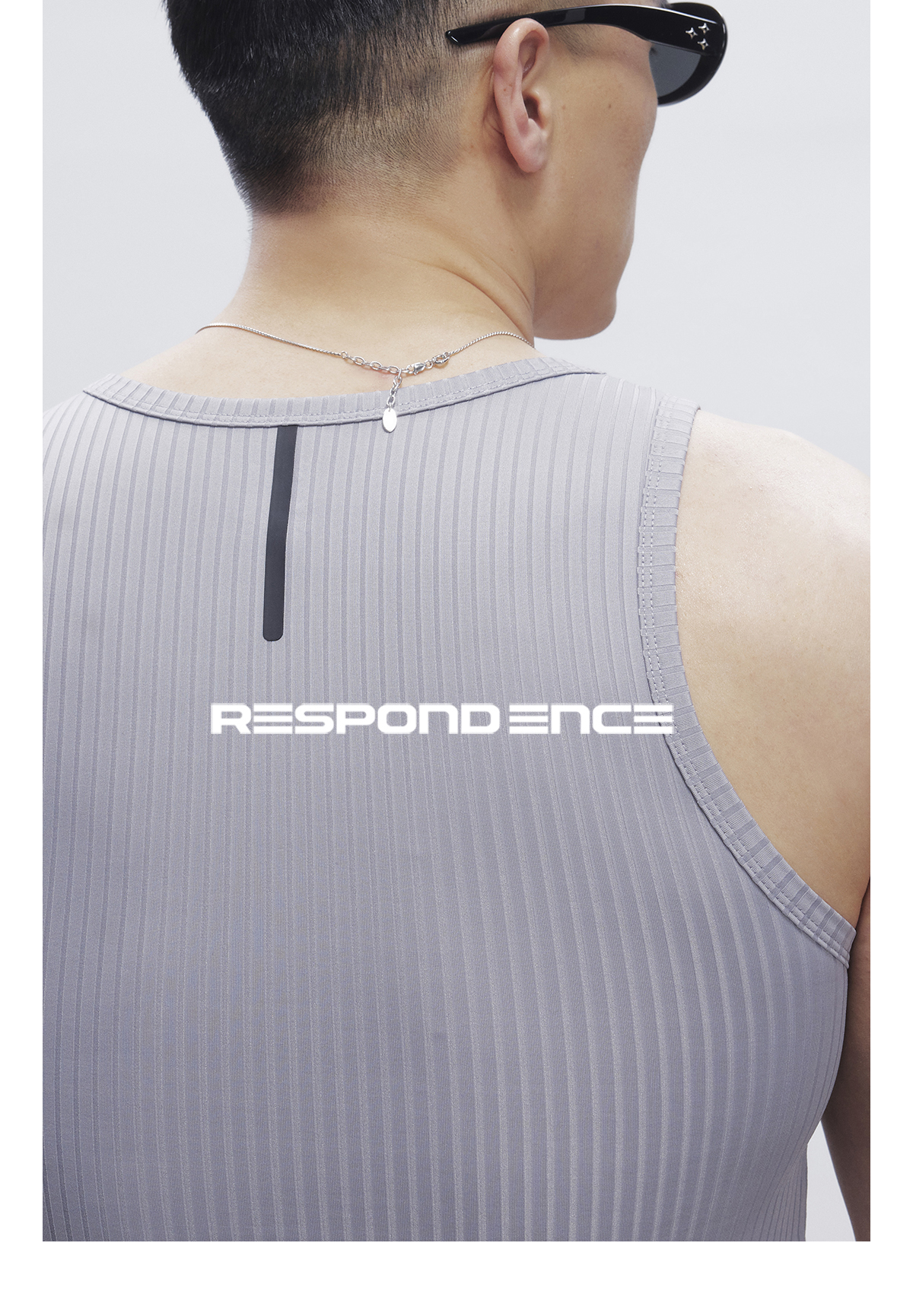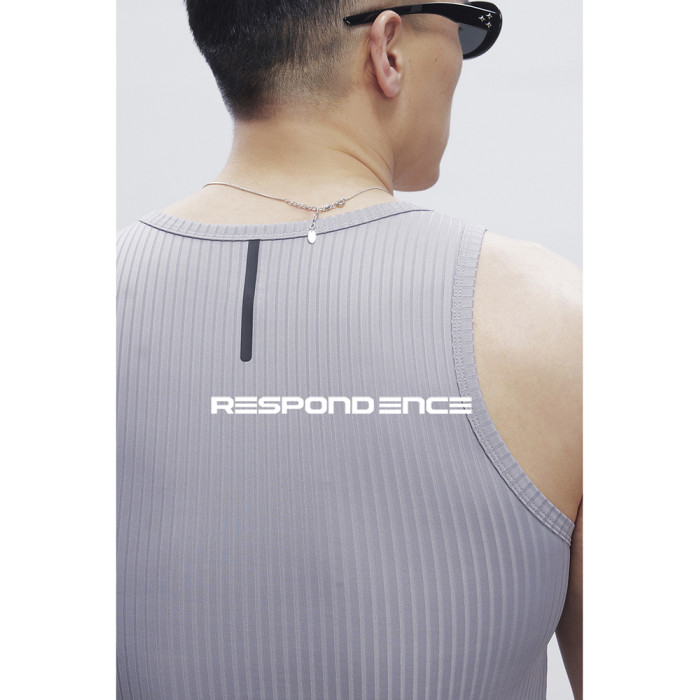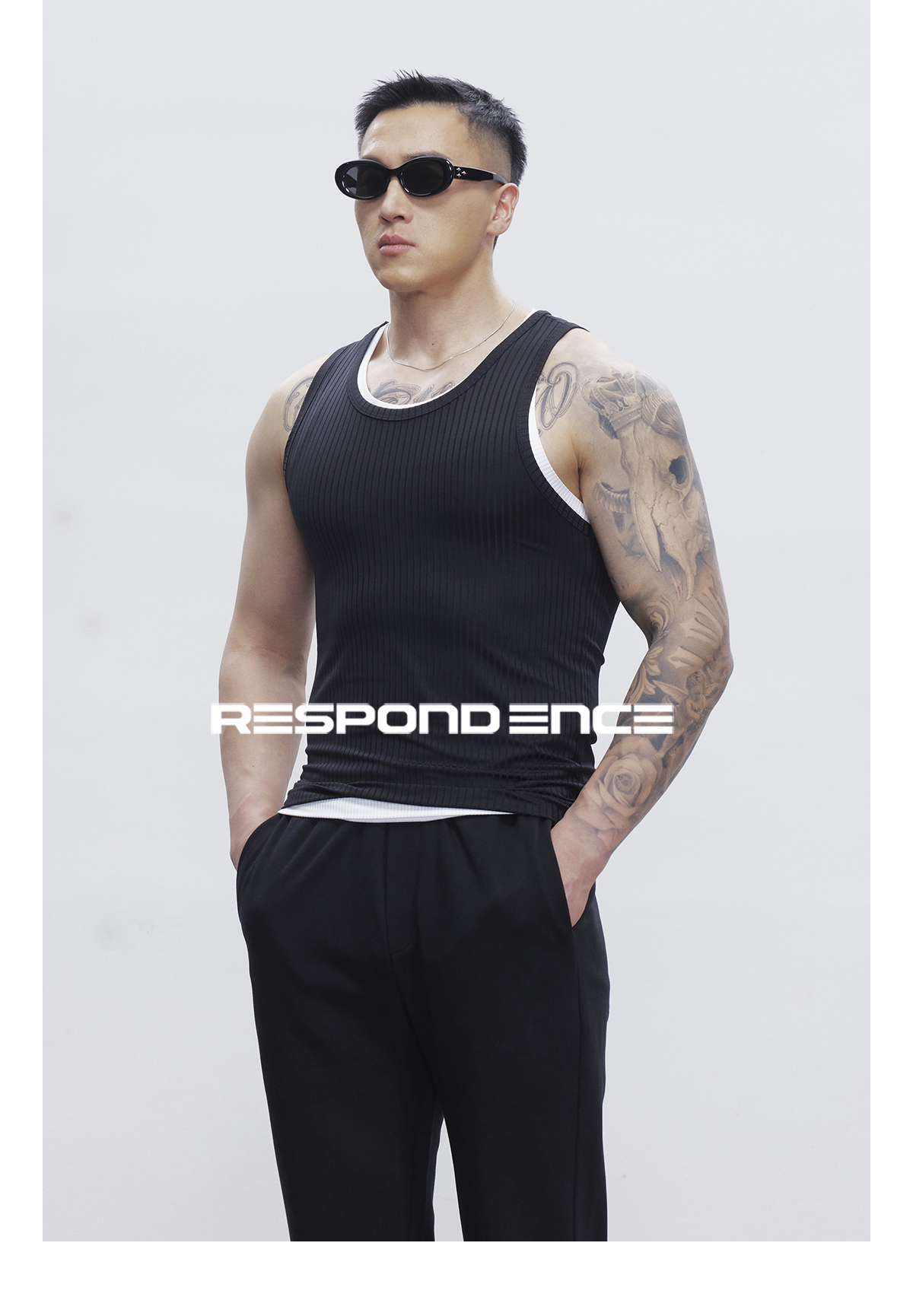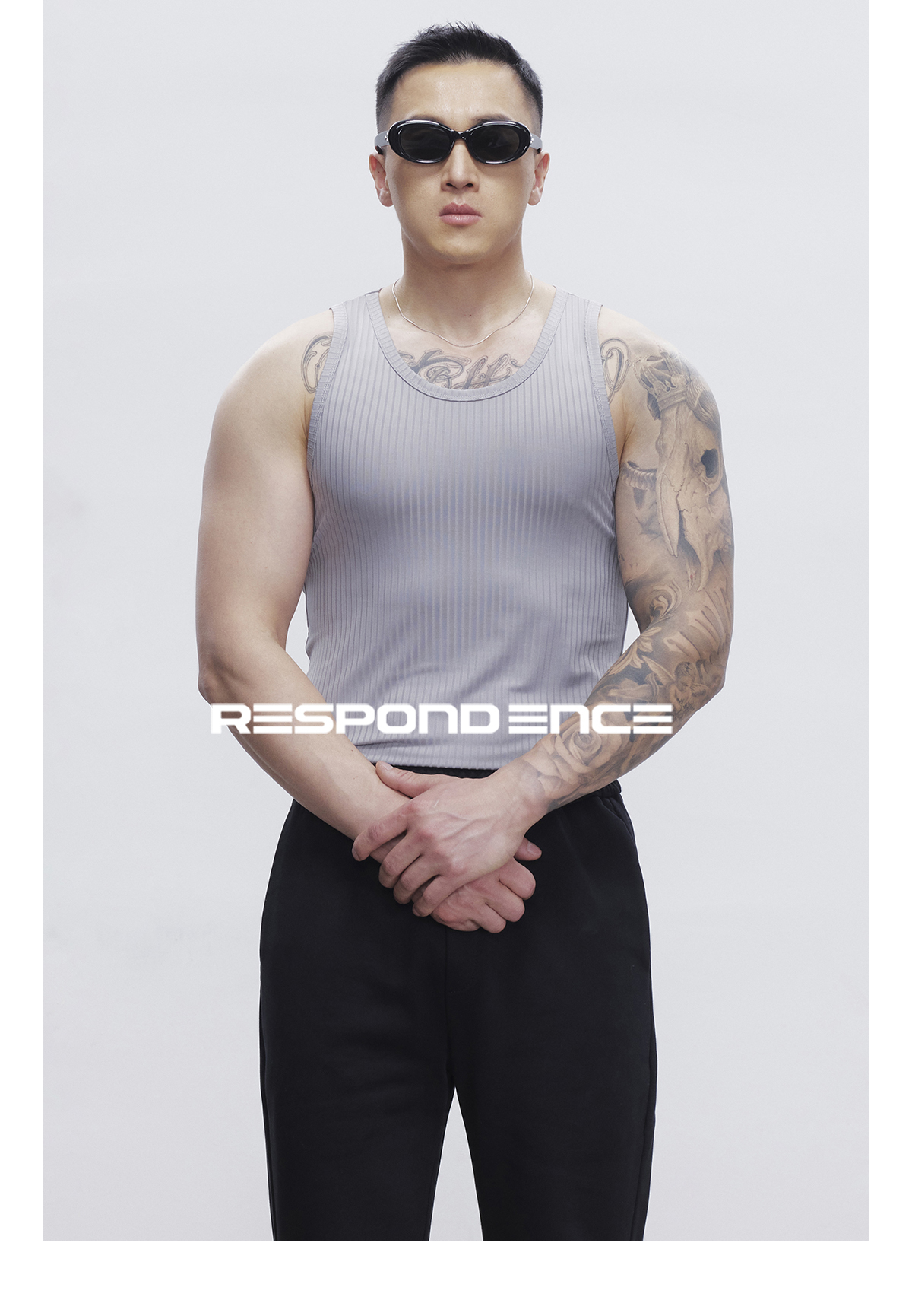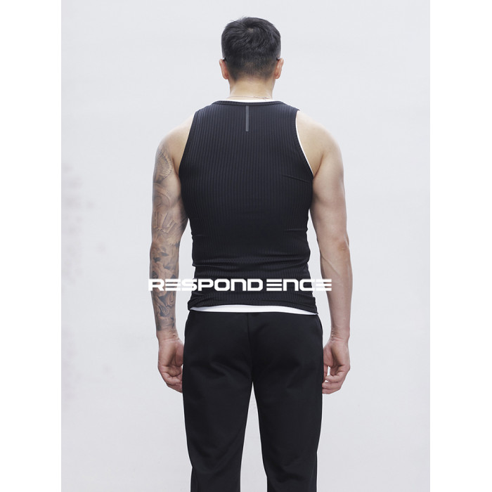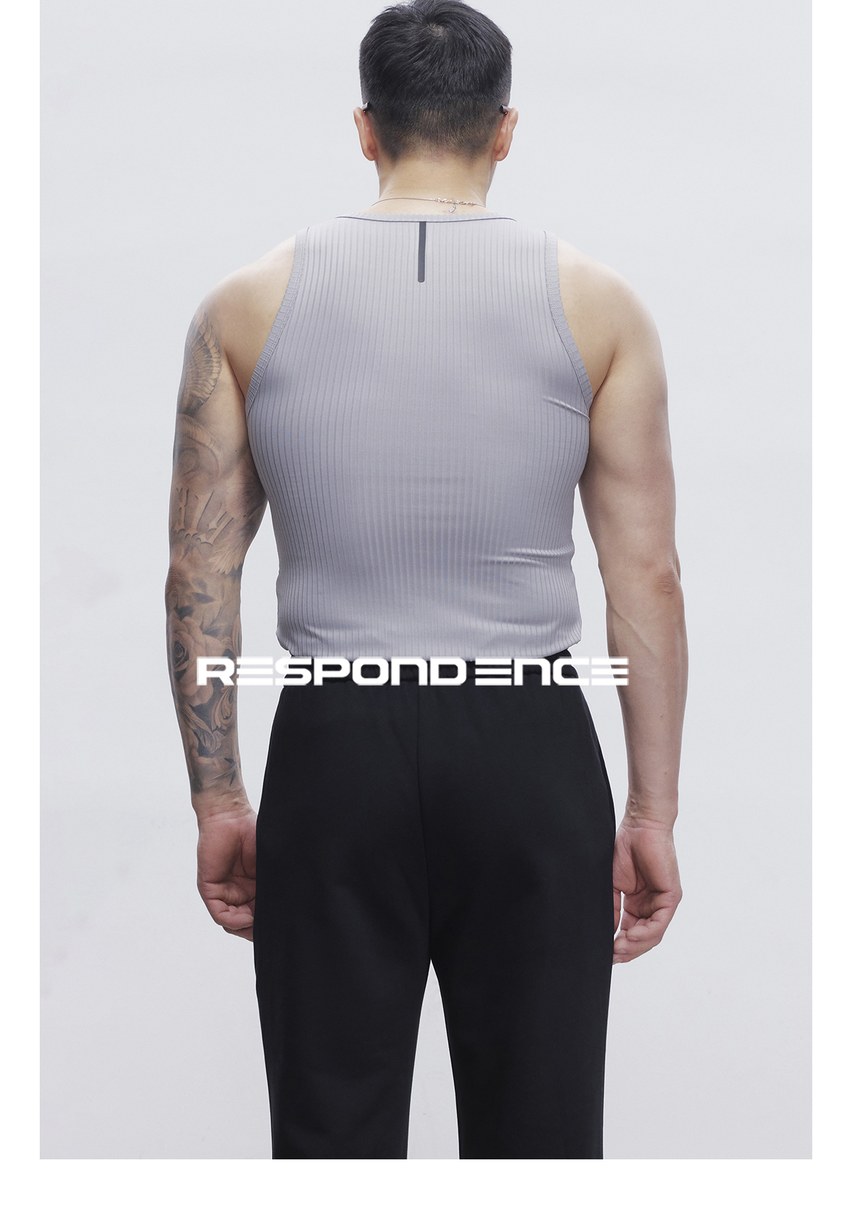 RESPONDENCE 坑紋條彈力修身窄肩背心基礎款打底運動健身速乾上衣