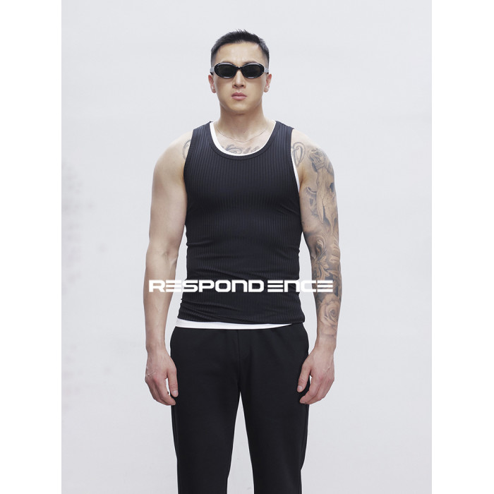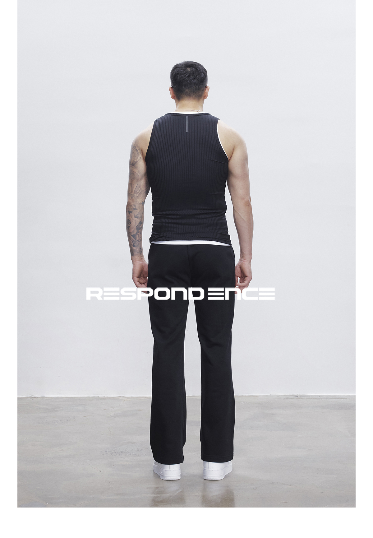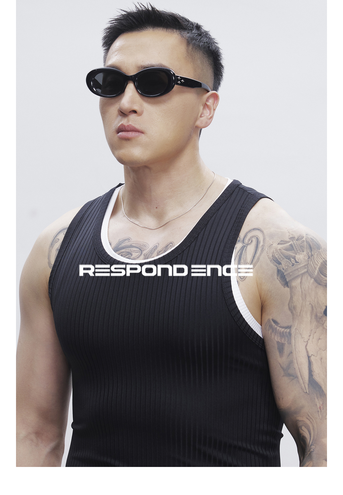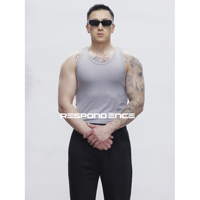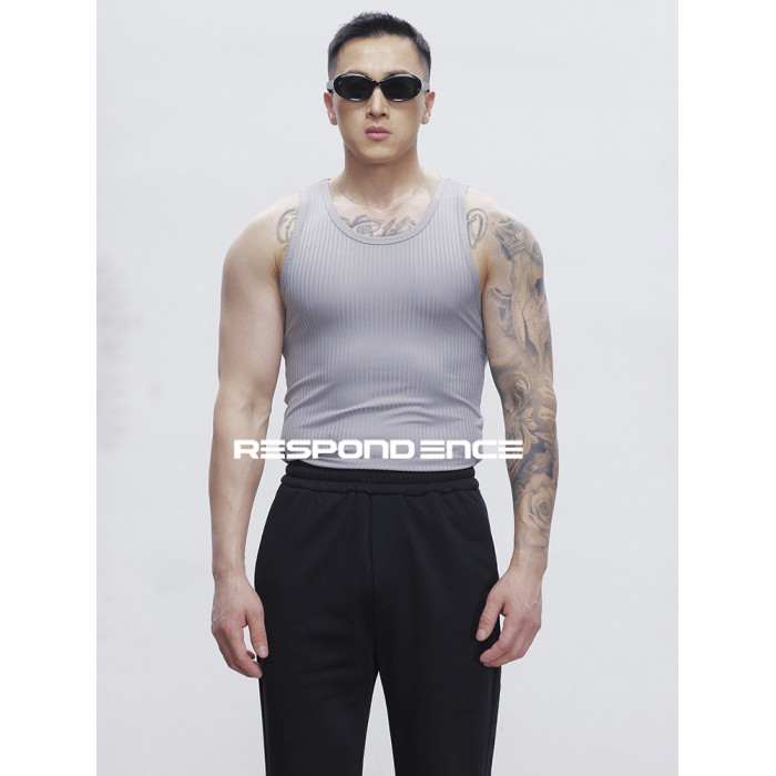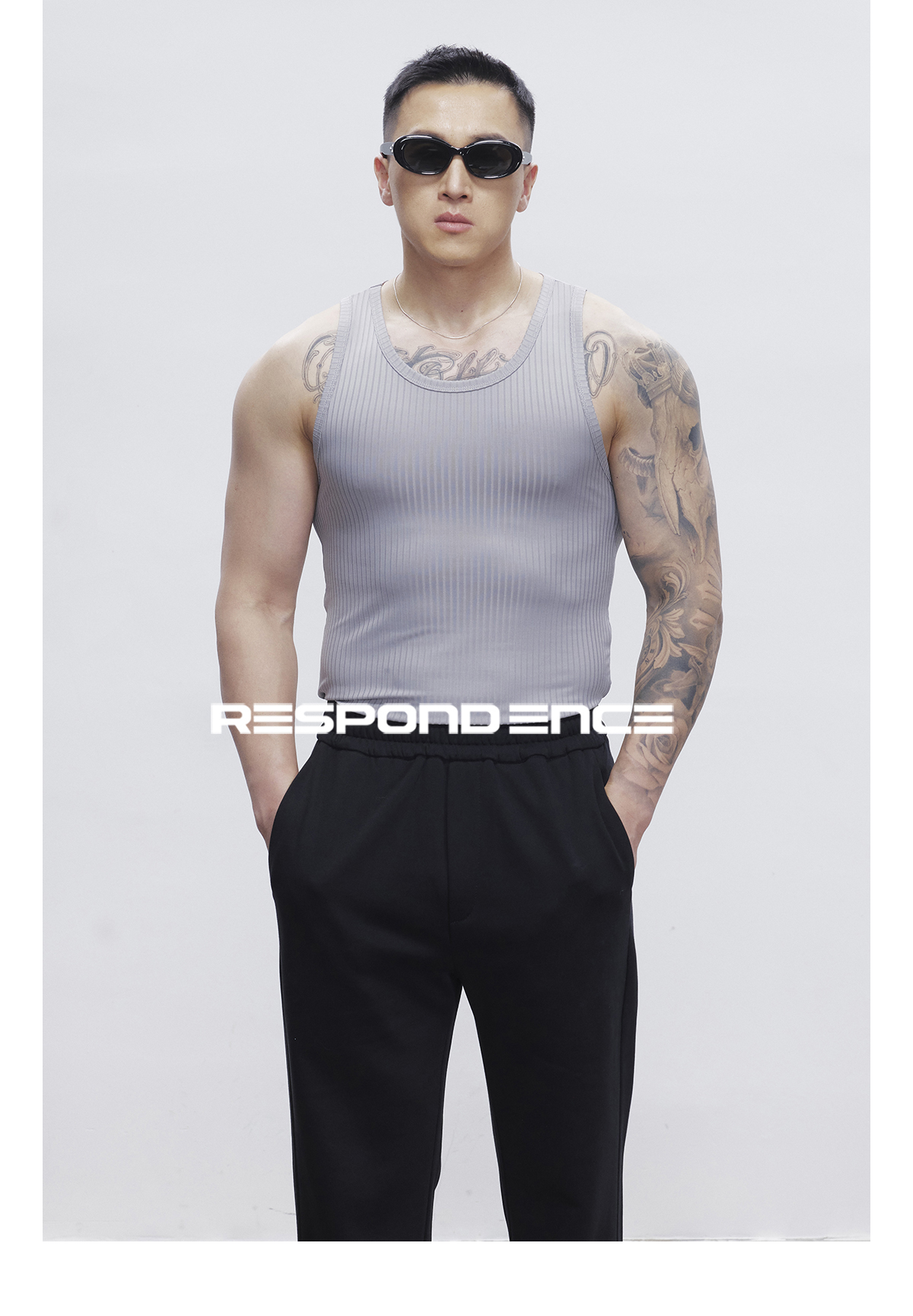 RESPONDENCE 坑紋條彈力修身窄肩背心基礎款打底運動健身速乾上衣