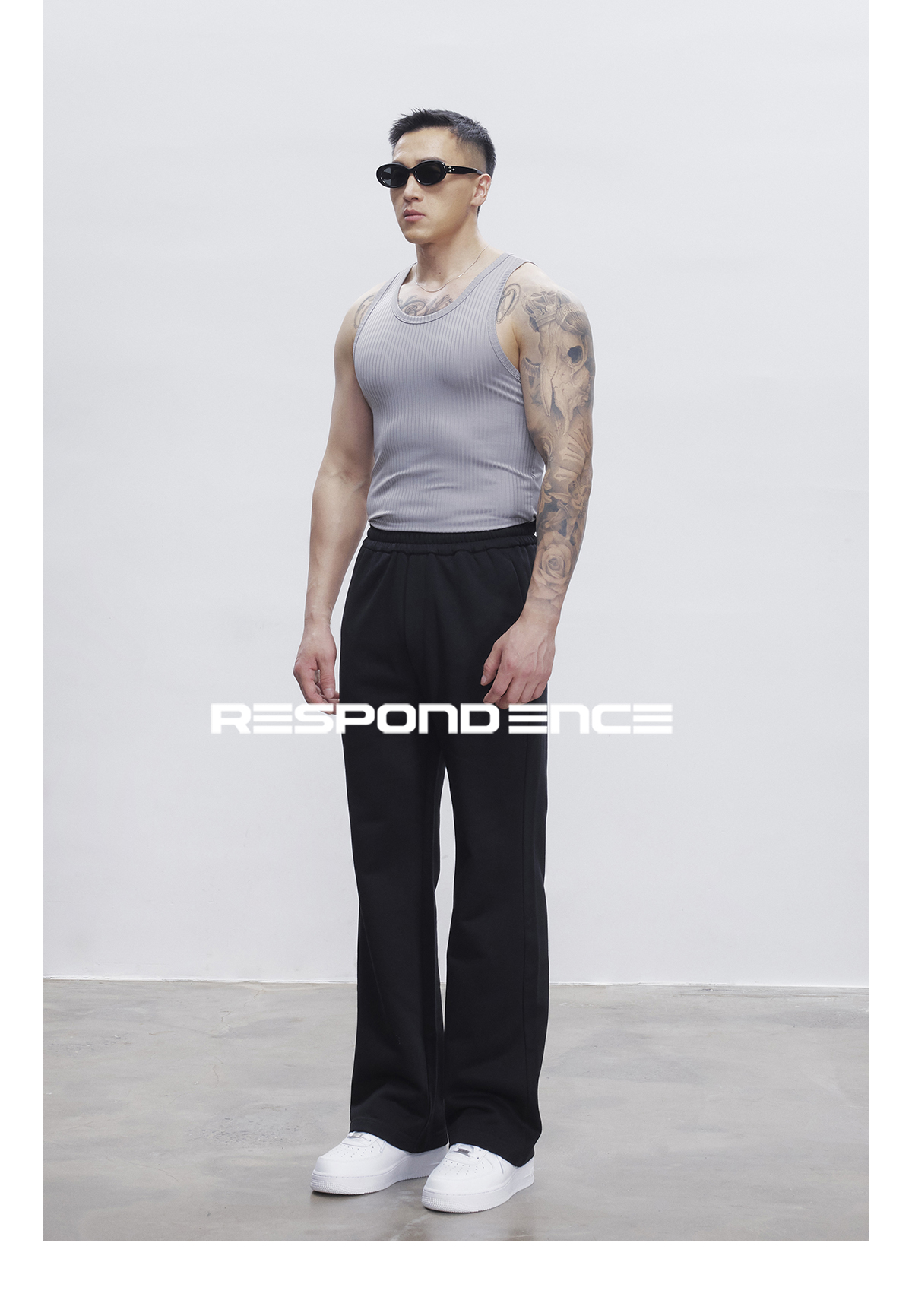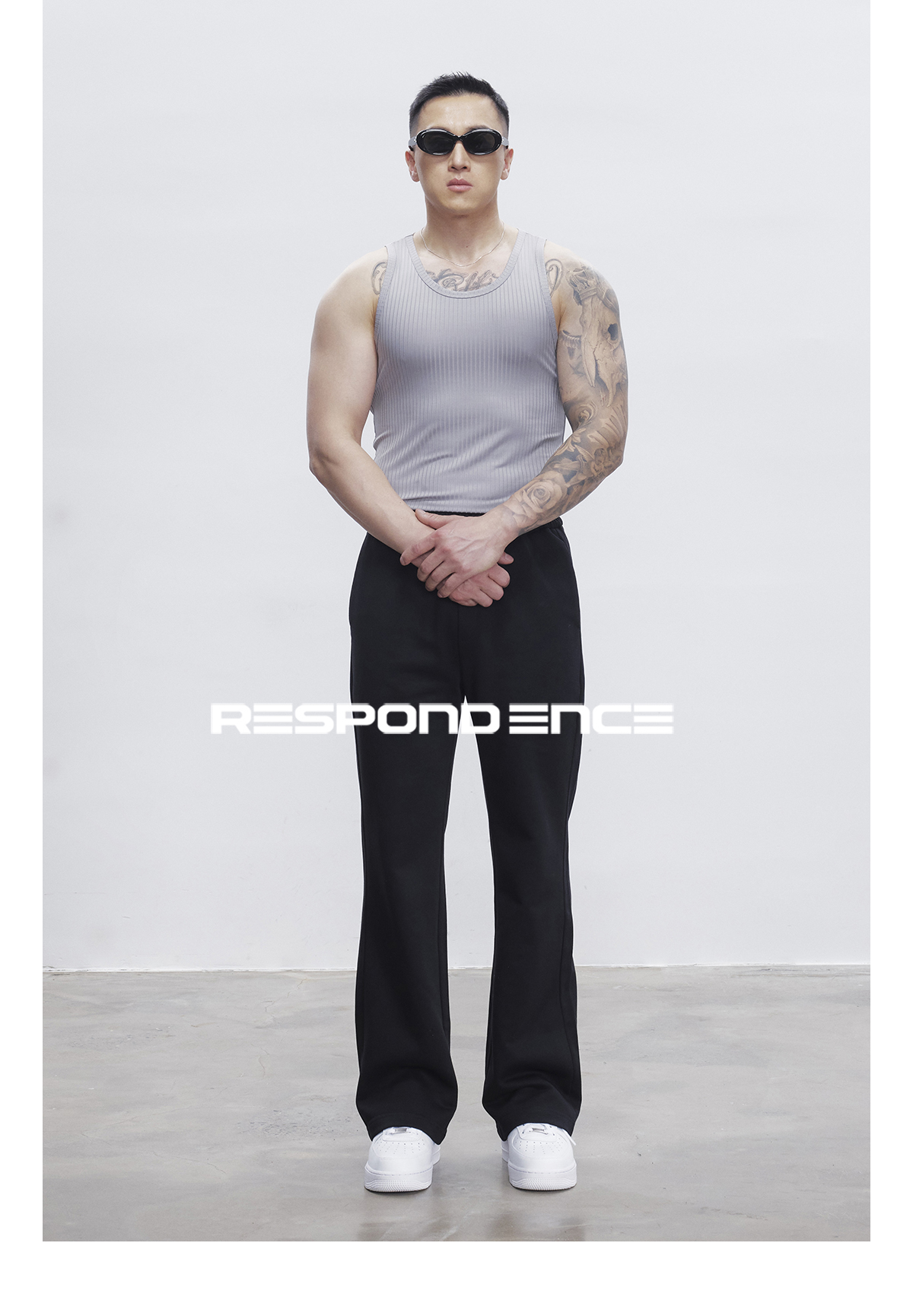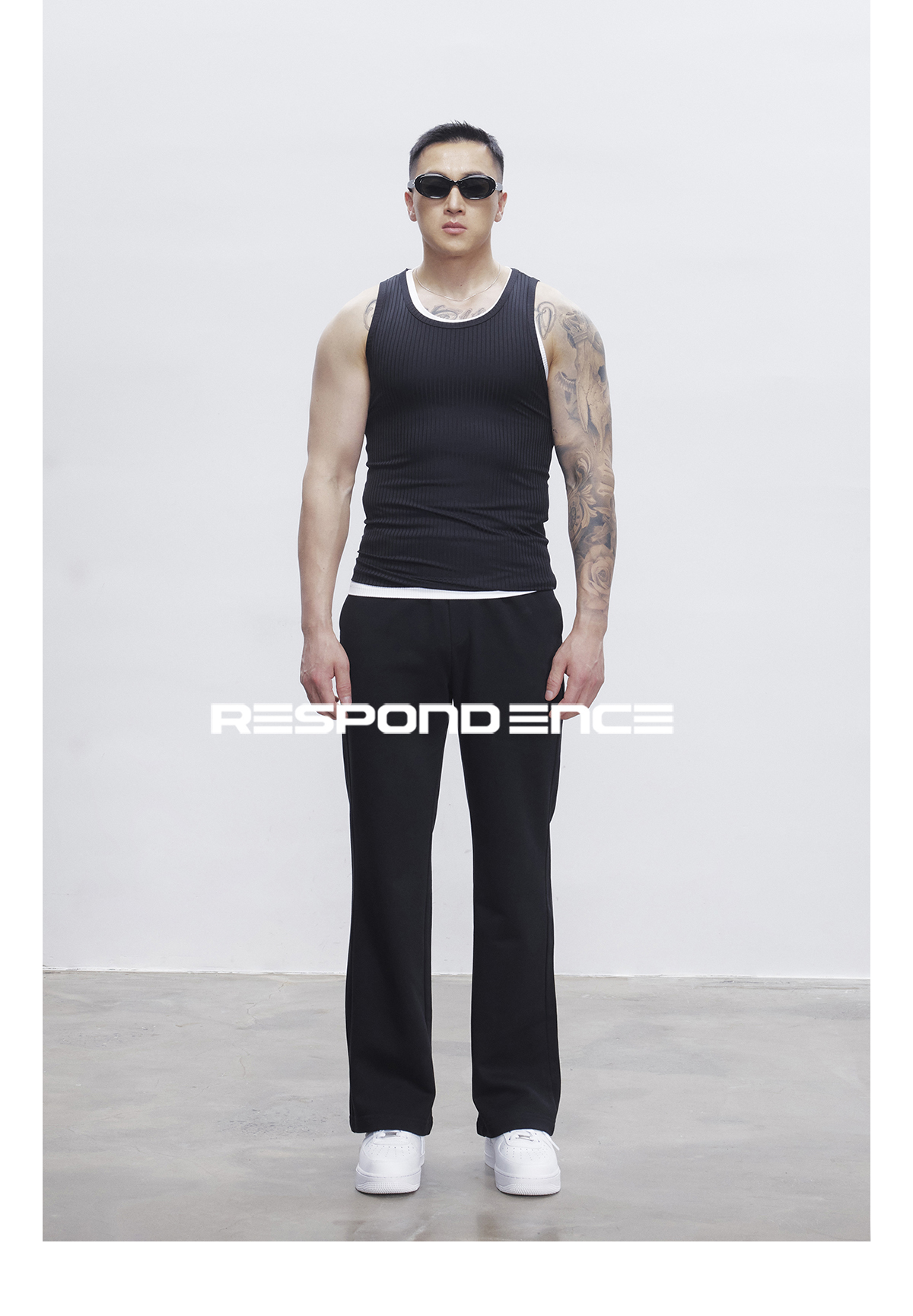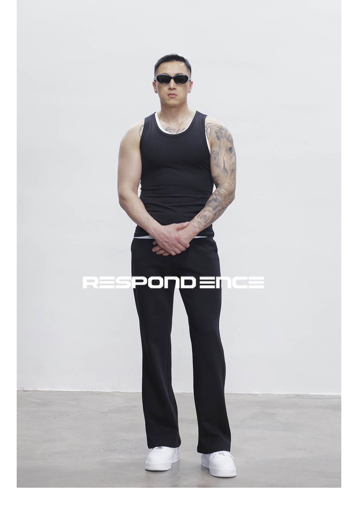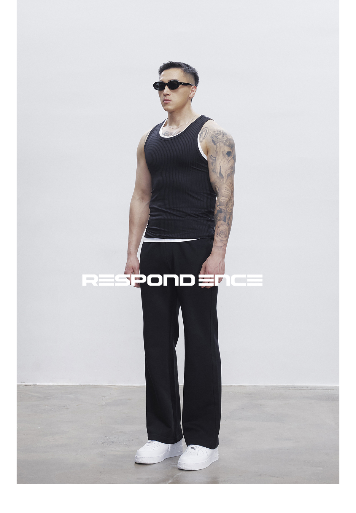 RESPONDENCE 坑紋條彈力修身窄肩背心基礎款打底運動健身速乾上衣