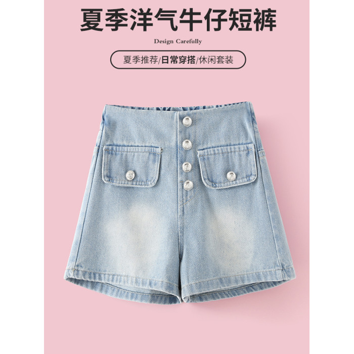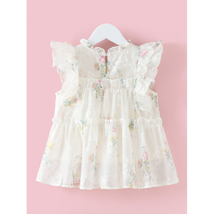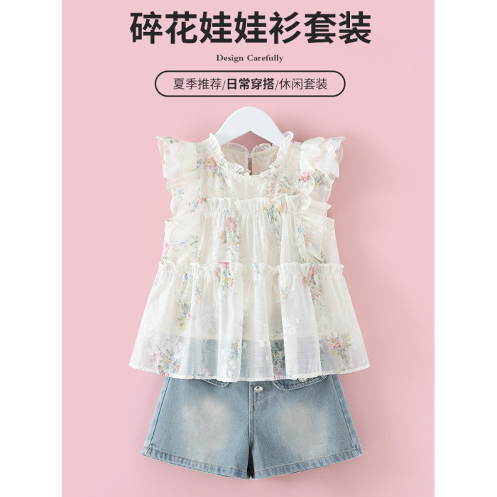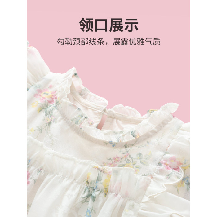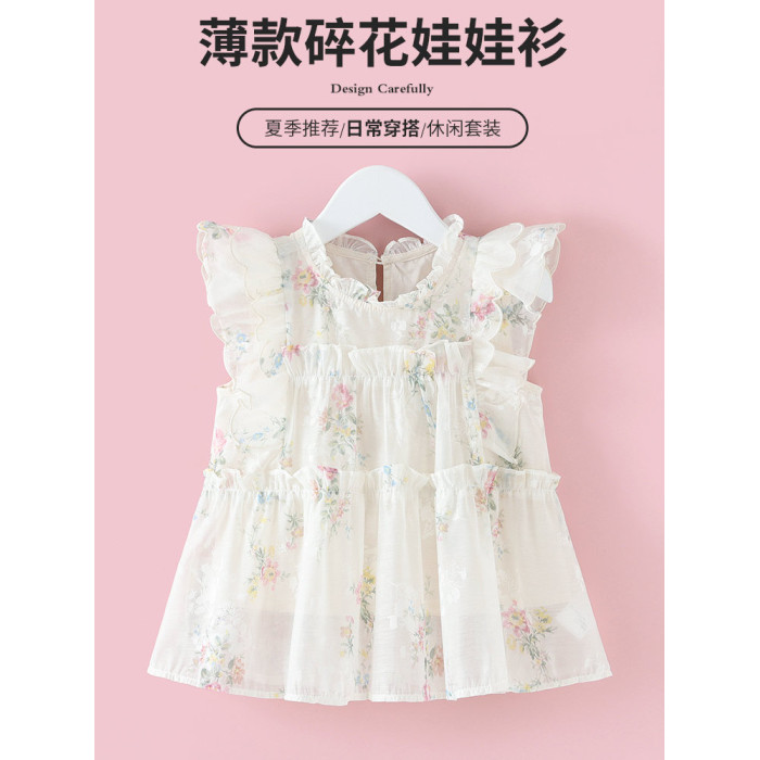 女童洋氣飛袖娃娃衫短袖夏季新款女孩寬松兒童裝碎花雪紡上衣薄款