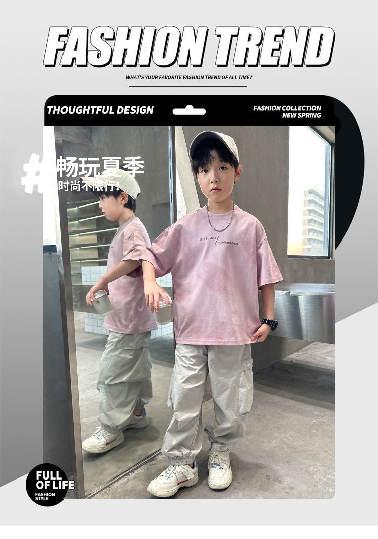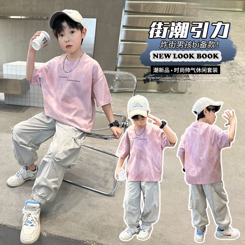 兒童裝男童夏裝套裝2025新款酷帥運動大童薄款短袖長褲男孩夏季潮