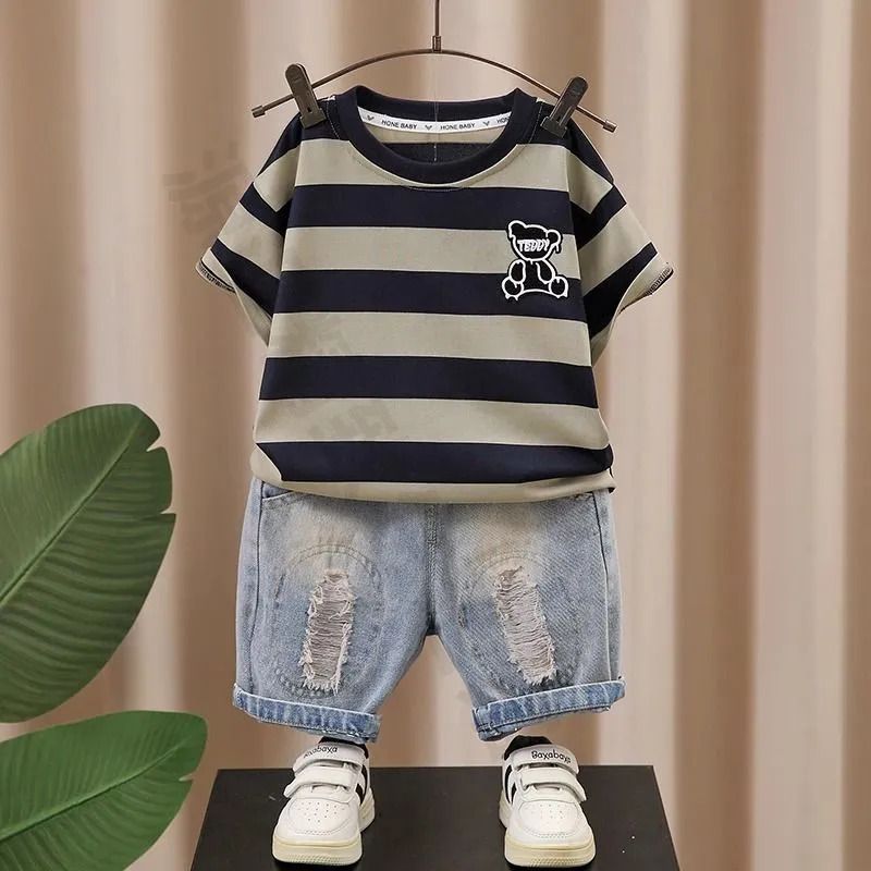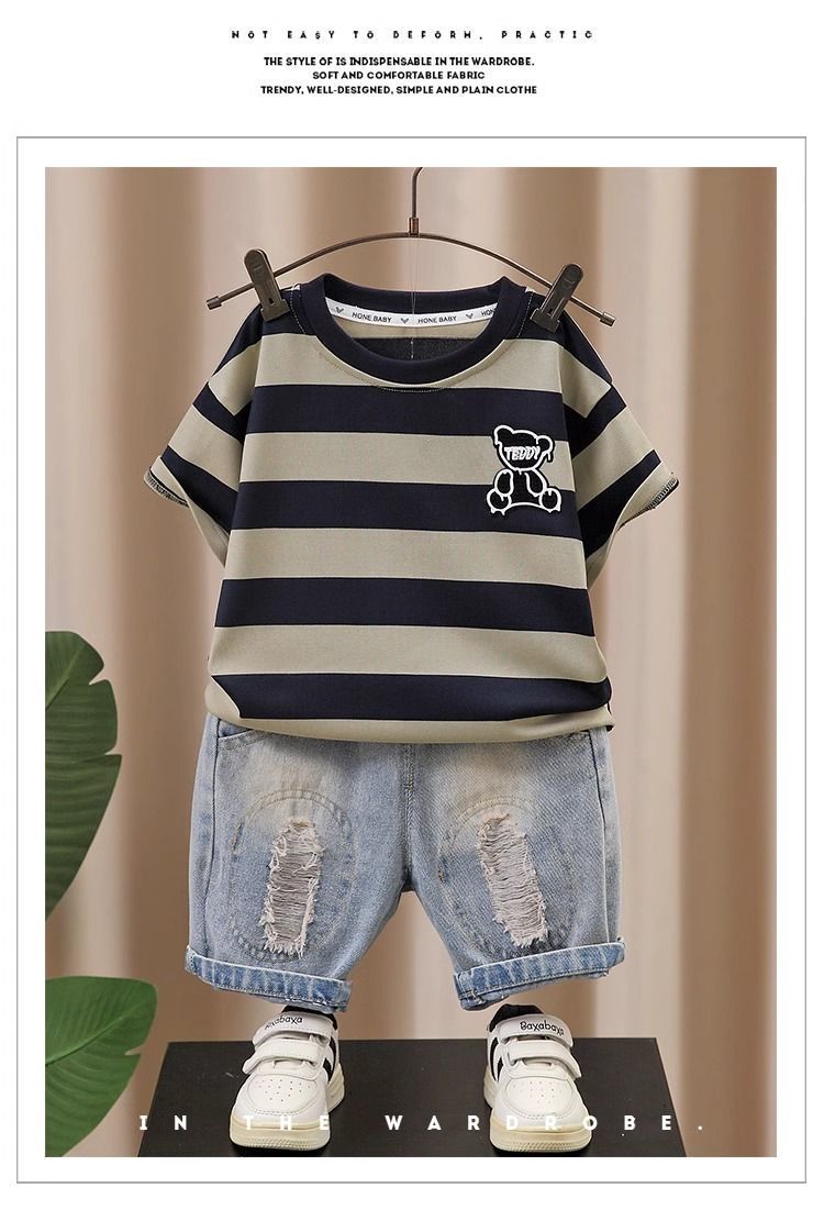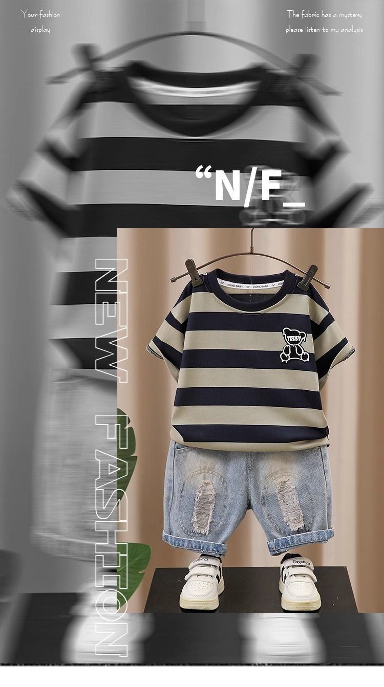 安哼安哼男童夏裝套裝2025新款兒童裝痞帥氣小童洋氣男孩條紋衣服