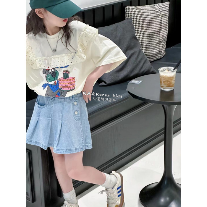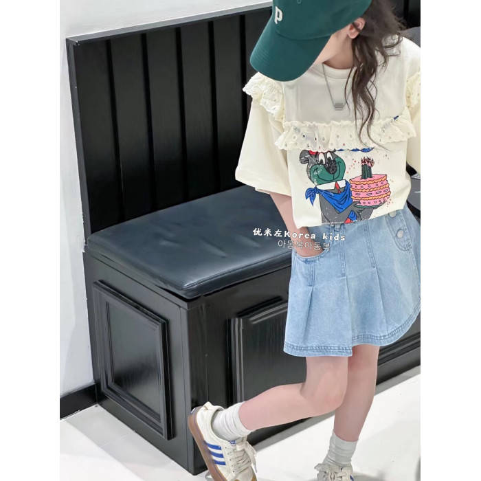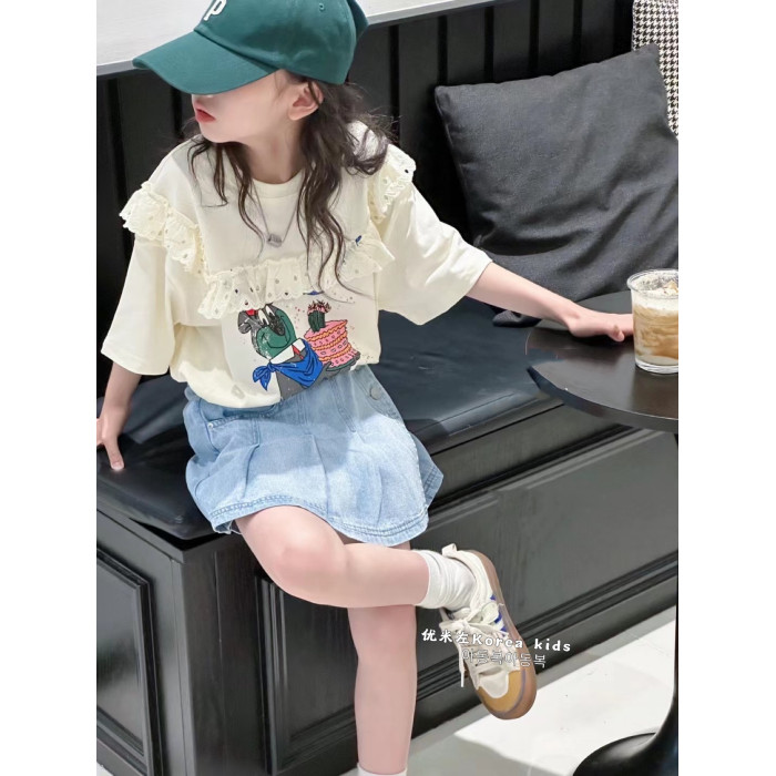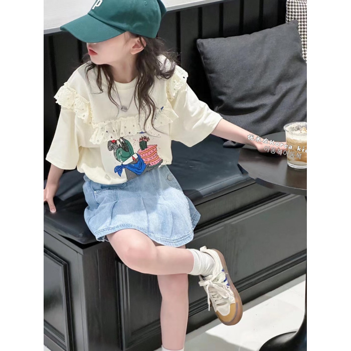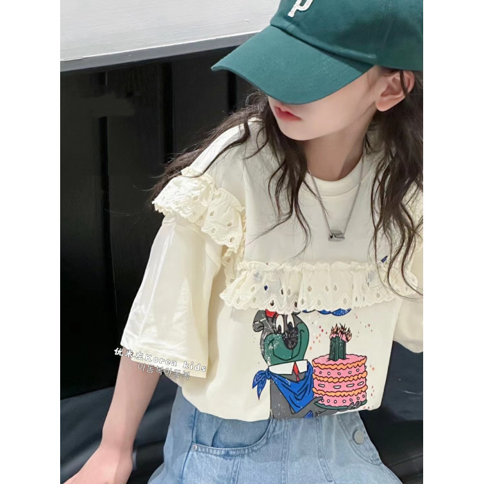 波拉bora韓國童裝甜美女孩蕾絲上衣2025夏季新款女童短袖T恤洋氣