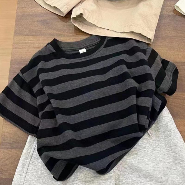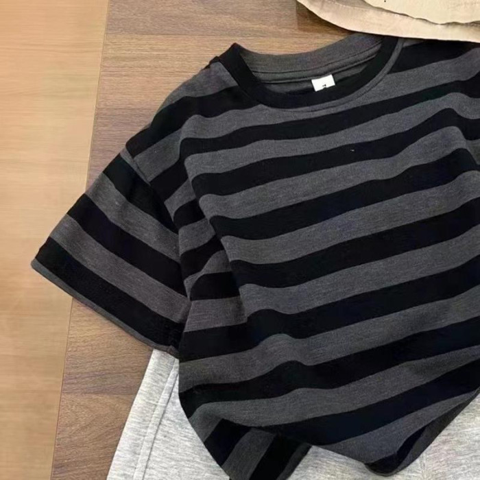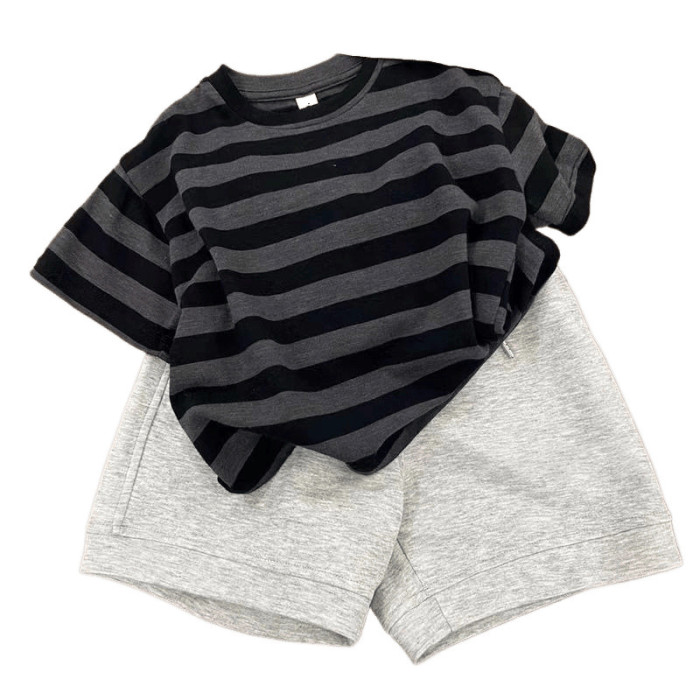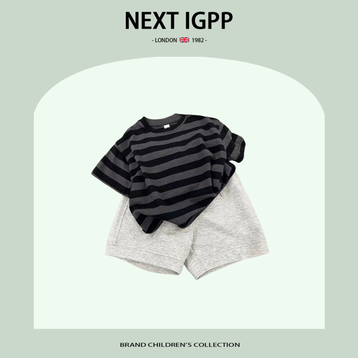 英國NEXT IGPP 男童夏季套裝夏裝T-恤短褲兩件套韓版條紋休閒上衣