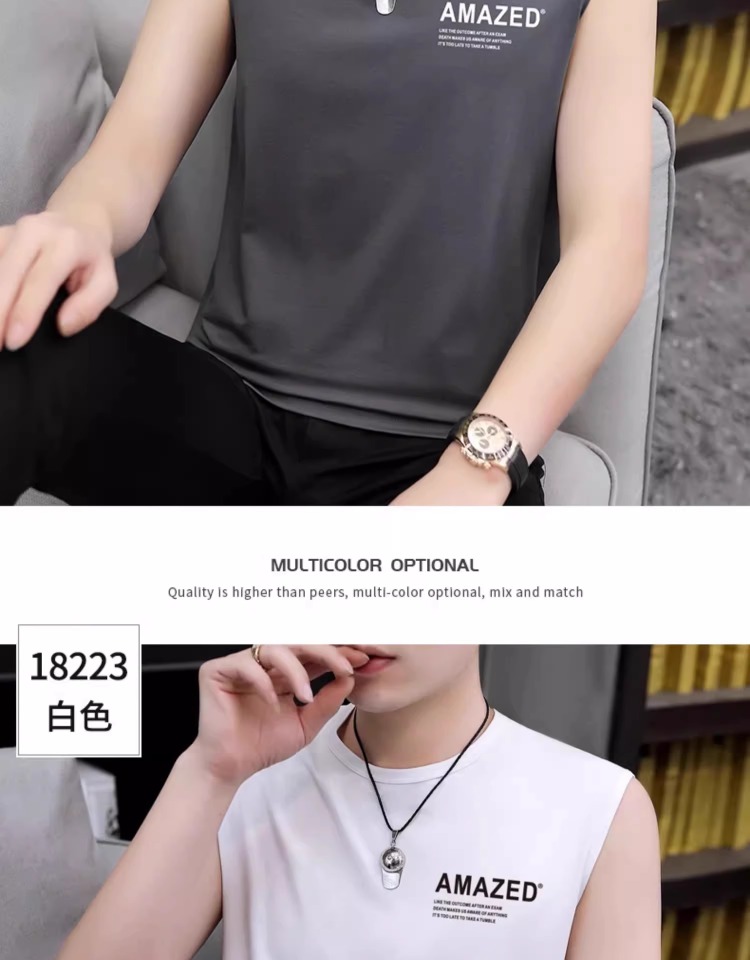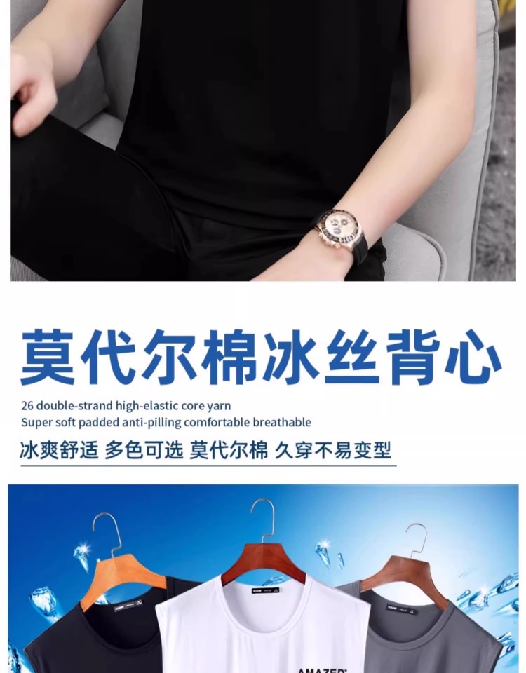 高級莫代爾冰絲背心男士2025新款夏季薄坎肩運動健身無袖t恤男款