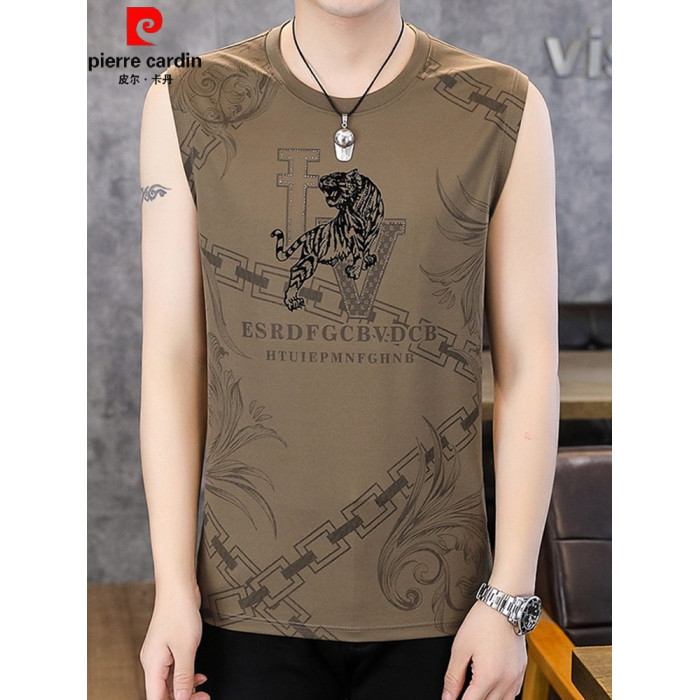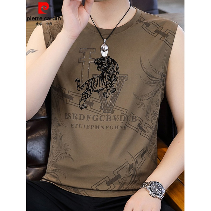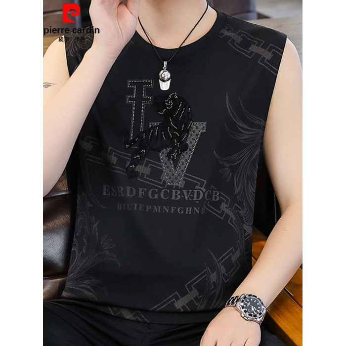 皮爾卡丹冰絲無袖t恤男2025夏季新款提花背心加肥加大碼速乾男裝