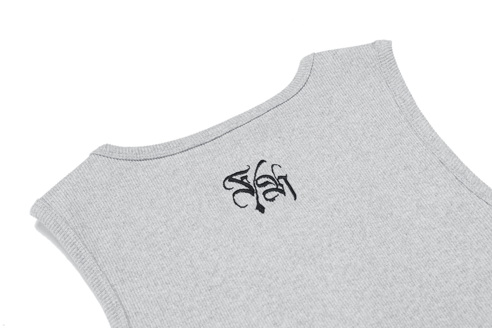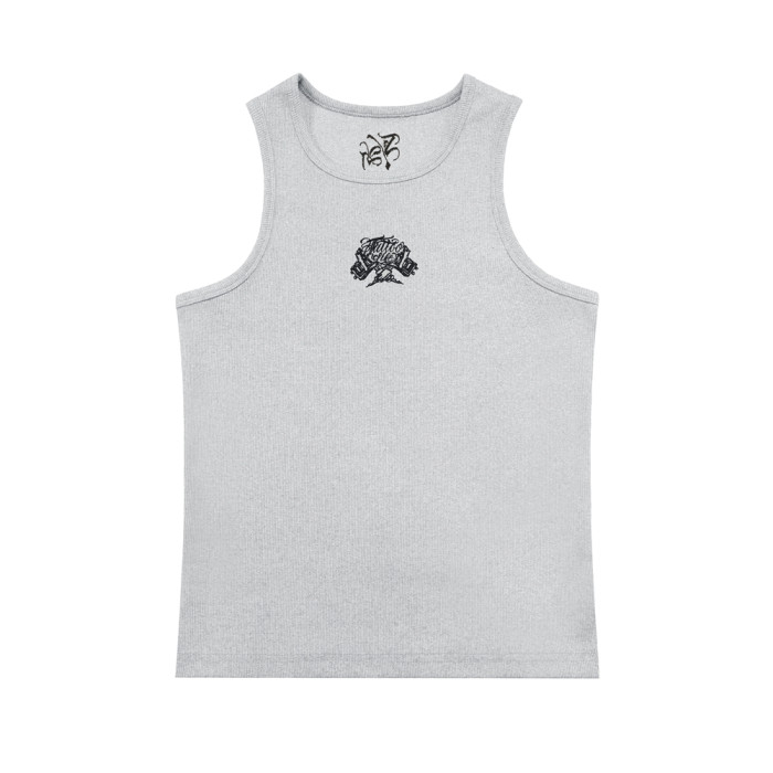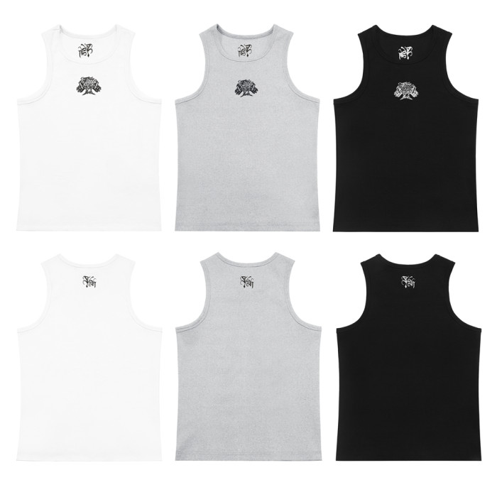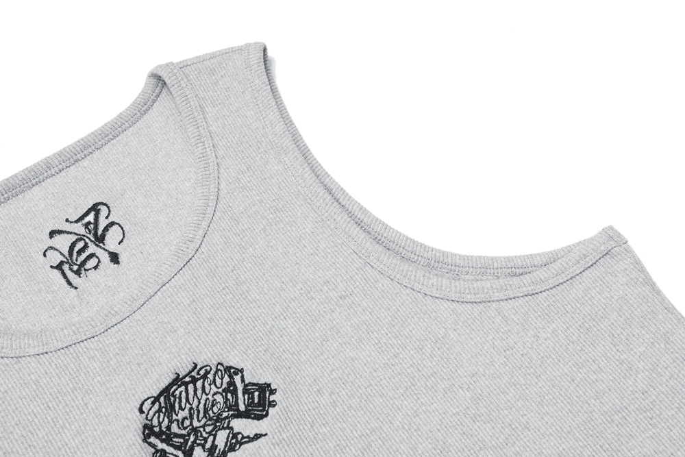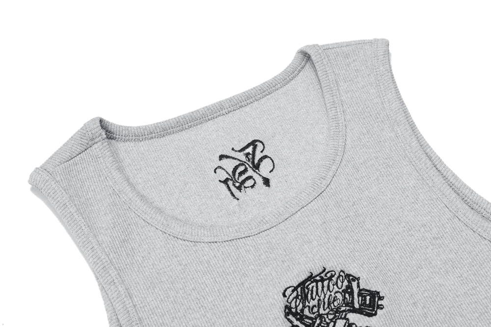 美版重磅刺綉高彈2*2螺紋380克打底緊身背心健身TATTOO花體奇卡諾