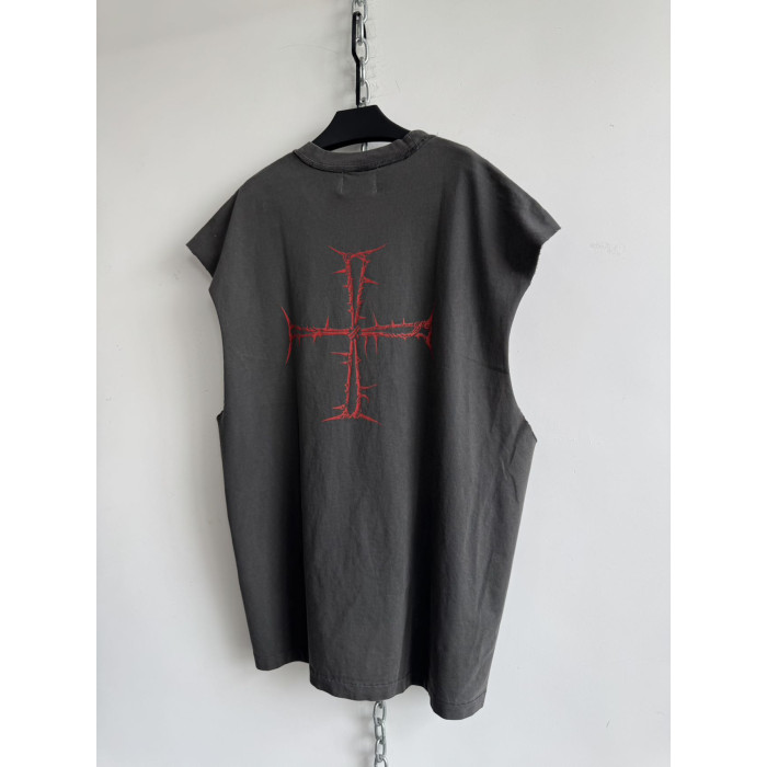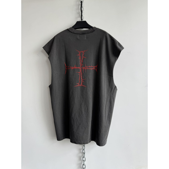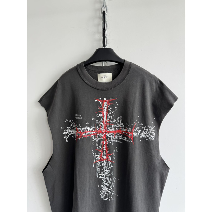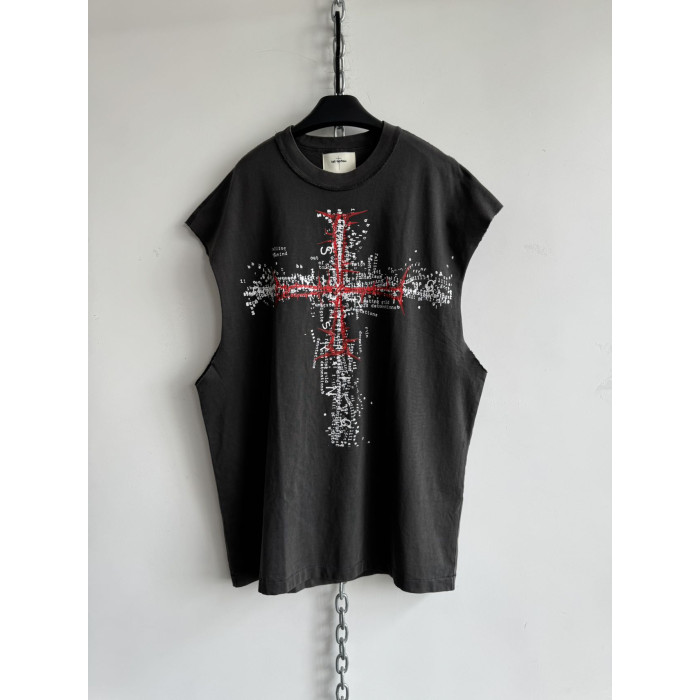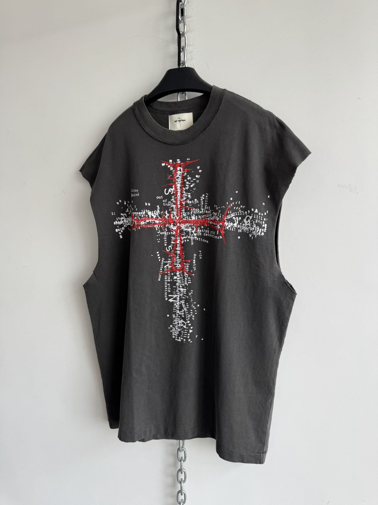 AFK/Hell System 25ss新品純棉275g蠟染做舊寬松坎肩廓形背心男女