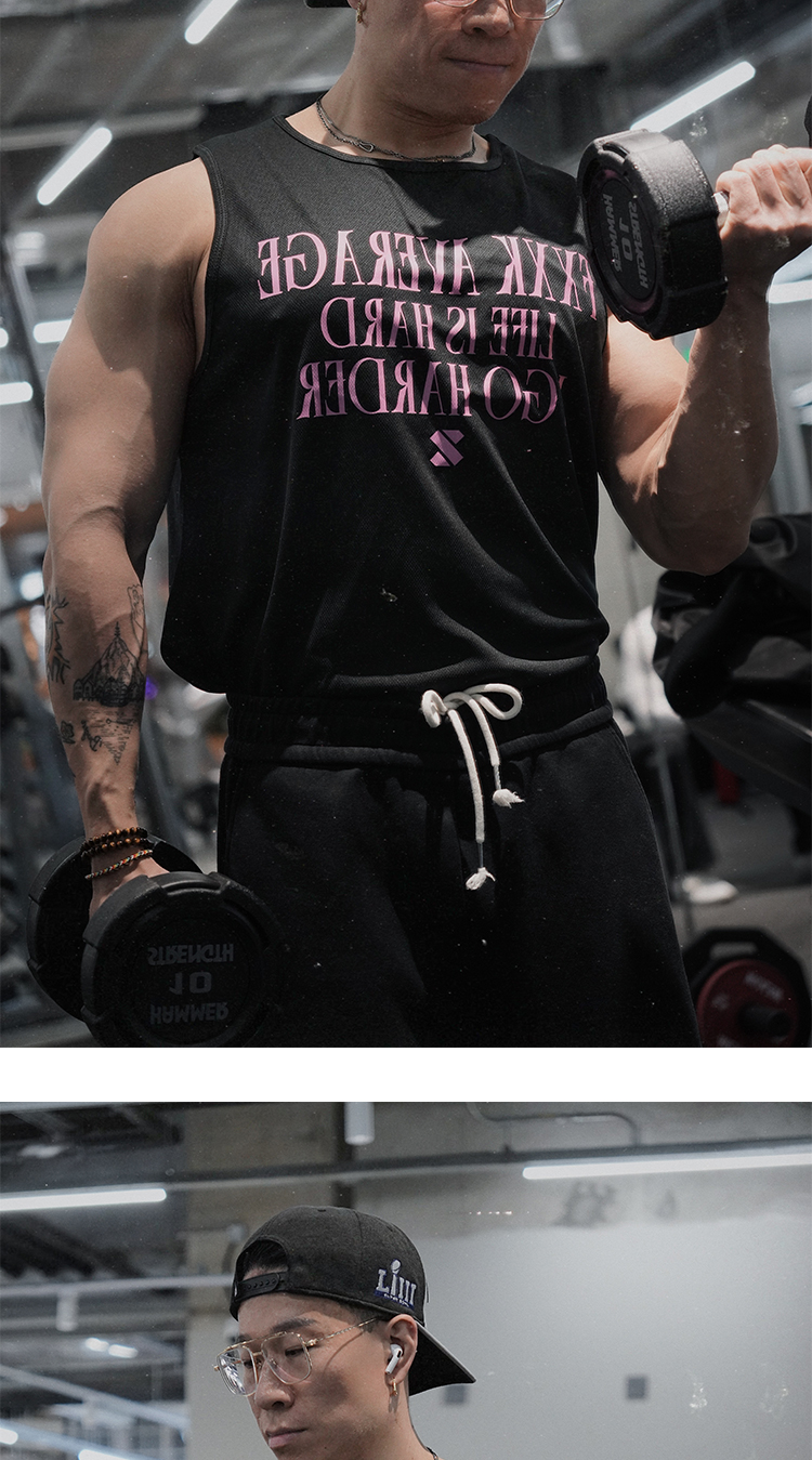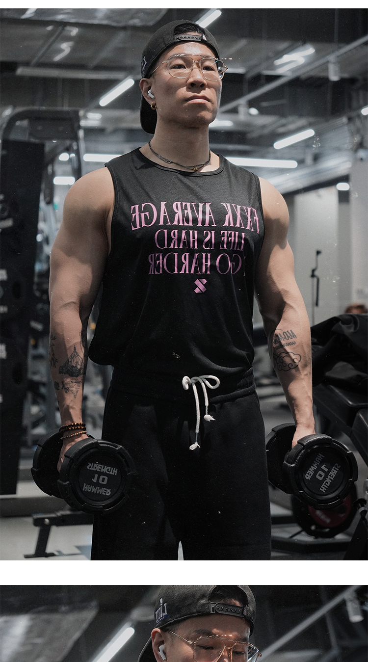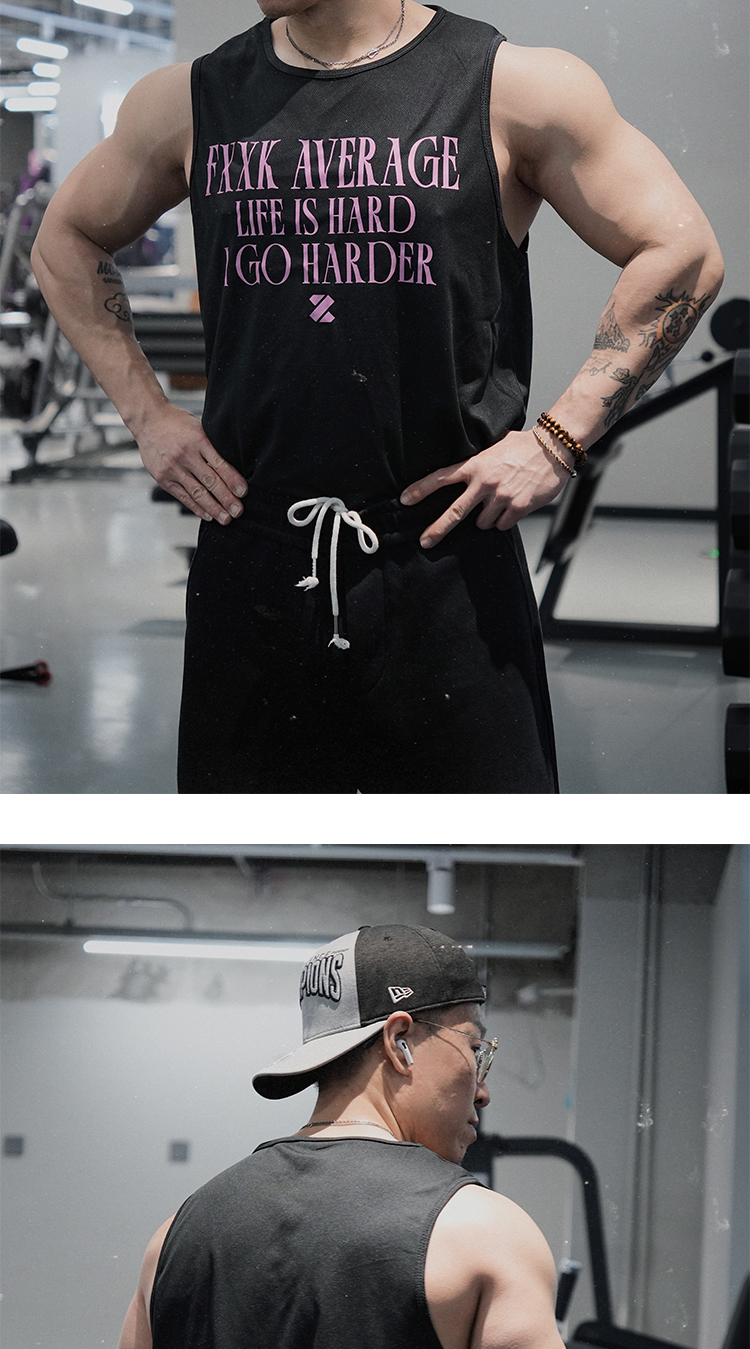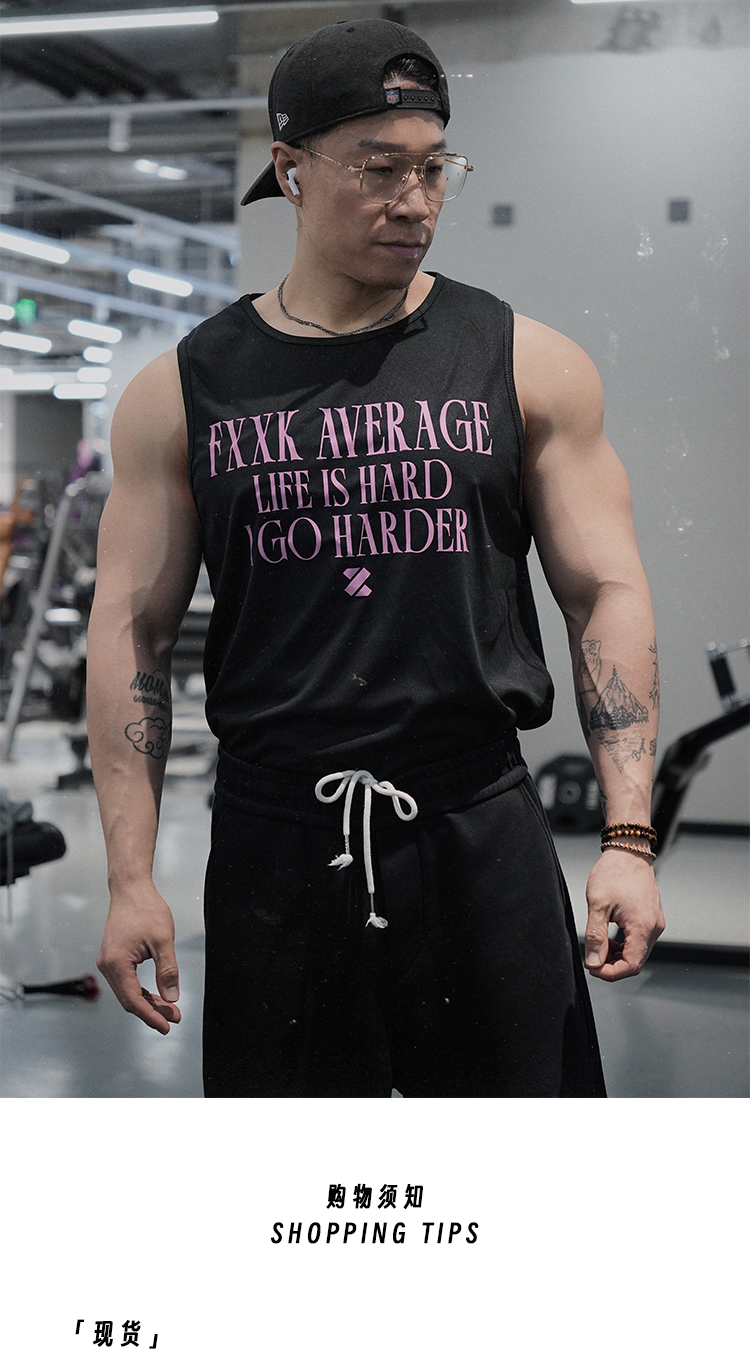ZEKE LAB「FXXKING平庸」速乾健身背心 圓弧下擺寬松運動休閒坎肩