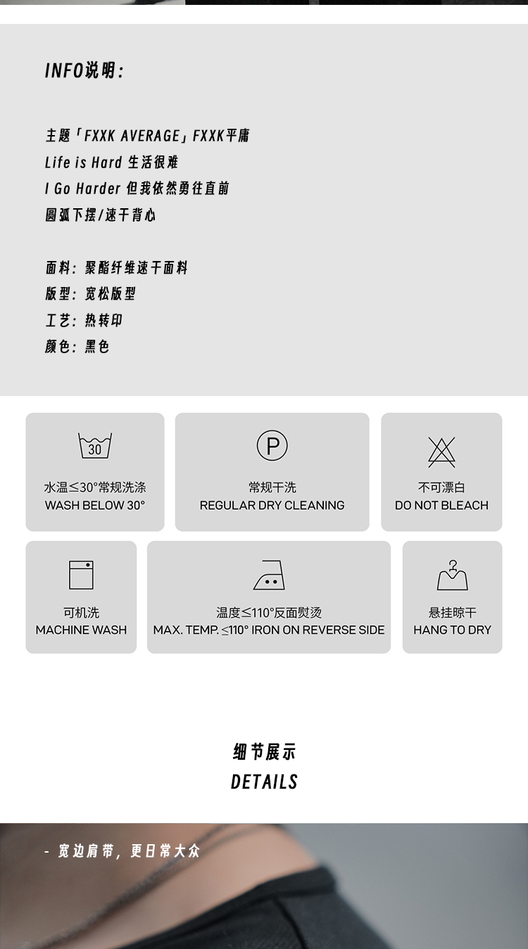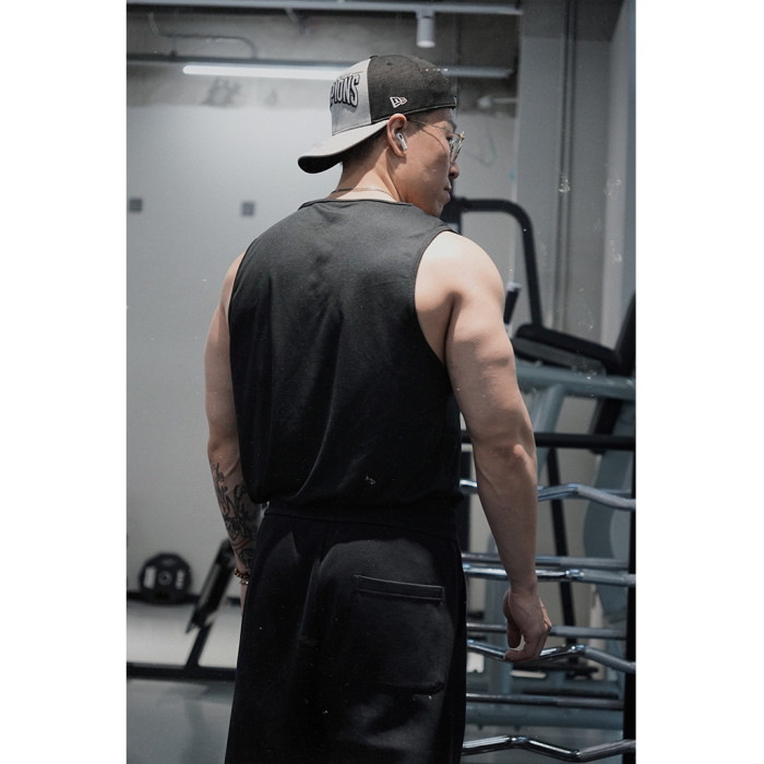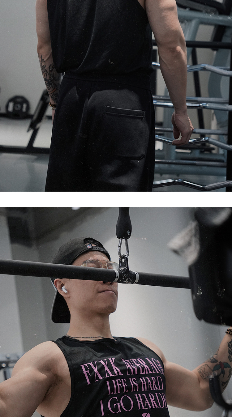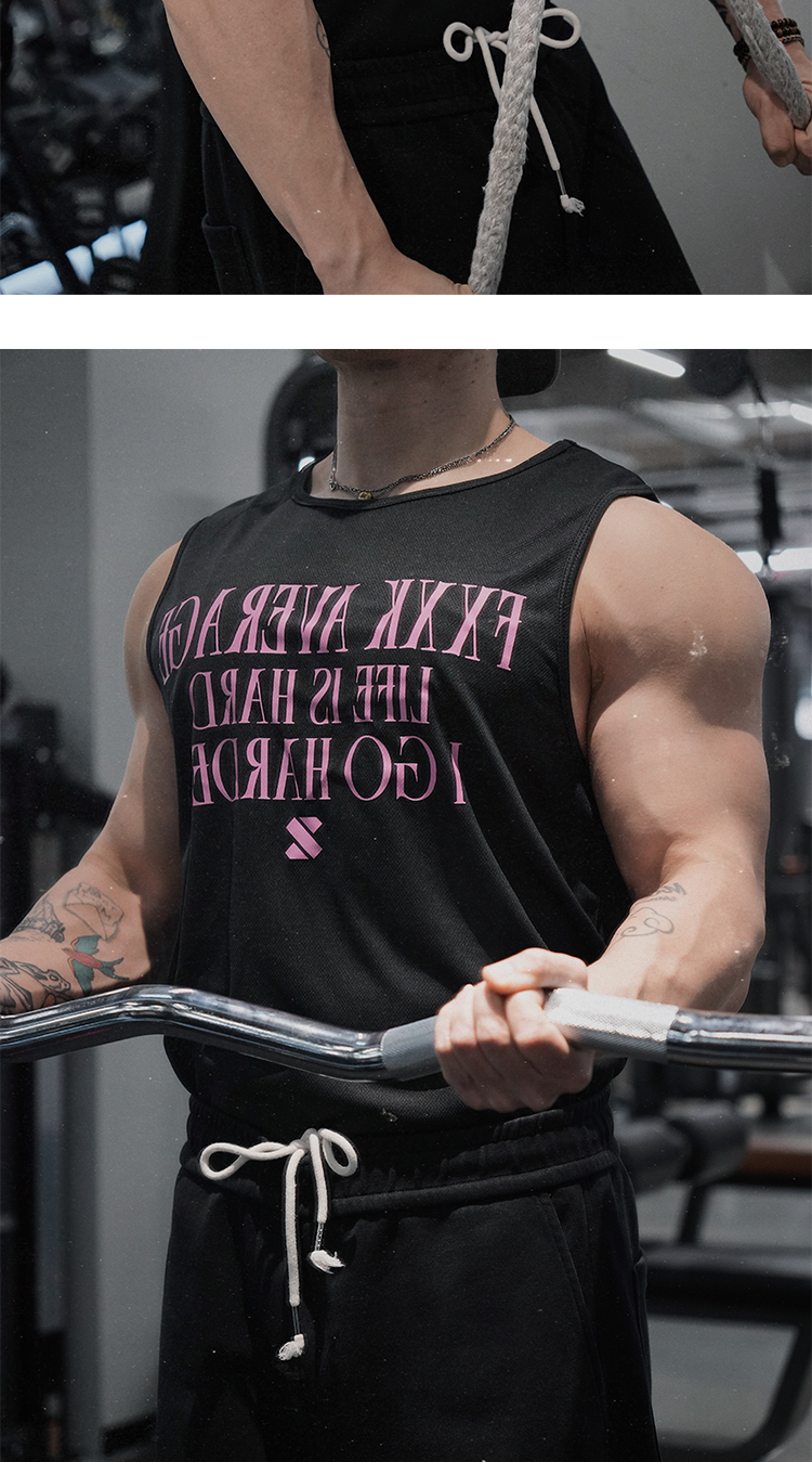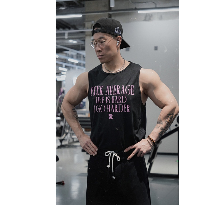 ZEKE LAB「FXXKING平庸」速乾健身背心 圓弧下擺寬松運動休閒坎肩