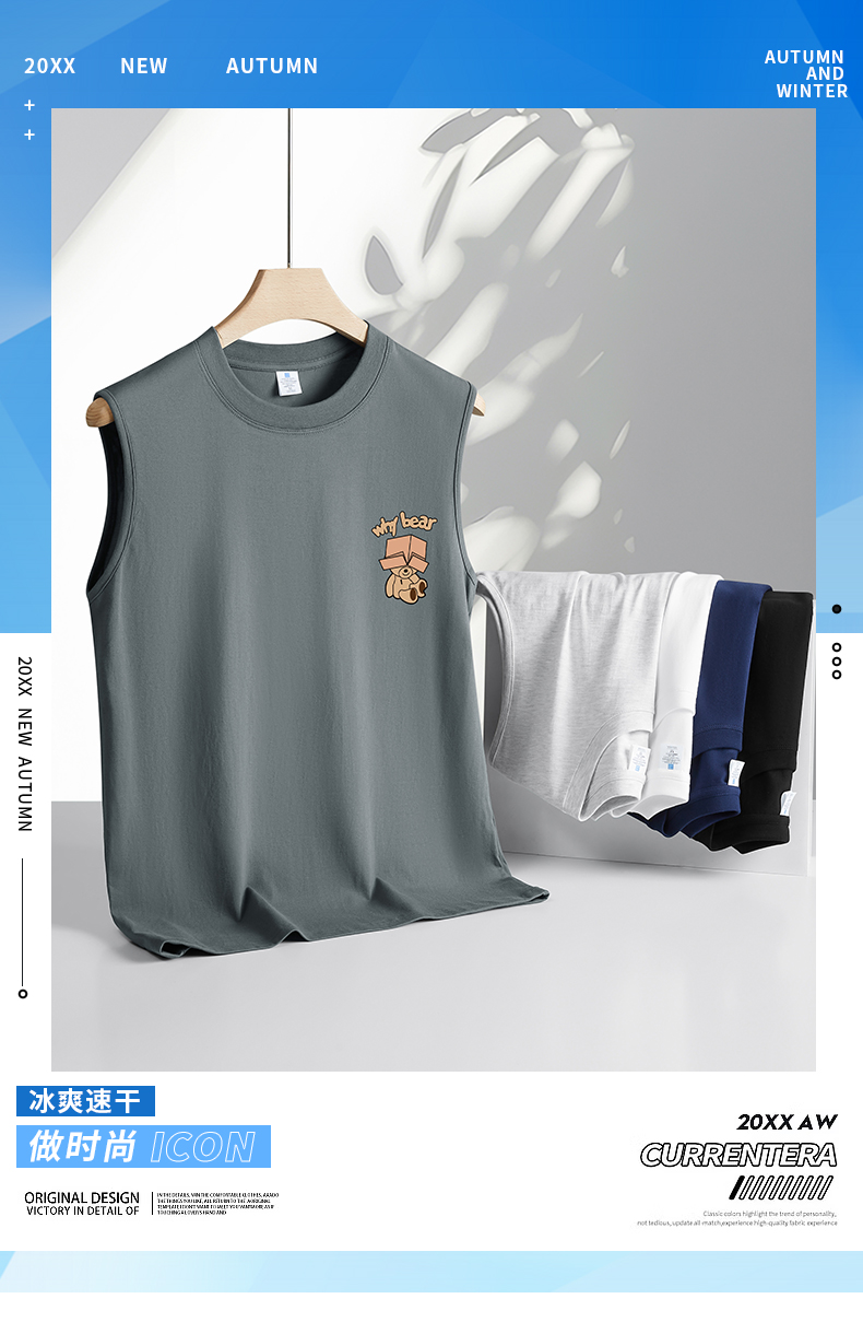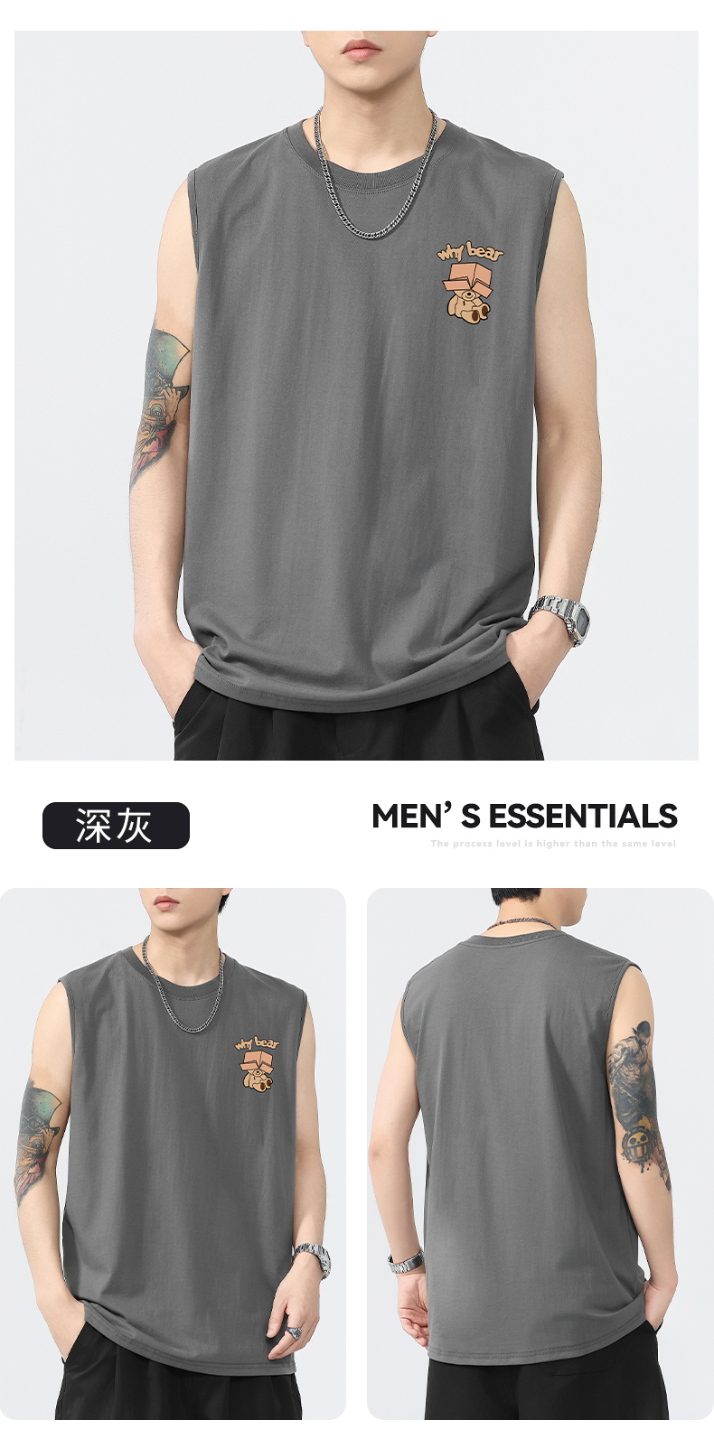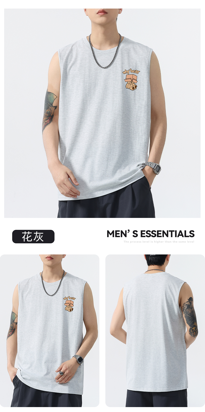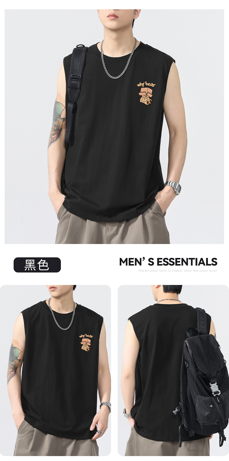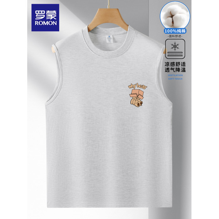 羅矇純棉無袖背心男夏季寬松潮流青少年痞帥跨欄坎肩運動打底t恤