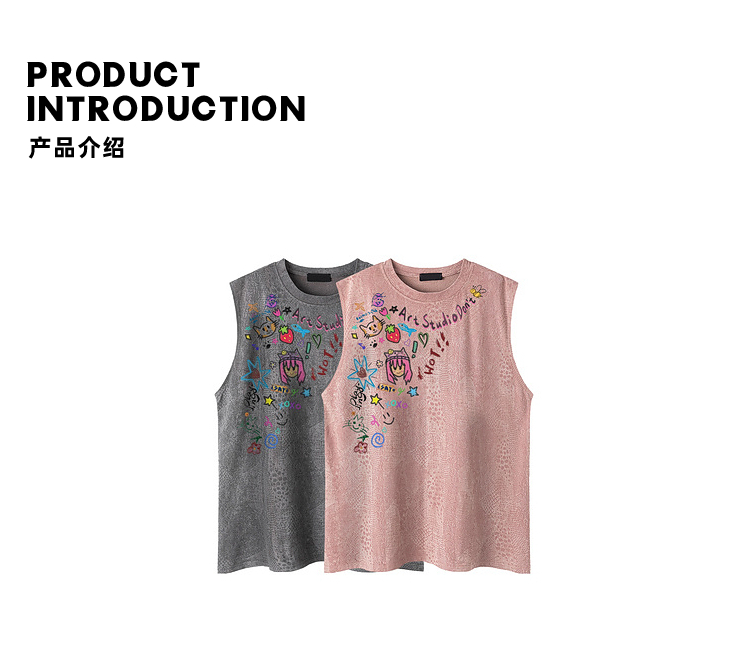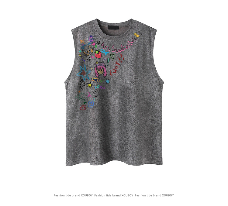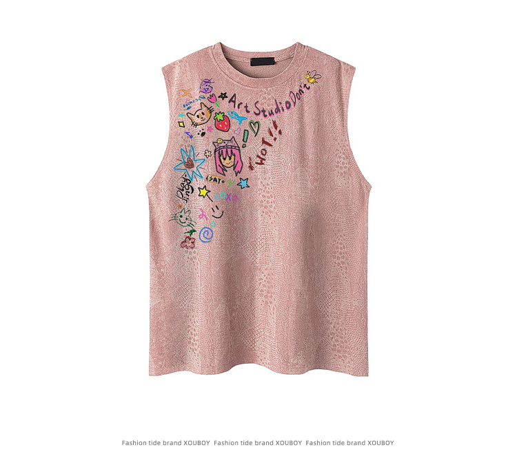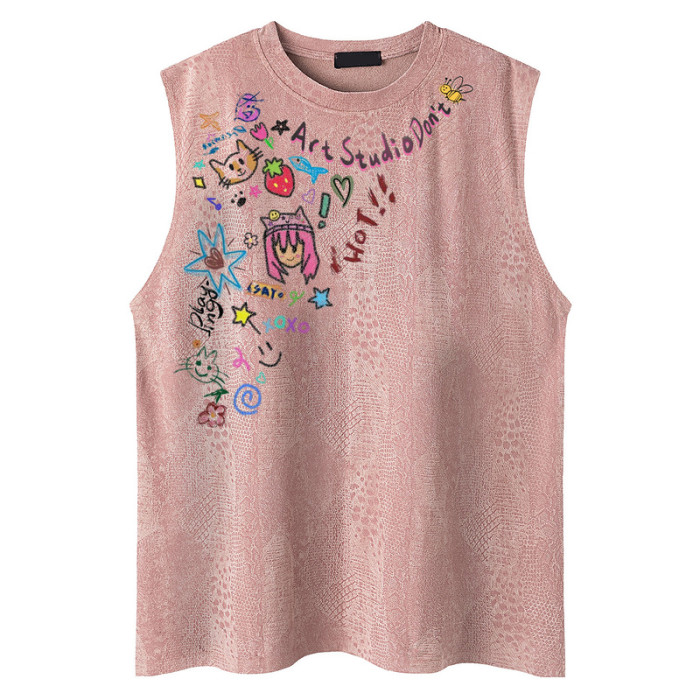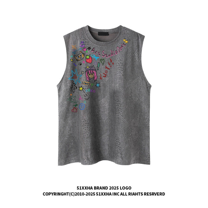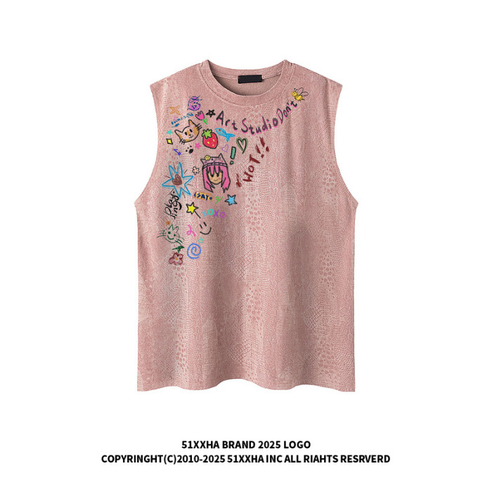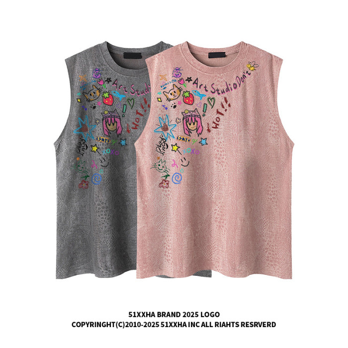 51嘻哈美式塗鴉貼紙印花無袖T恤男女夏季慵懶風寬松情侶坎肩背心