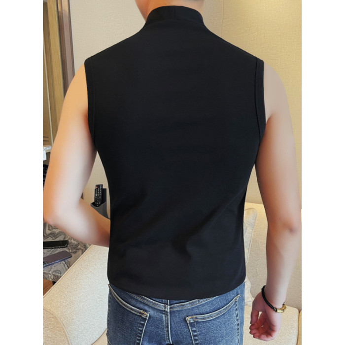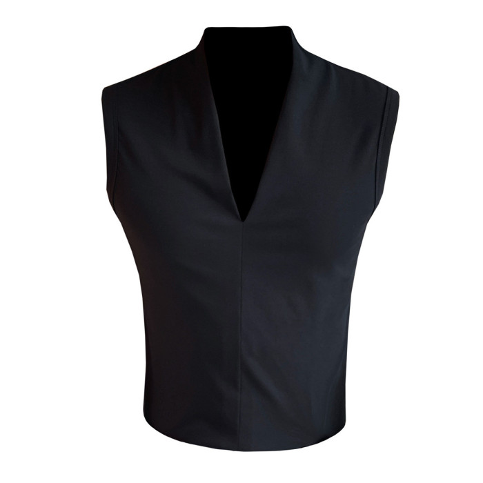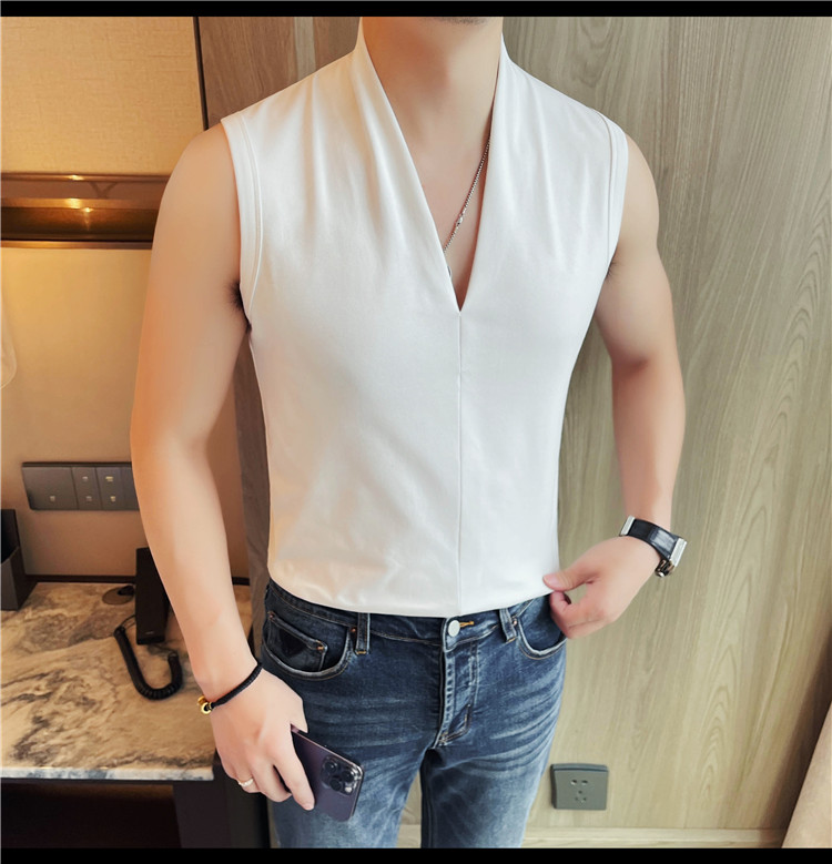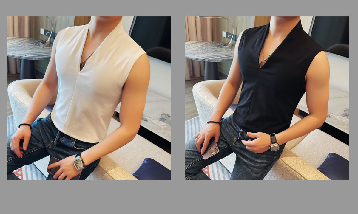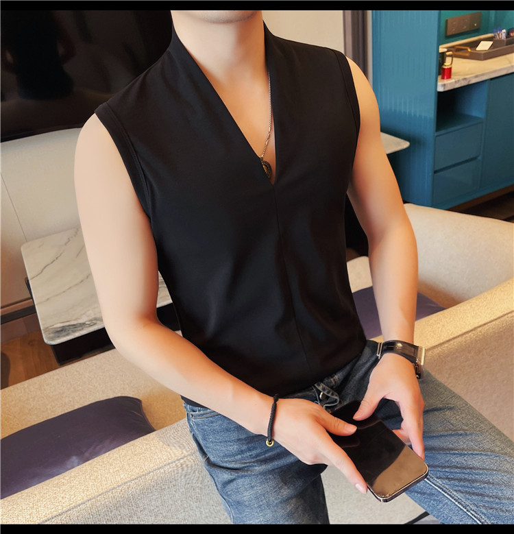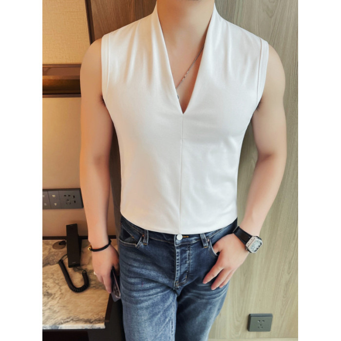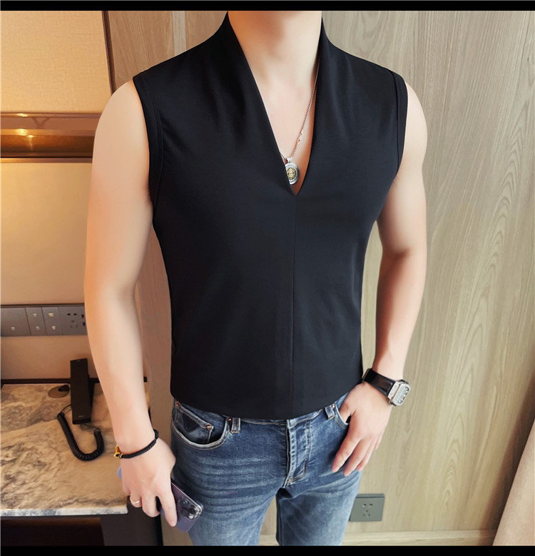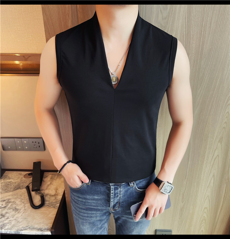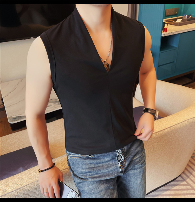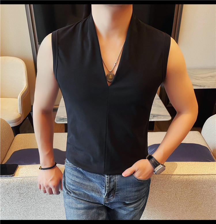 高級感男士純色坎肩背心2025夏季新款潮流痞帥寬松無袖v領T恤上衣