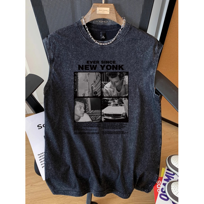 JIAF男生水洗做舊無袖背心新款夏寬松純棉T恤痞帥氣情侶圓領上衣