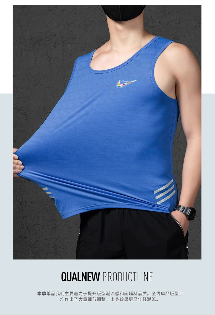 Nkjvb冰絲背心男夏季新款寬松大碼速乾無袖T恤透氣籃球運動打底衫