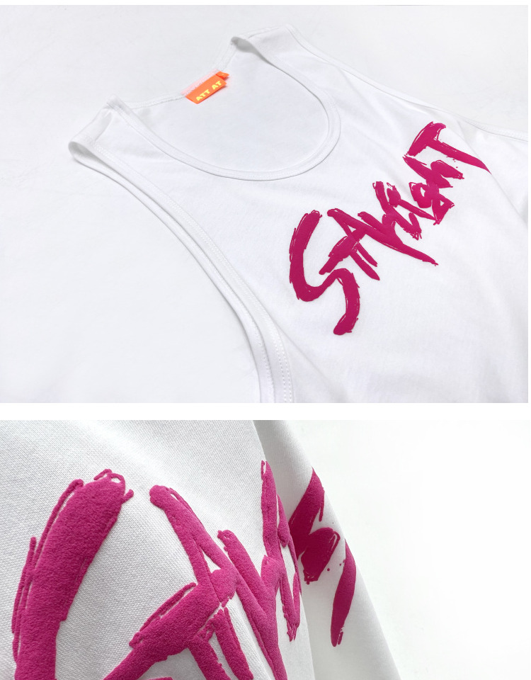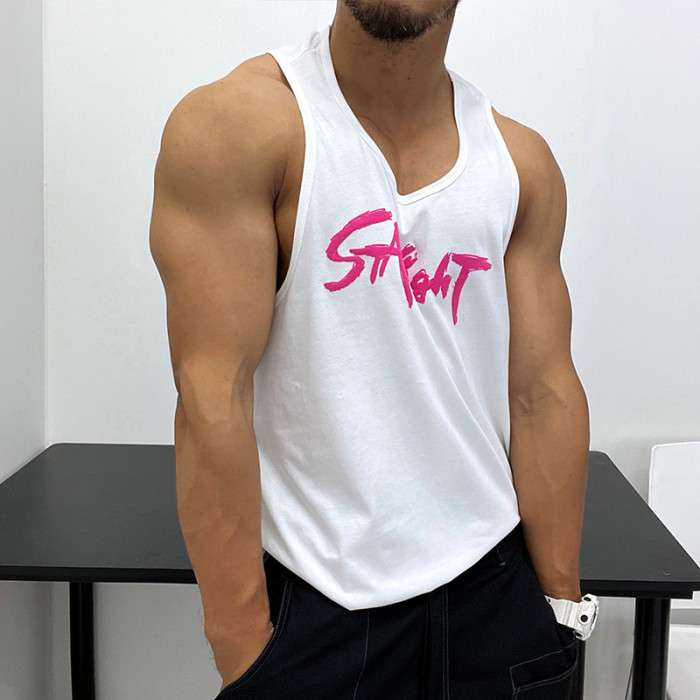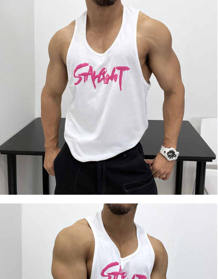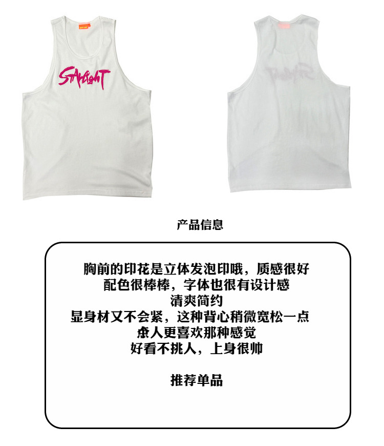 立體印花面料好純棉修身背心無袖T恤肌肉男優良成衣健身海灘旅遊