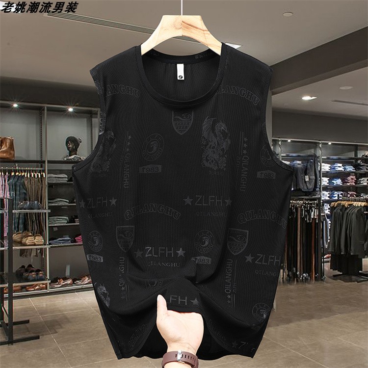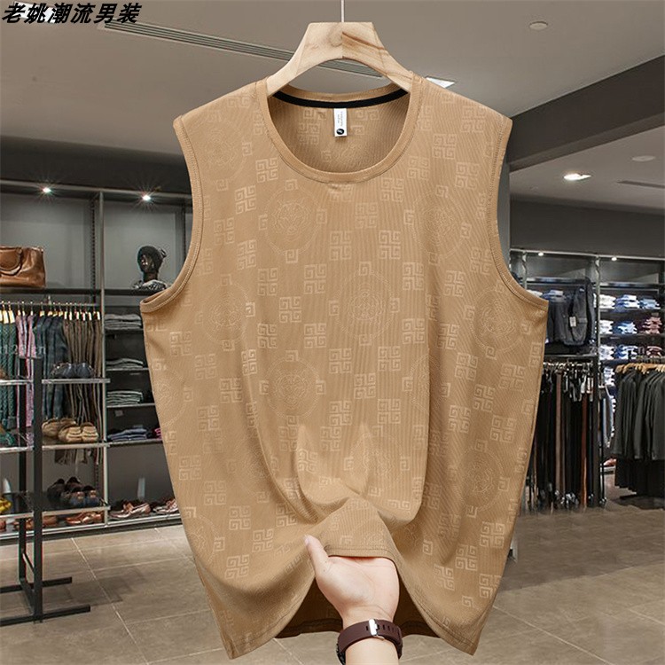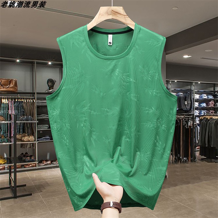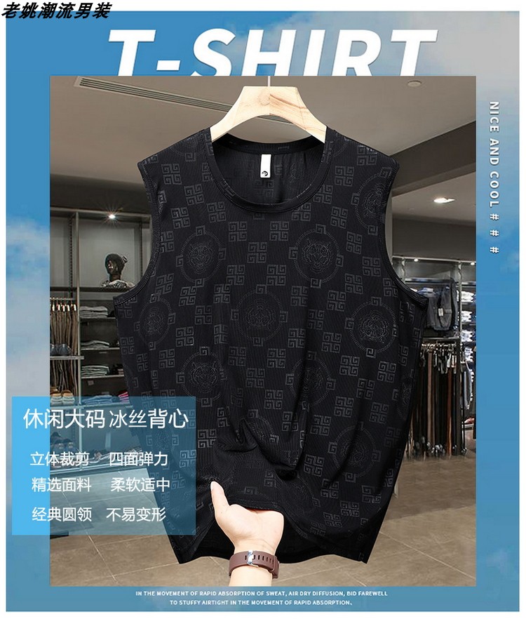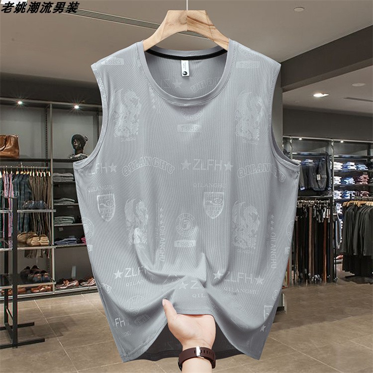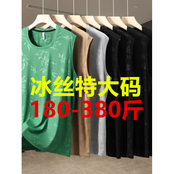 380斤夏季冰絲汗背心男士薄款涼爽無袖t恤休閒寬松特大碼加肥坎肩