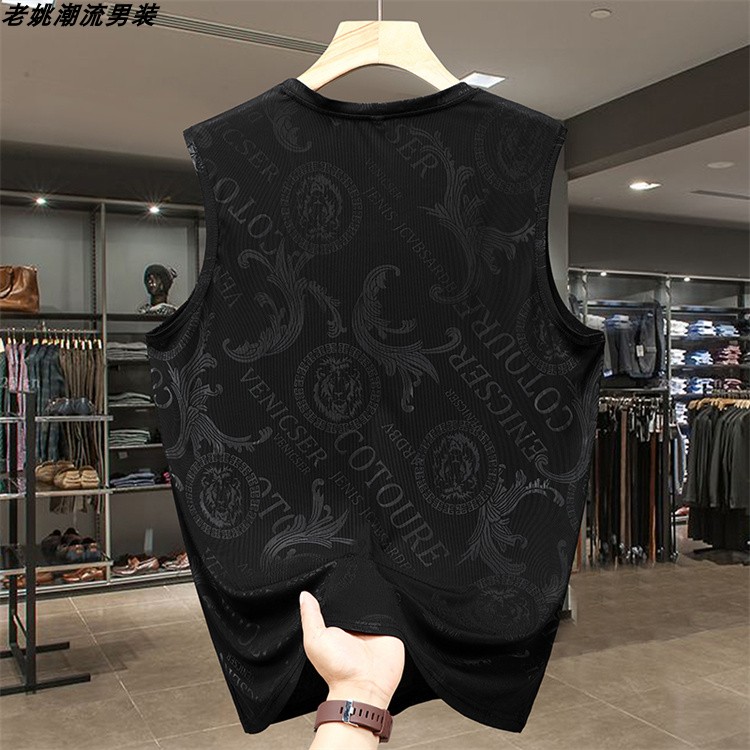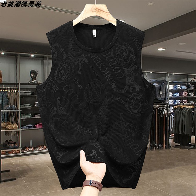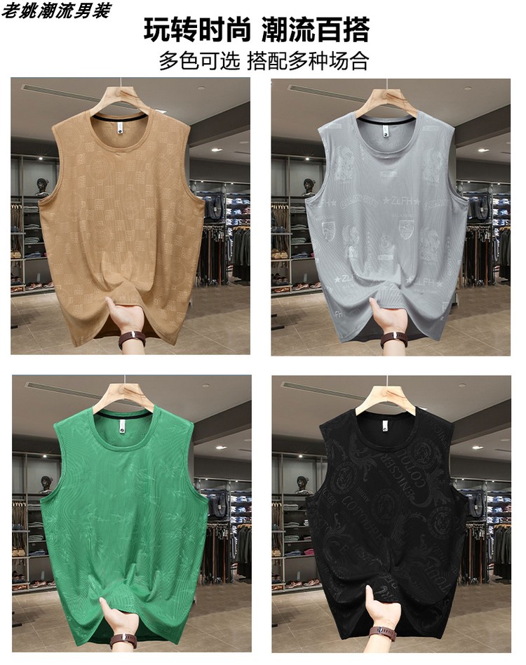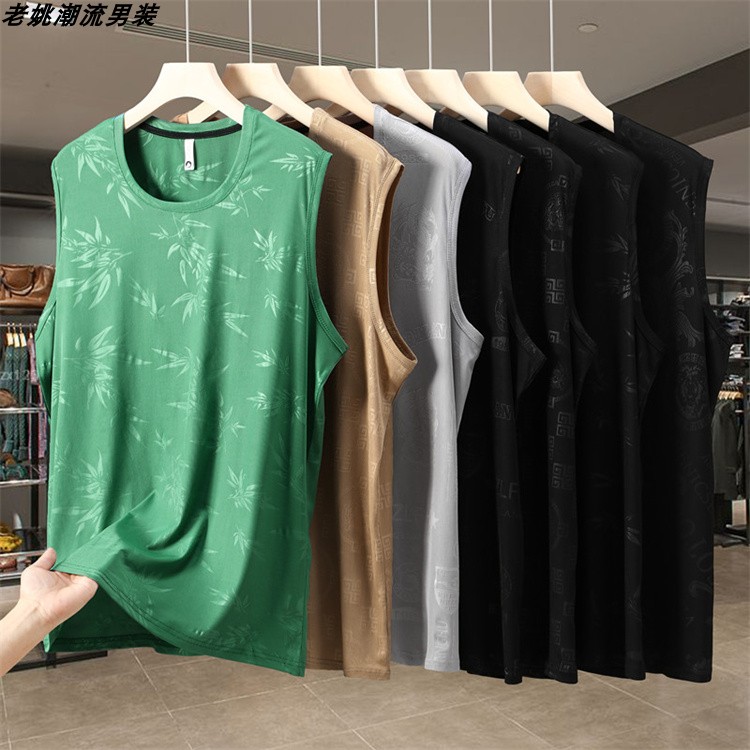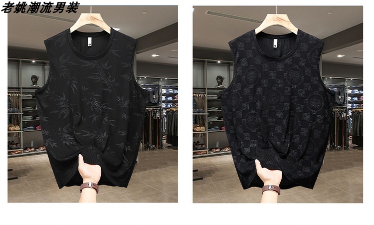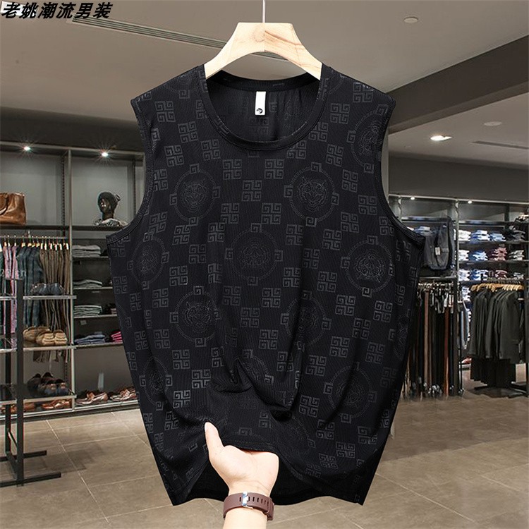 380斤夏季冰絲汗背心男士薄款涼爽無袖t恤休閒寬松特大碼加肥坎肩