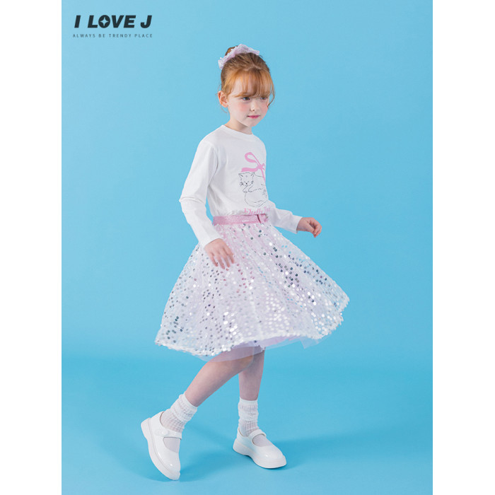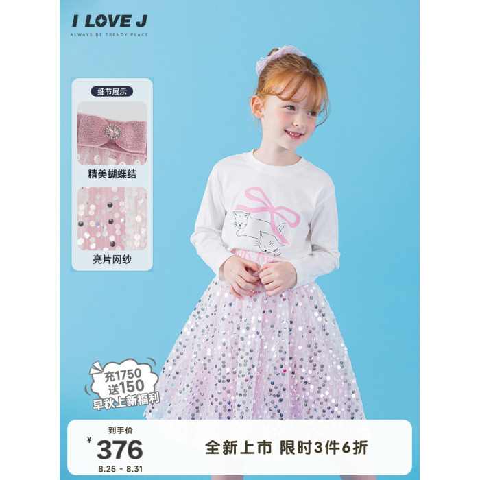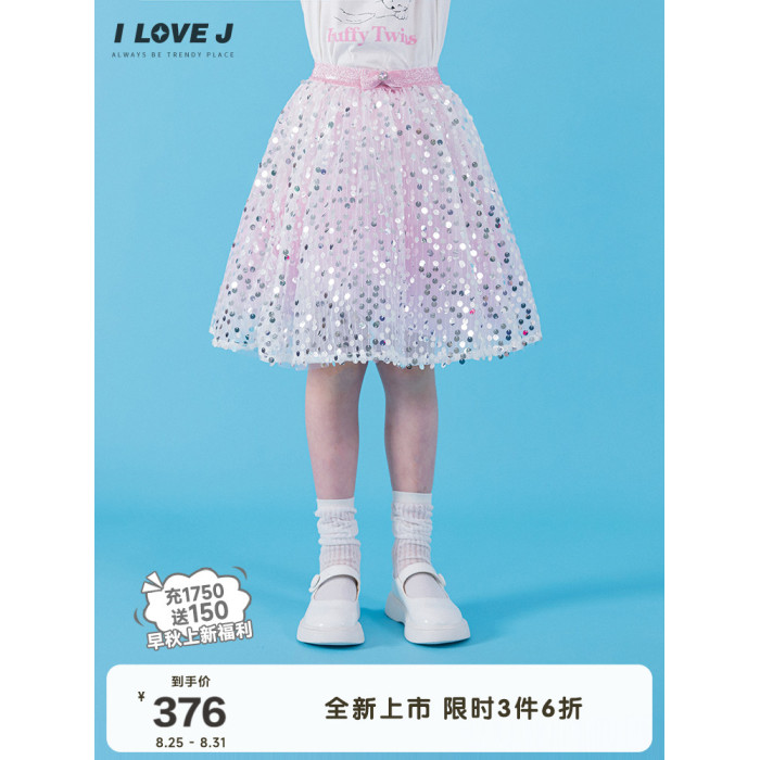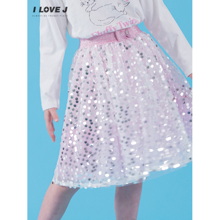 ILOVEJ韓國童裝2025秋季新款女童亮片網紗蝴蝶結半身裙/JXFSK10