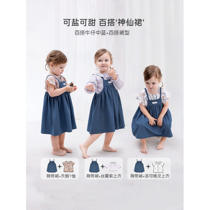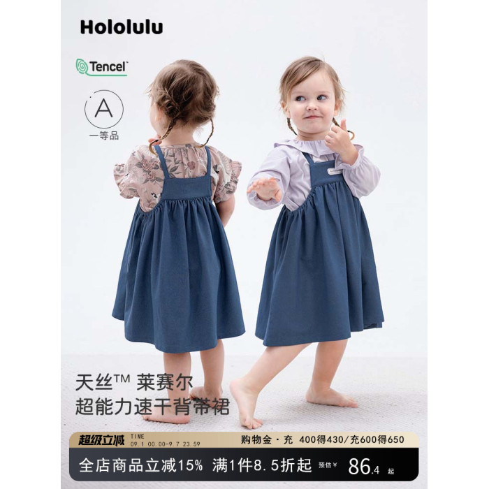 Hololulu女寶寶裙子女童連衣裙夏速乾牛仔2025新款背帶裙禮服裙