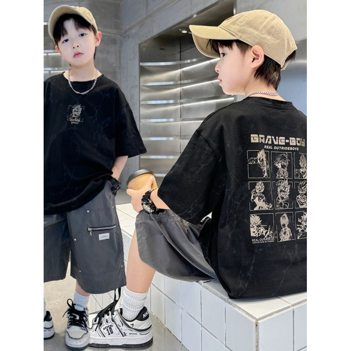 安哼安哼男童夏季套裝2025新款兒童裝夏裝潮帥氣時髦男孩短袖運動