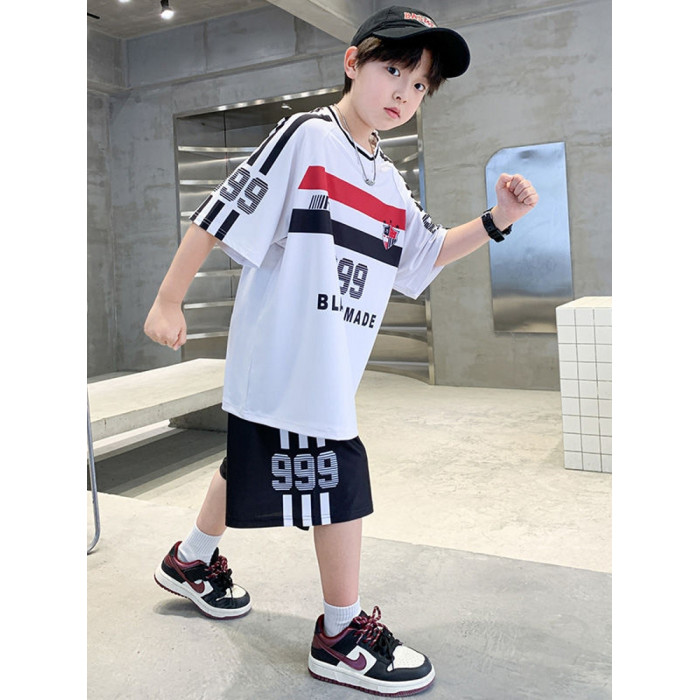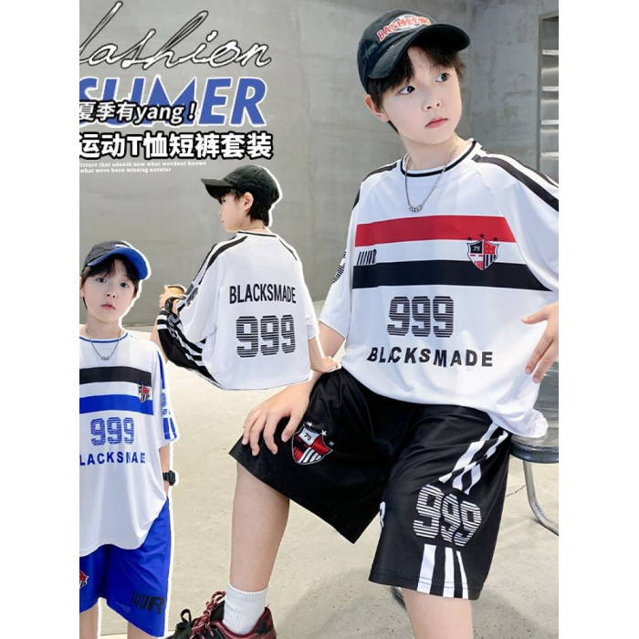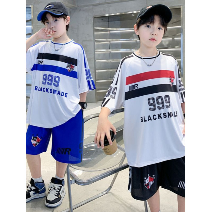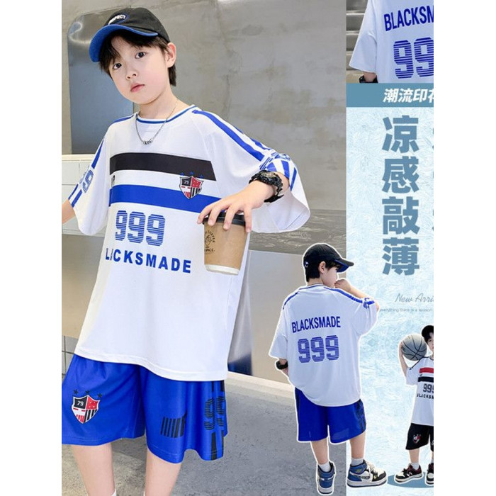 安哼安哼男童夏季套裝2025新款中大童男孩冰絲運動速乾球衣兒童薄