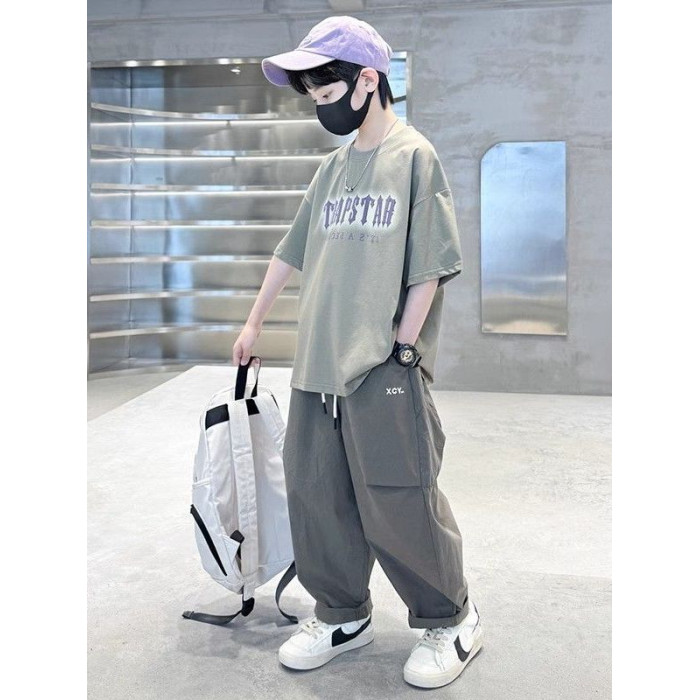 男童夏裝套裝夏款2025新款兒童長褲中大童夏季褲子潮帥氣時髦炸街