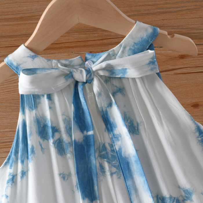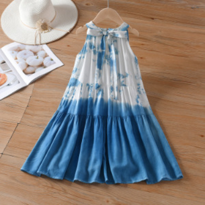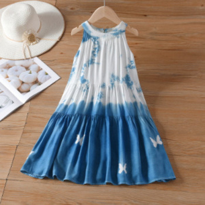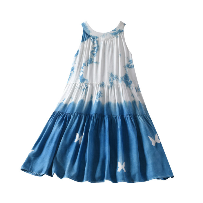 雲南大理古法紥染法式掛脖裙茶歇女童連衣裙蝴蝶藍染度假風中
