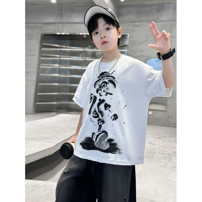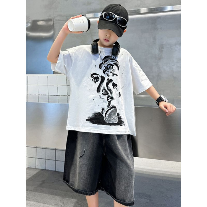 安哼安哼男童套裝夏季2025新款潮酷帥氣兒童夏裝中大童短袖t恤短