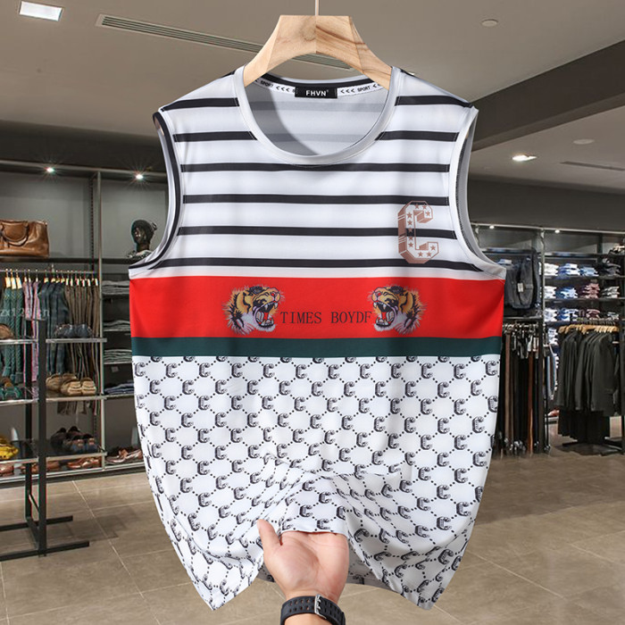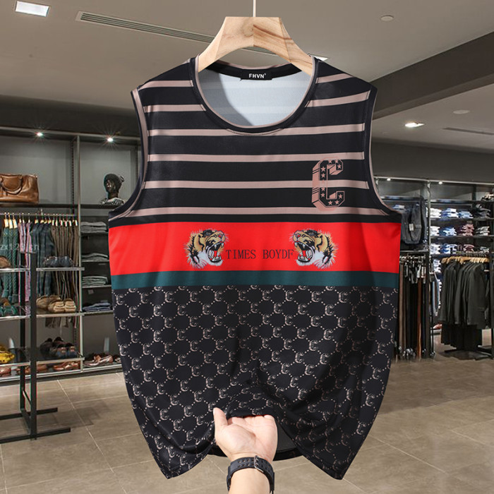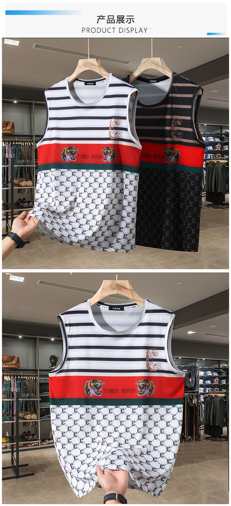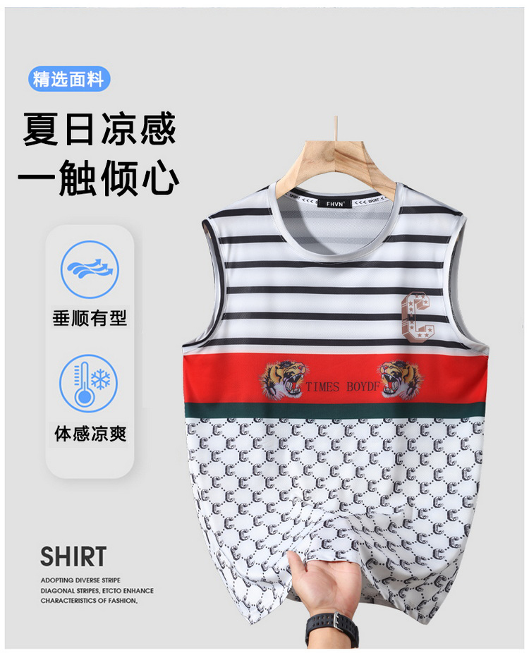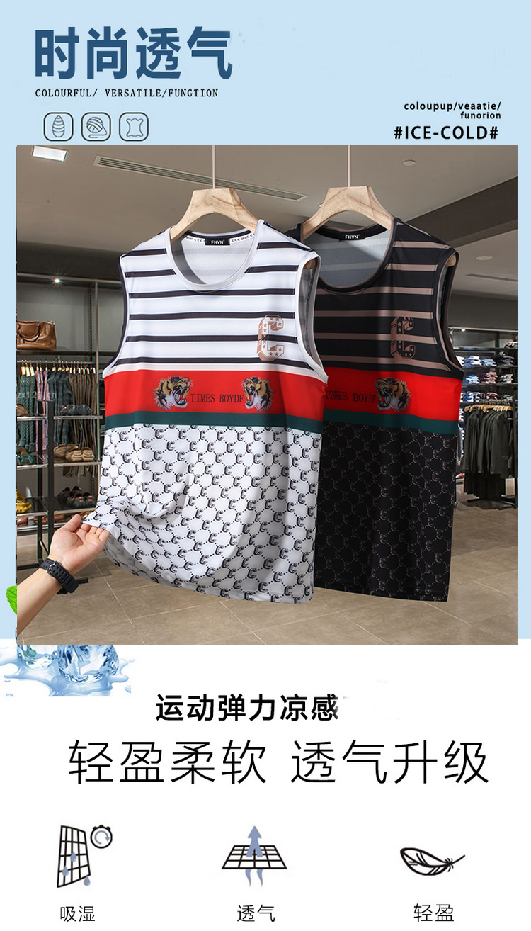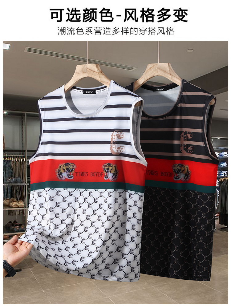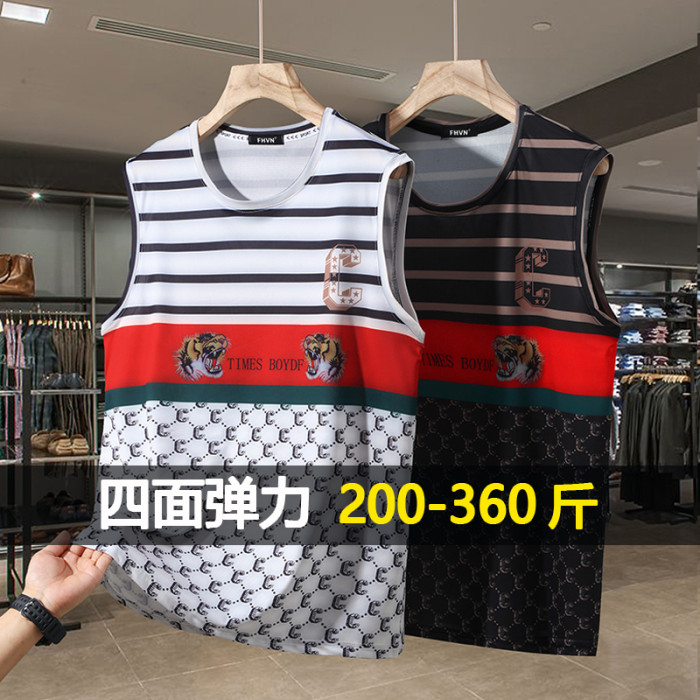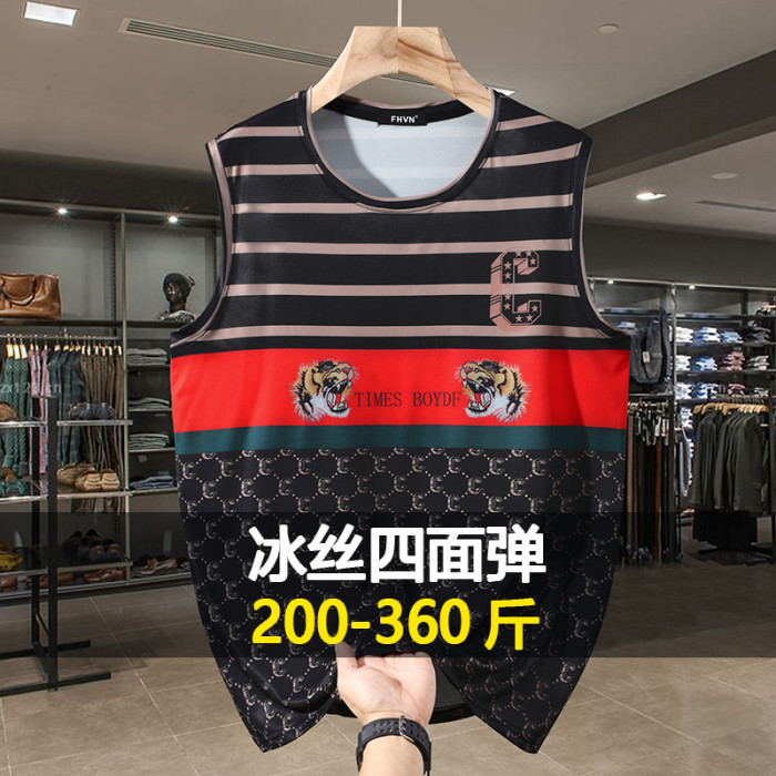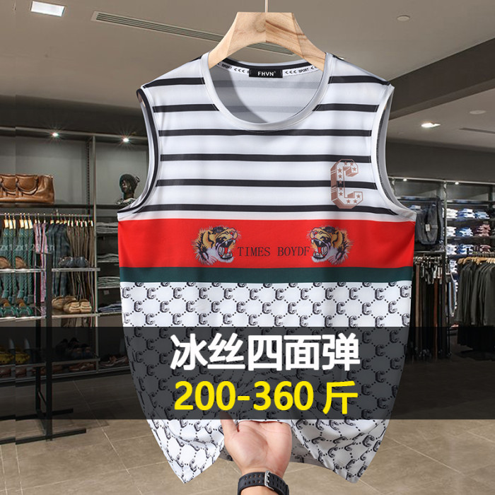潮牌大碼冰絲背心男夏季薄款寬松運動加肥加大透氣無袖T恤350斤