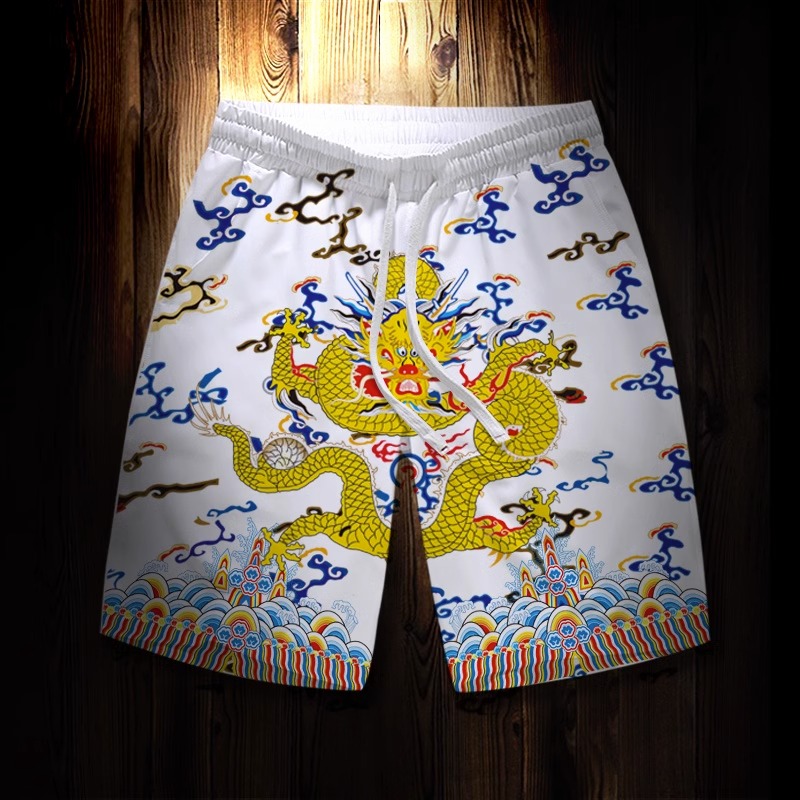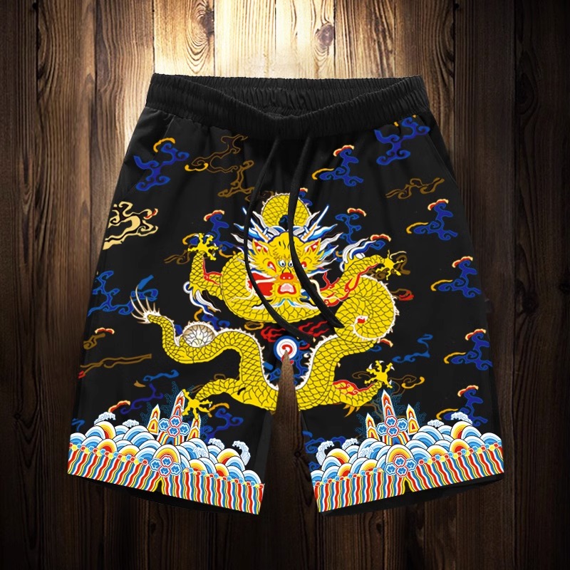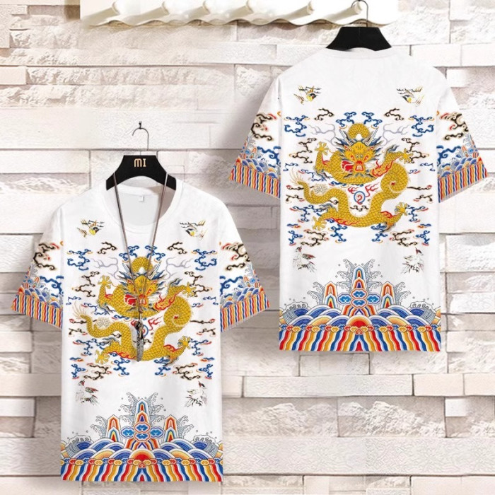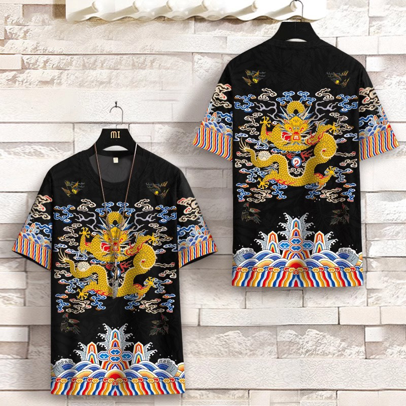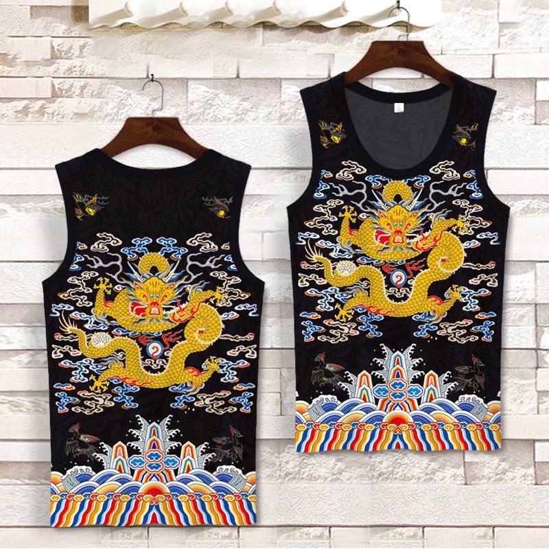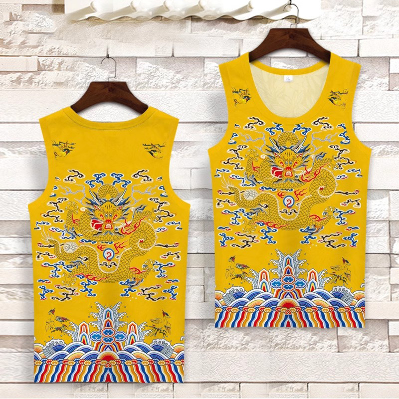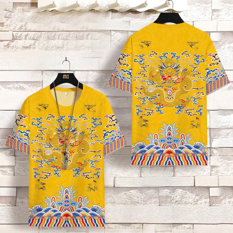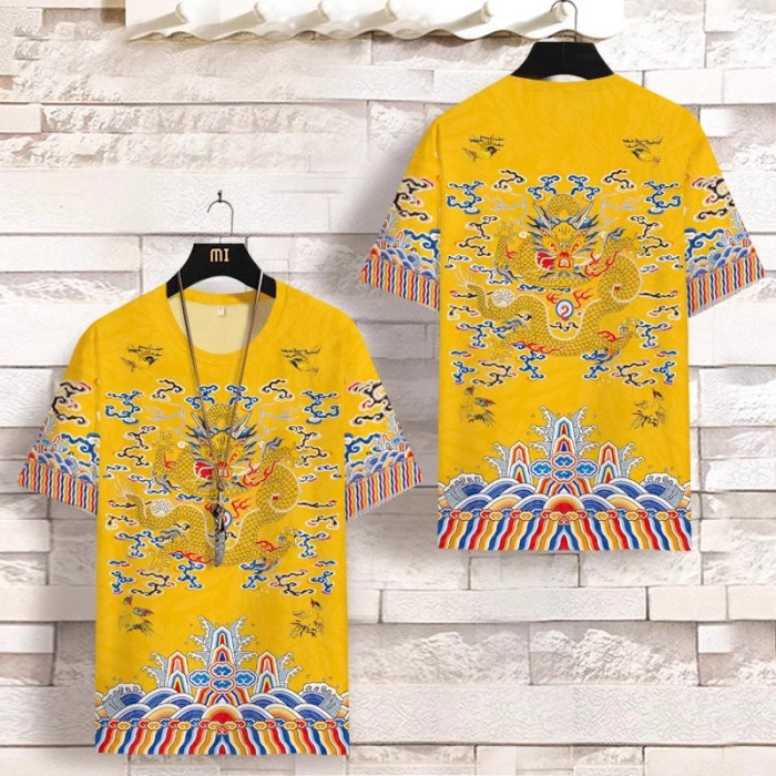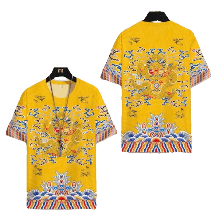 風清朝官服皇帝黃馬褂龍袍衣服古裝男士夏3d短袖T恤大碼背心