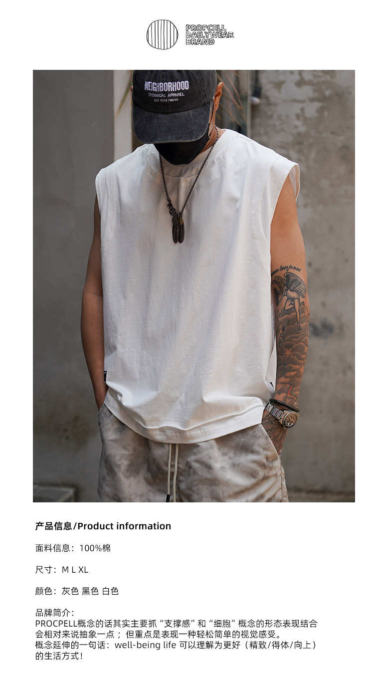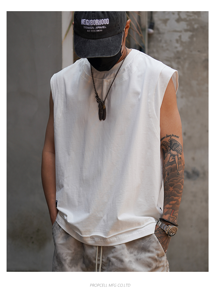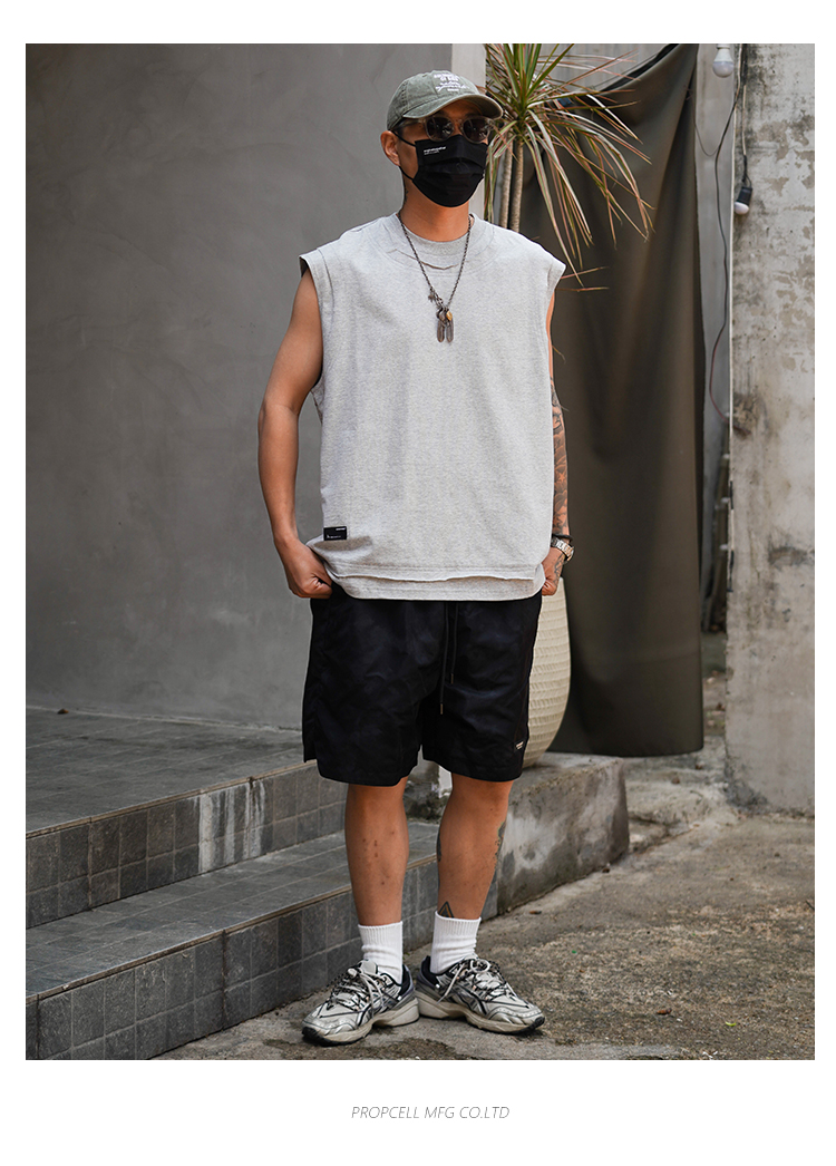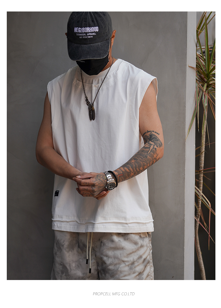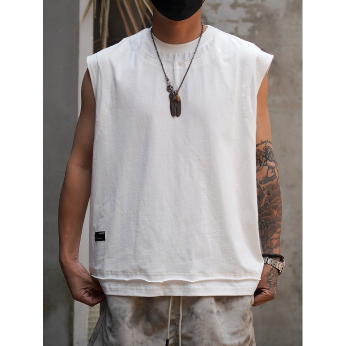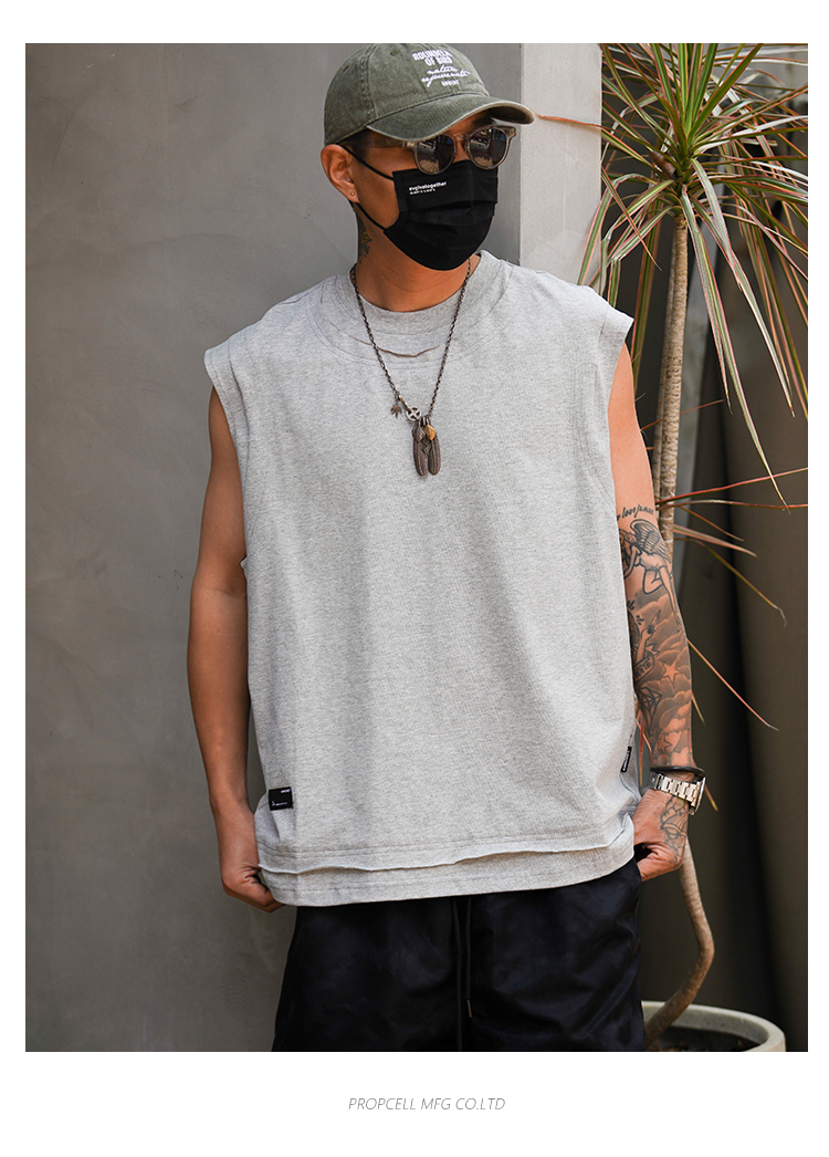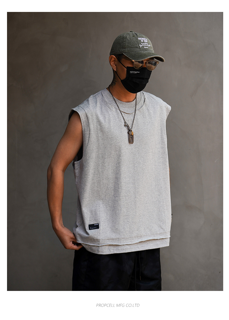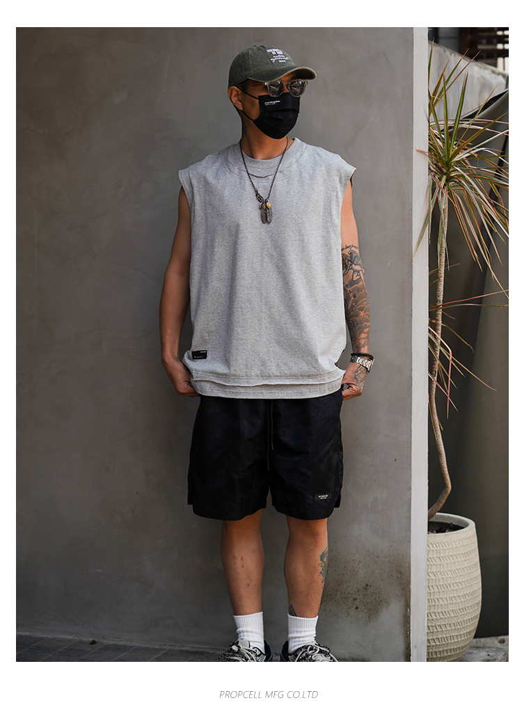 Propcell美式立體剪裁假兩件潮流背心男夏季寬松休閒坎肩無袖T恤