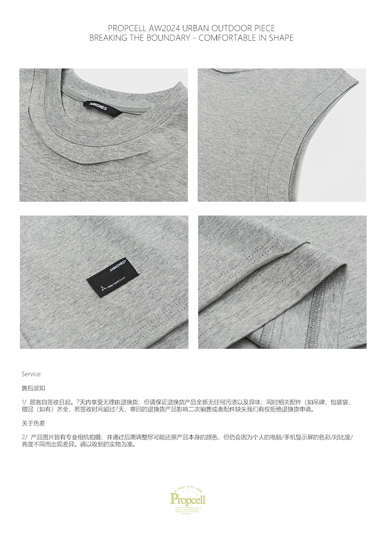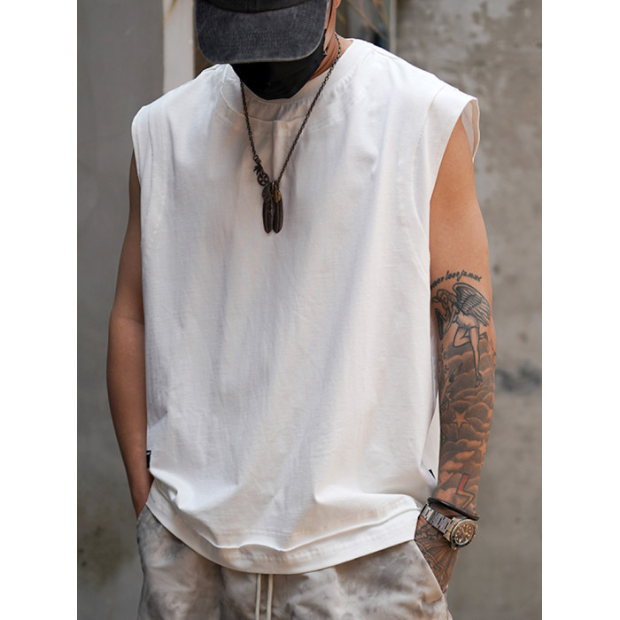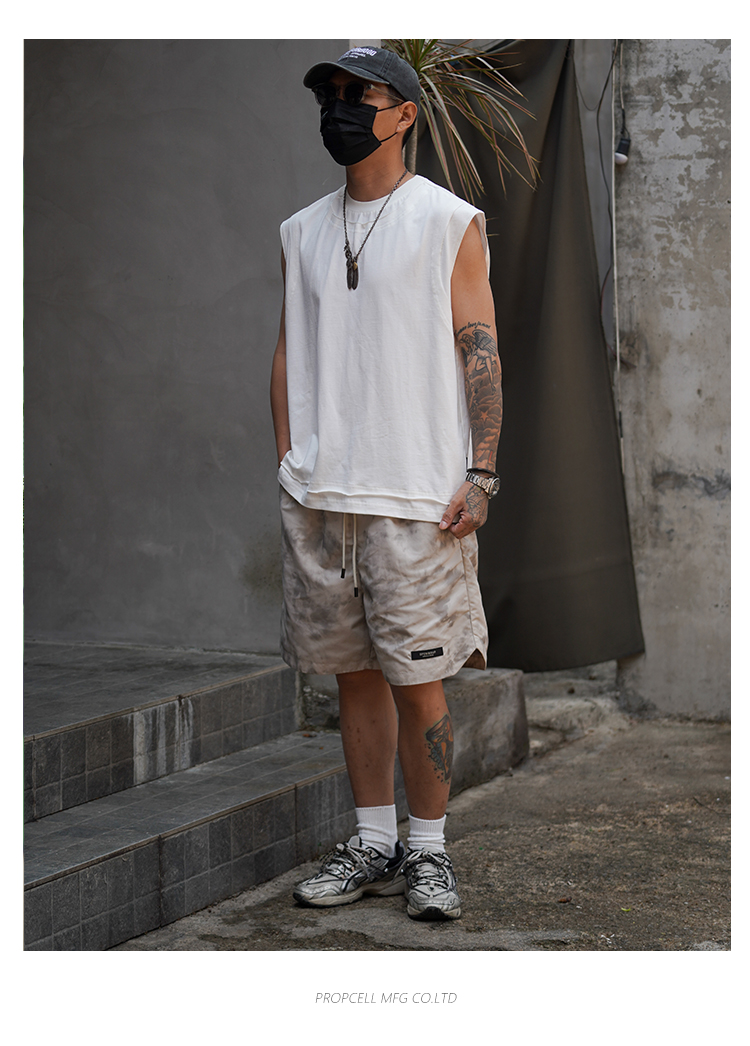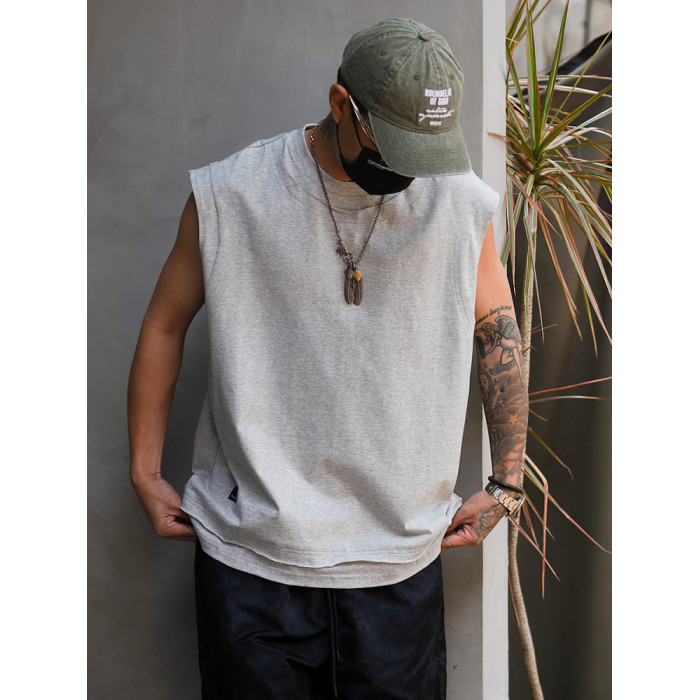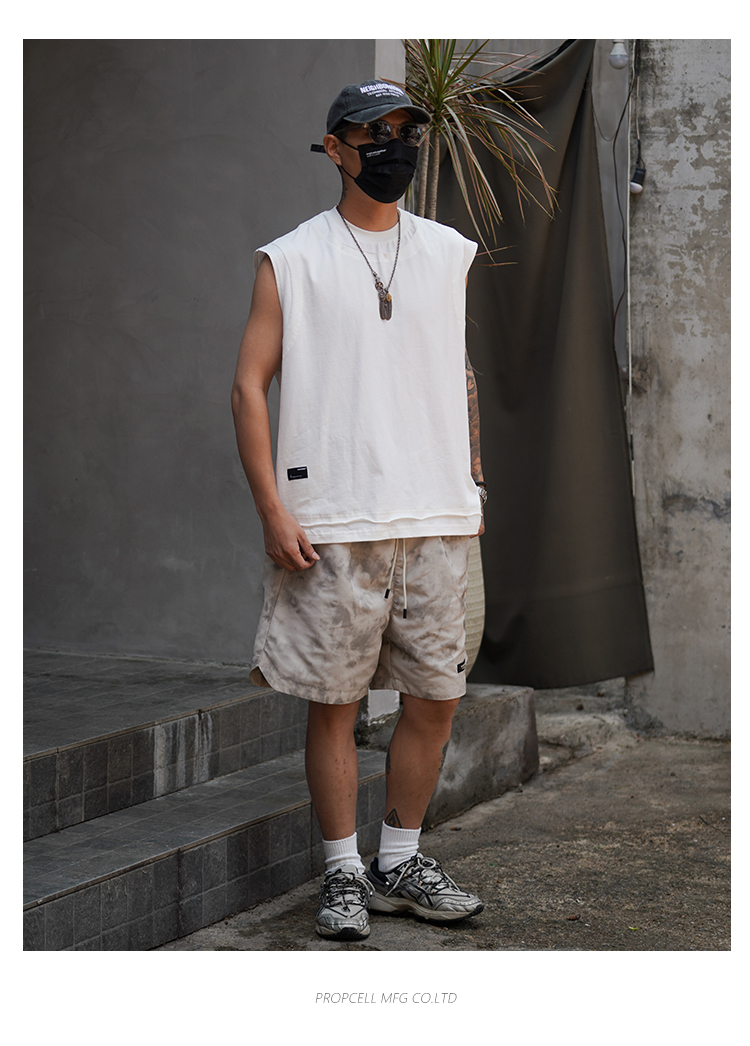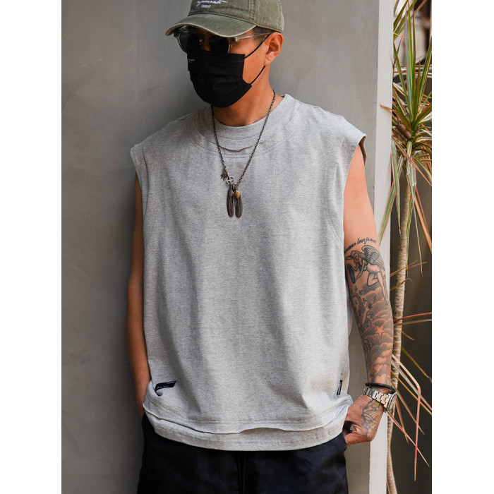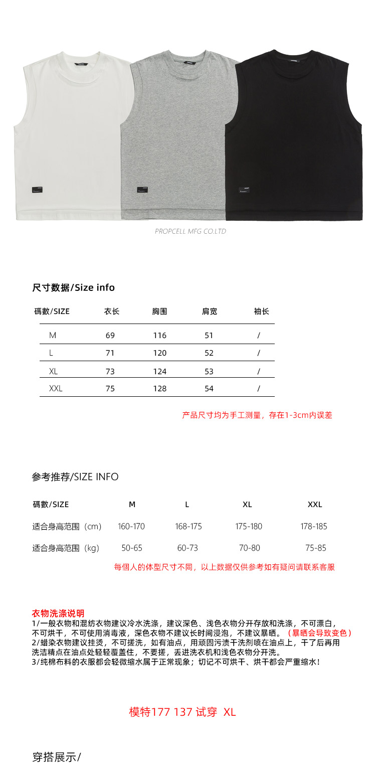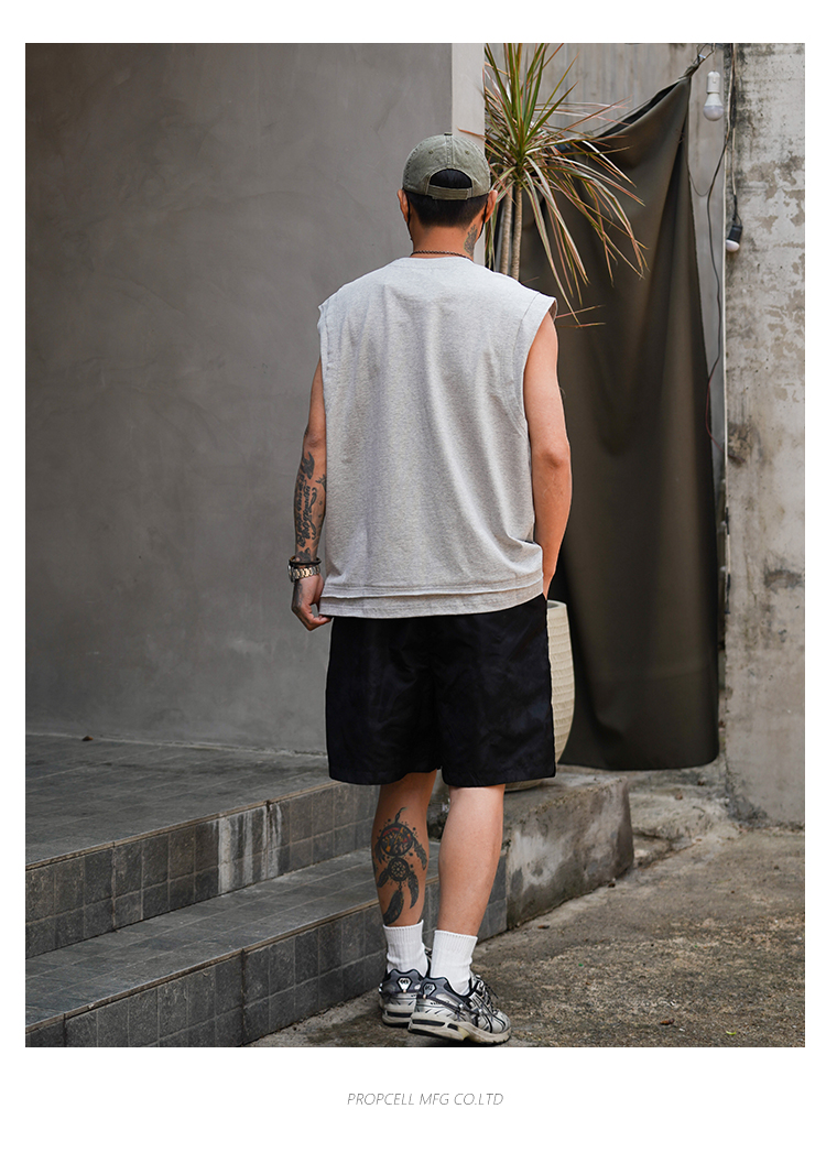 Propcell美式立體剪裁假兩件潮流背心男夏季寬松休閒坎肩無袖T恤
