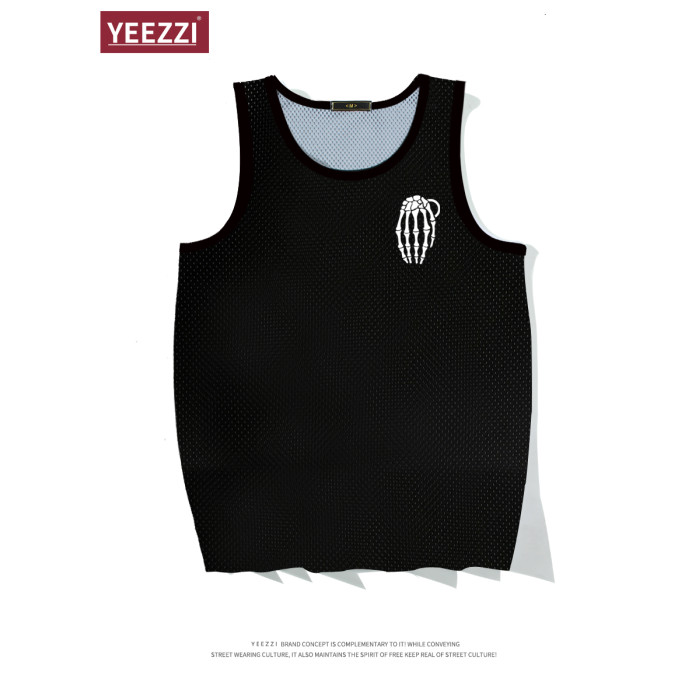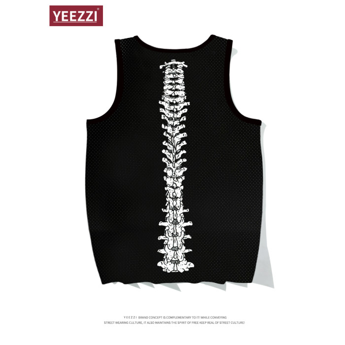 創意美式街頭趣味骨頭男個性印花背心籃球服男高街情侶上衣坎肩