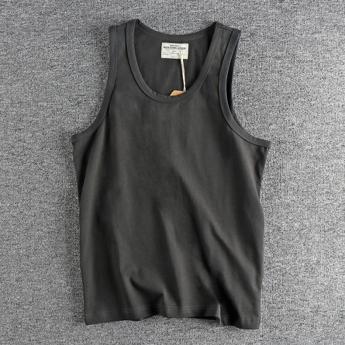 阿美哢嘰復古230g重磅純棉背心男水洗無袖汗衫運動健身寬松坎肩T