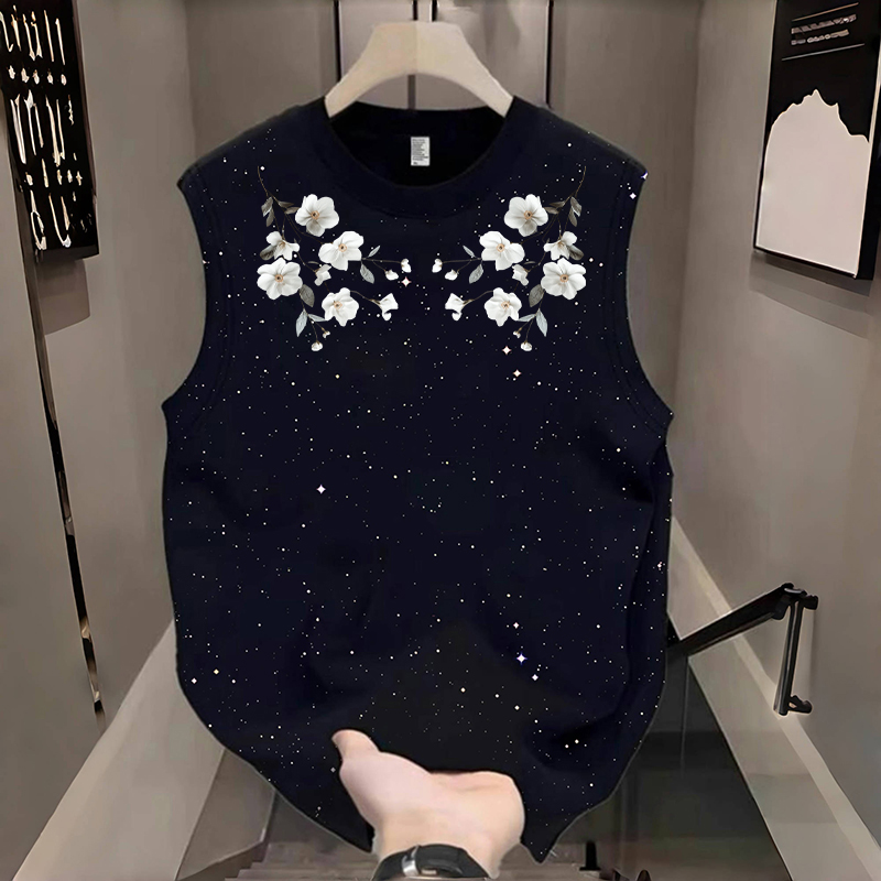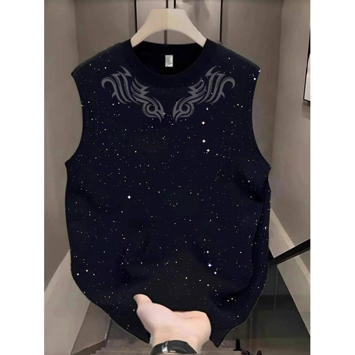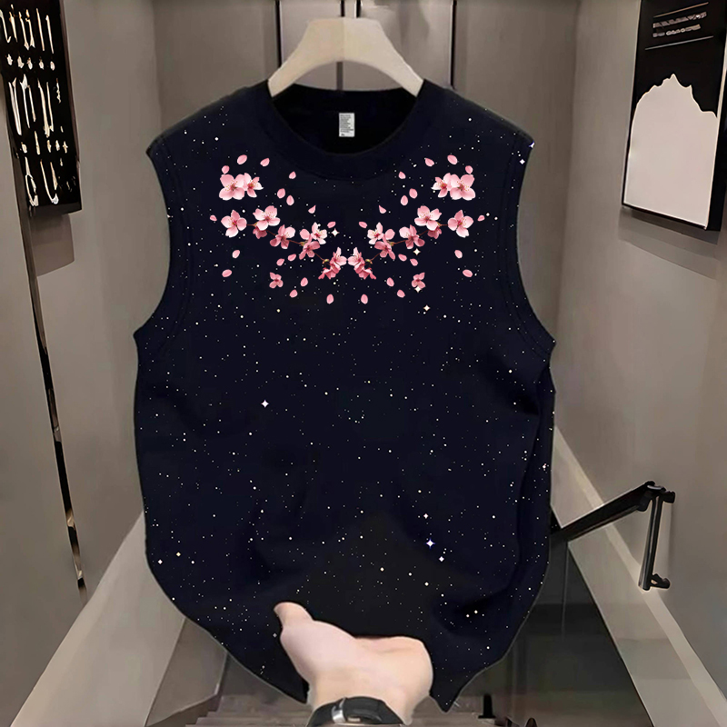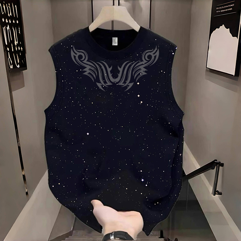 美式復古背心男女夏季潮牌無袖t恤滿天星寬松坎肩純棉黑色上衣