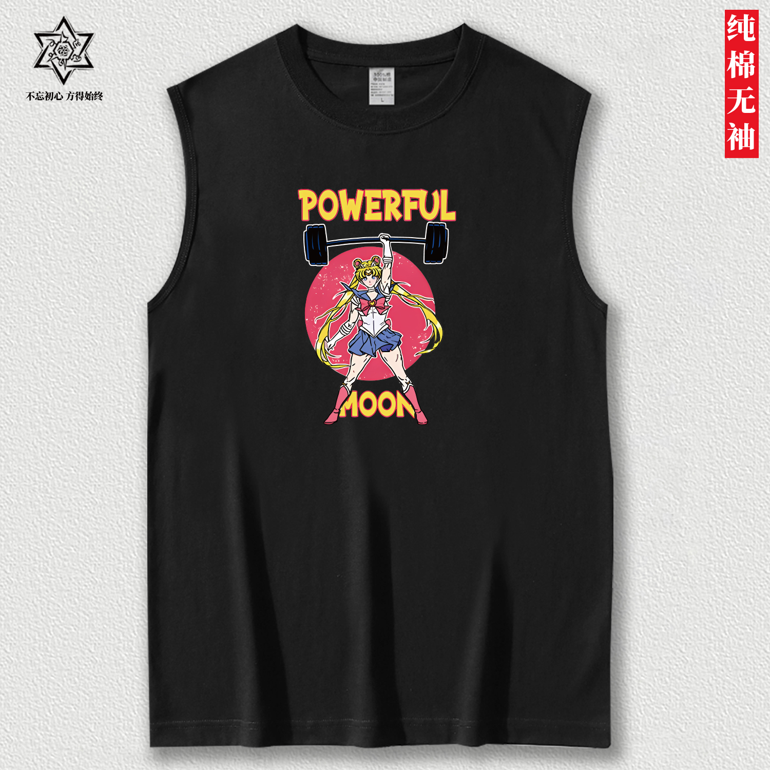 【肌肉水冰月】卡通運動健身背心夏季薄款寬松休閒無袖t恤